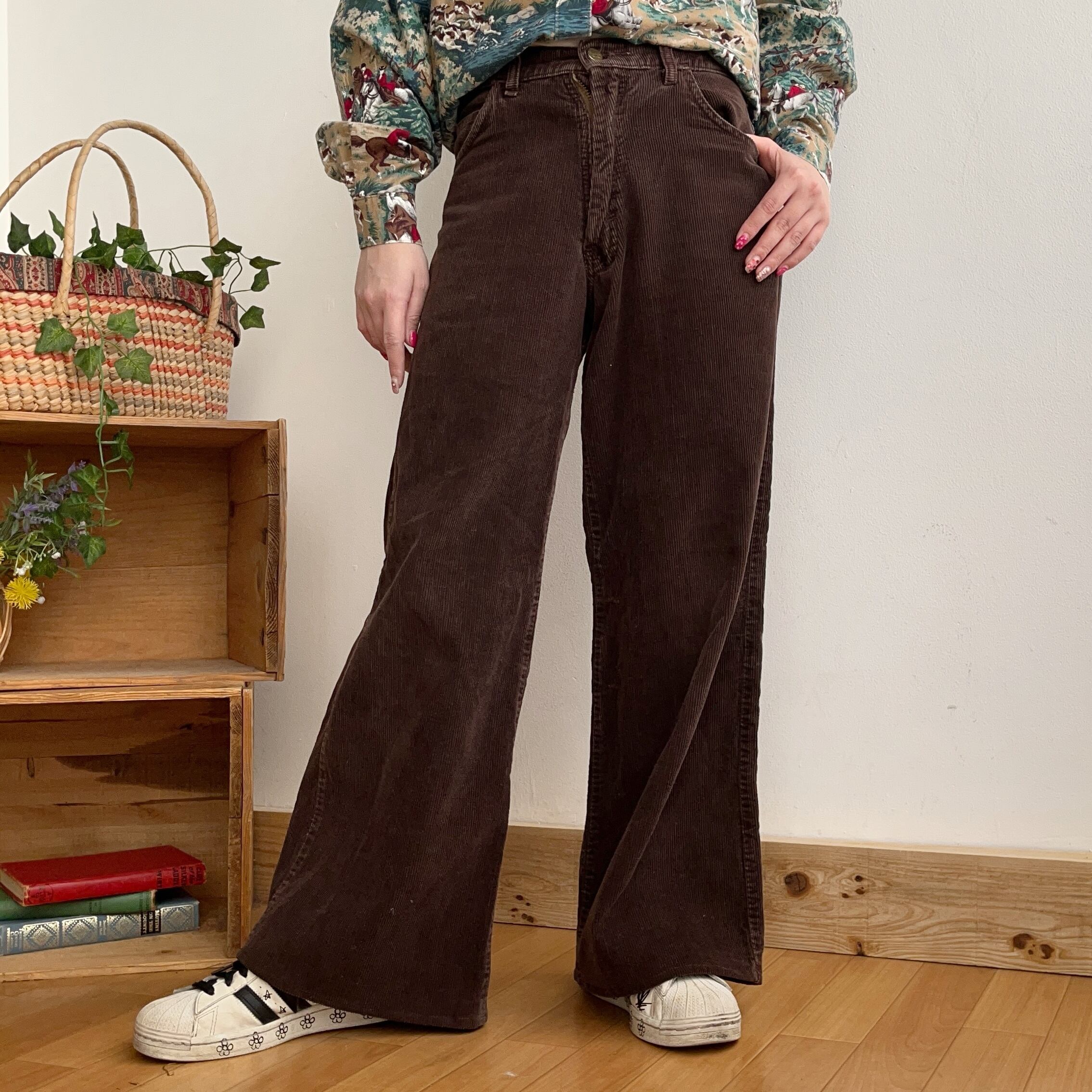 シルエットが可愛いブラウンのコーデュロイパンツです。