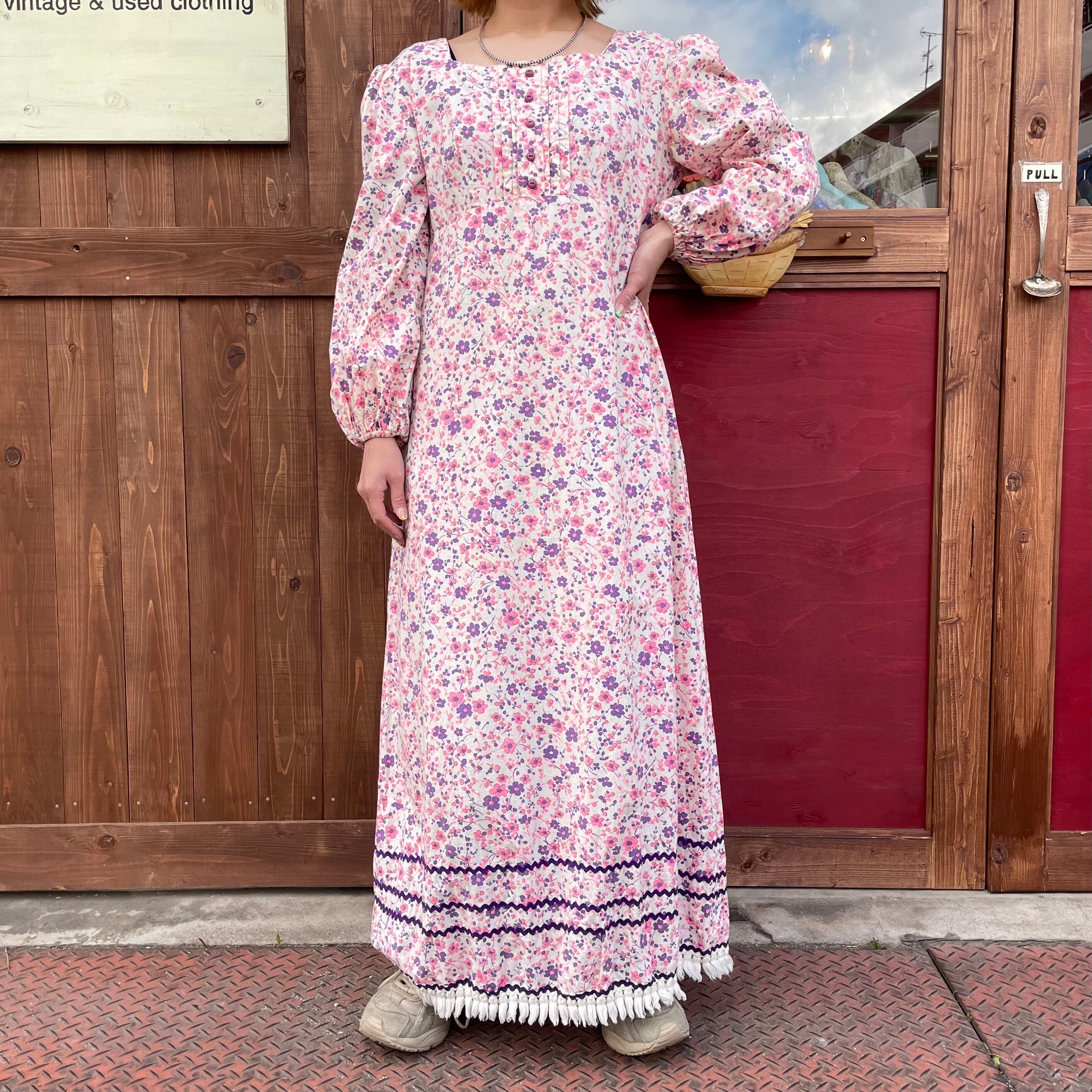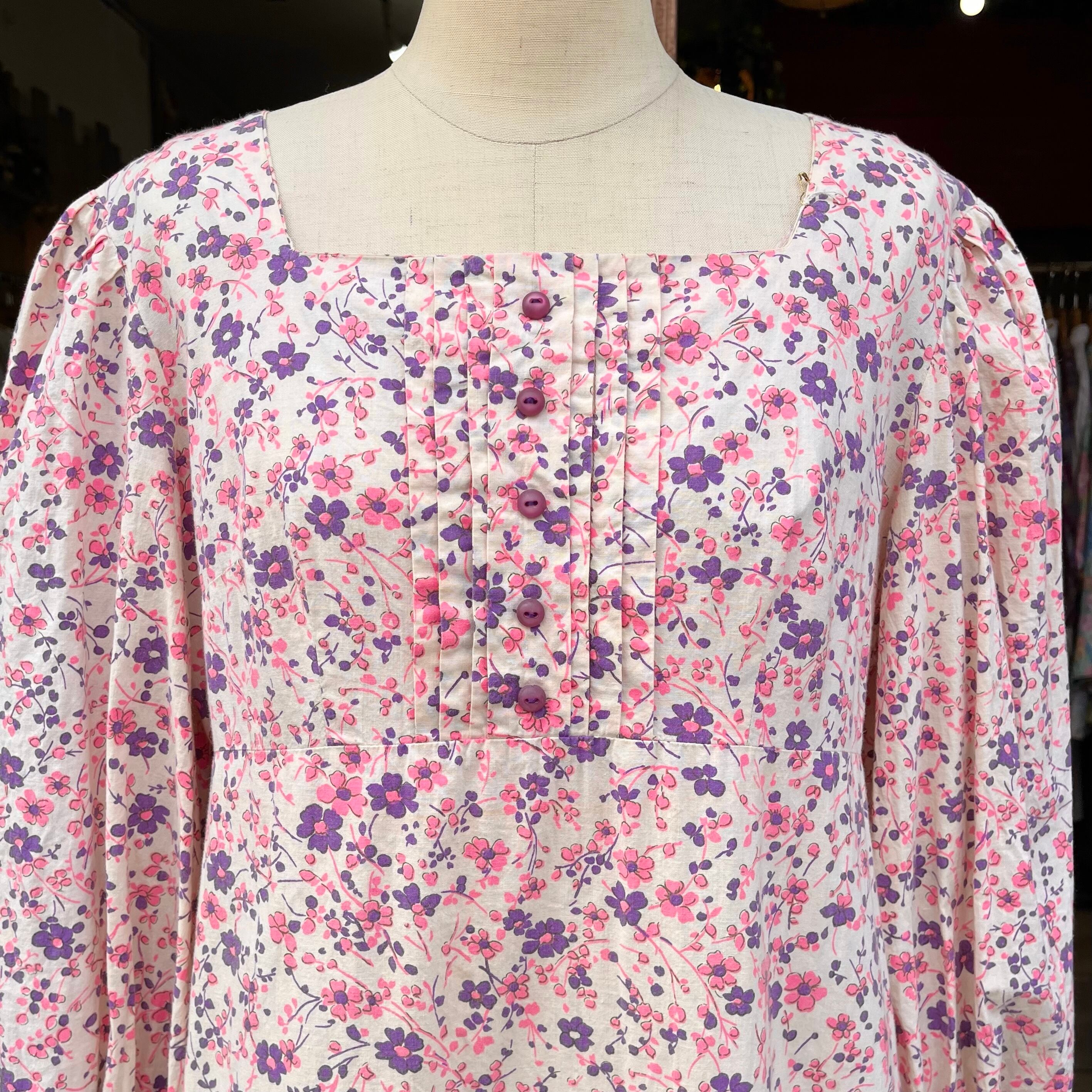 ピンクとパープルの配色が可愛いヴィンテージワンピースです。