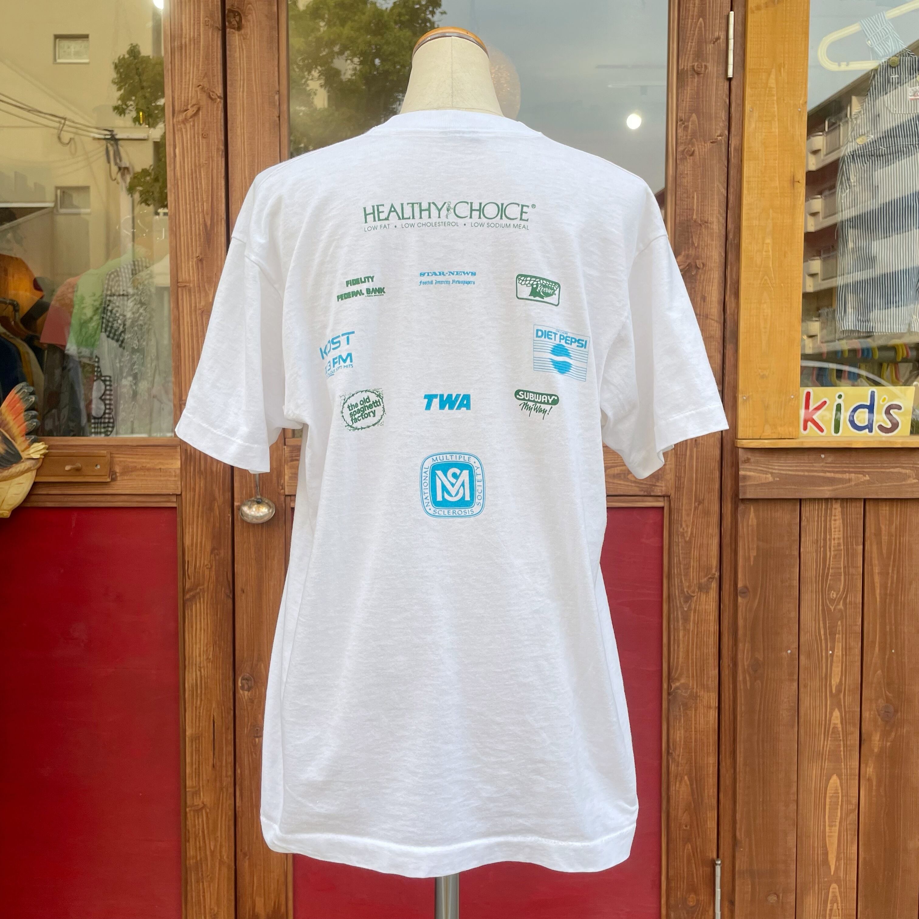 ウォーキングイベントのプリントでロゴのネオンピンクカラーがポップで可愛い印象に。