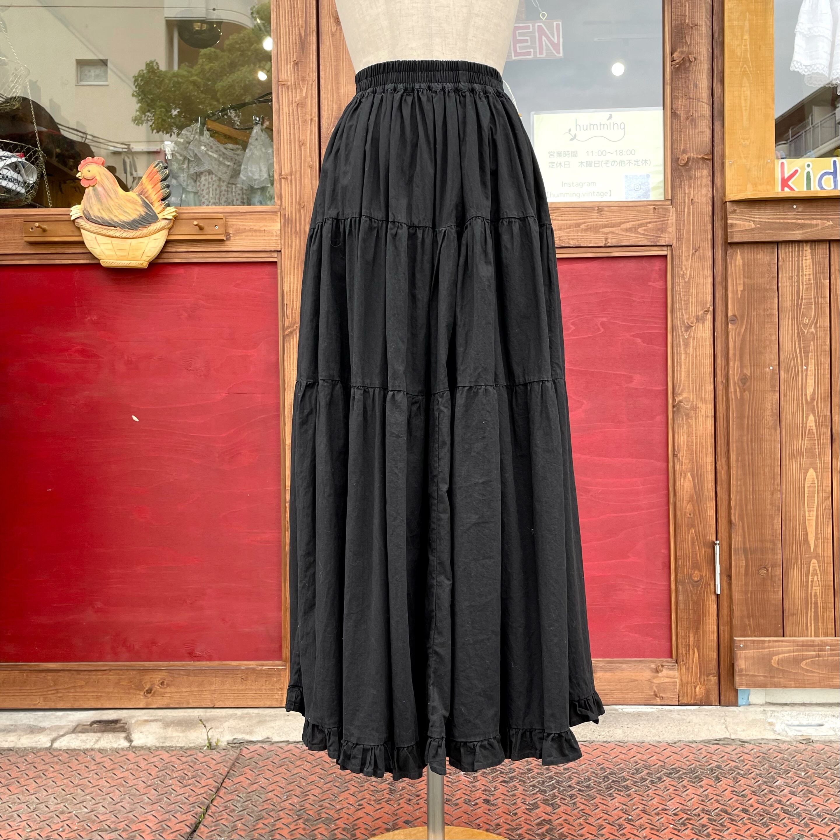 生地をたっぷりと使用したボリューミーなティアードスカートです。