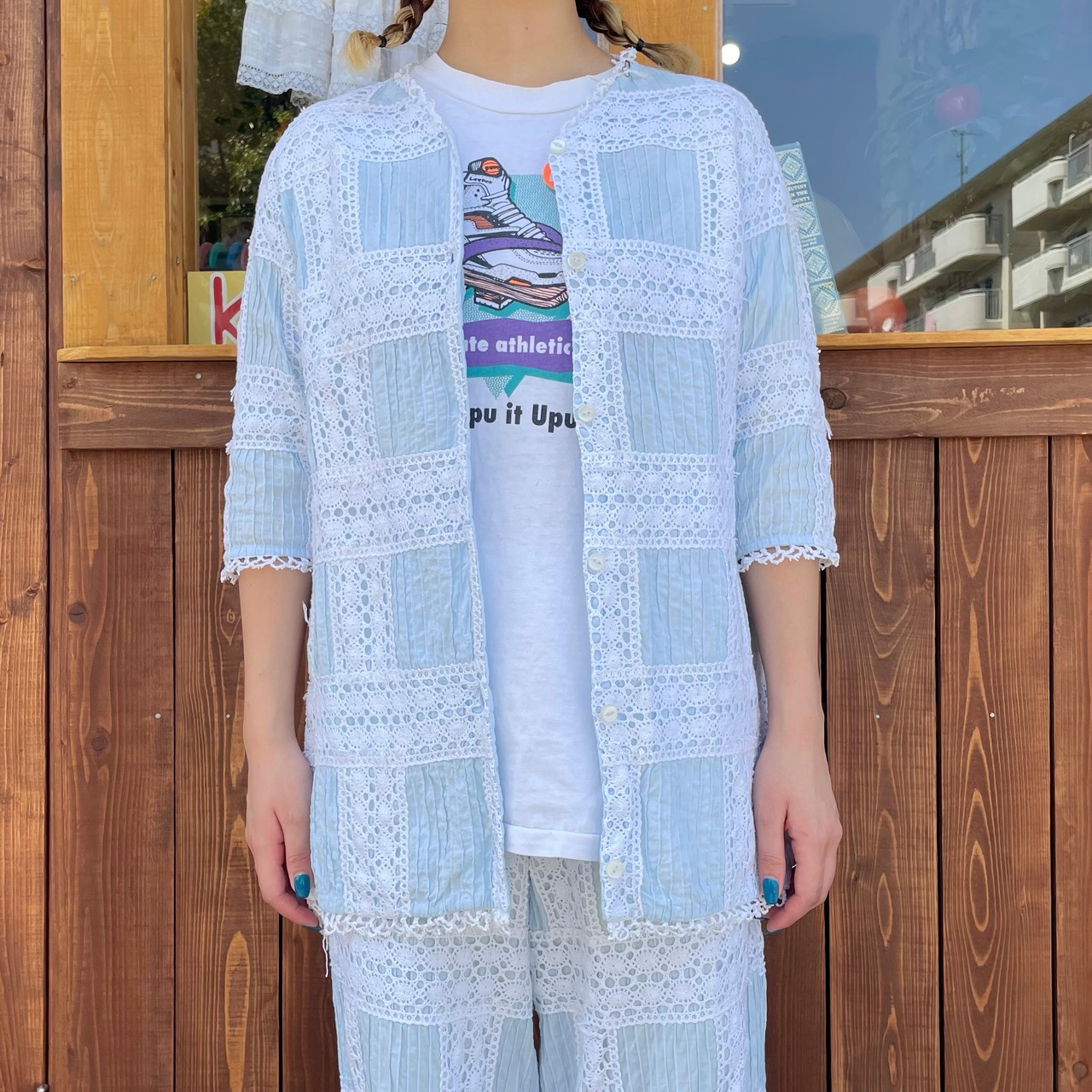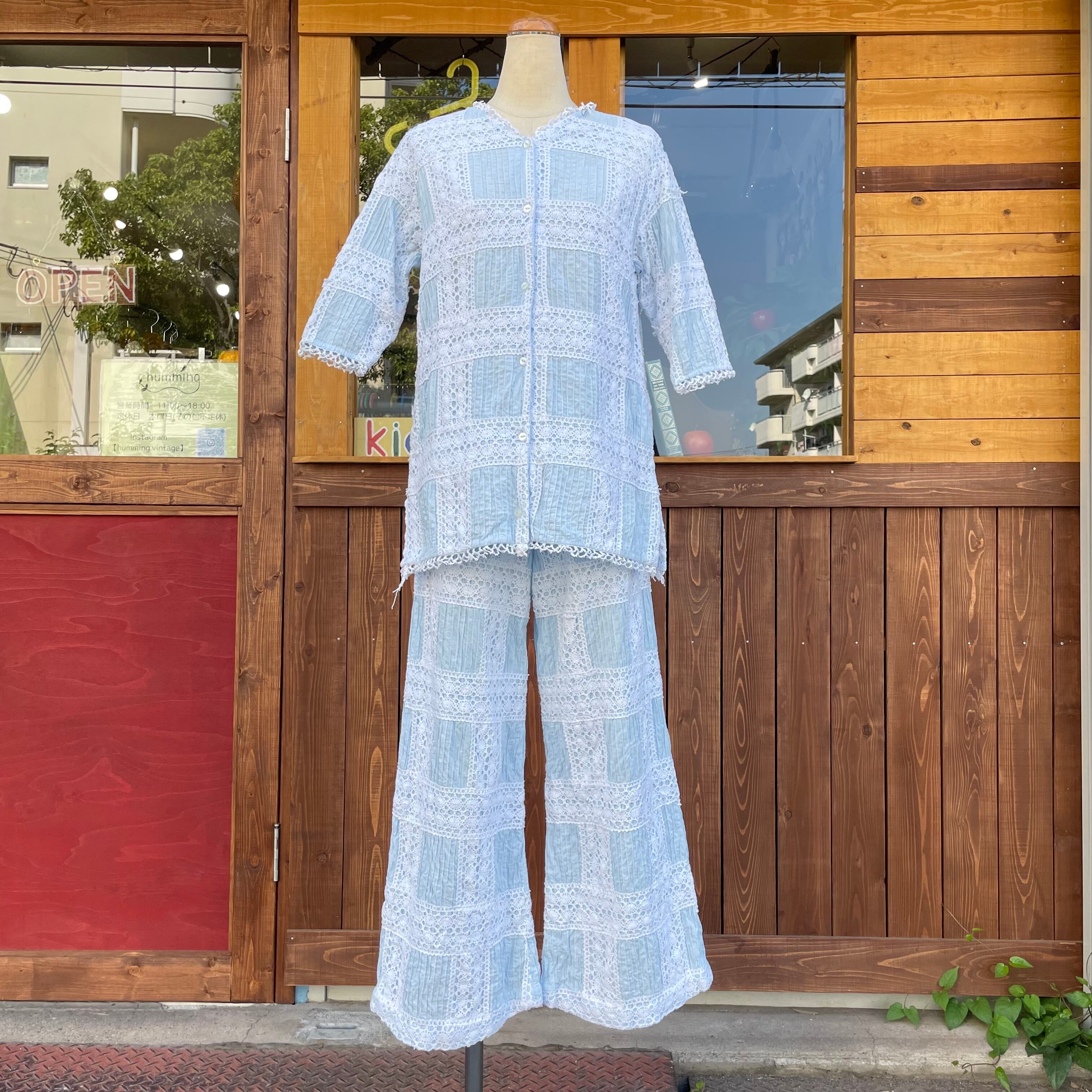 クロシェとコットンのドッキングデザインで大人な印象に。