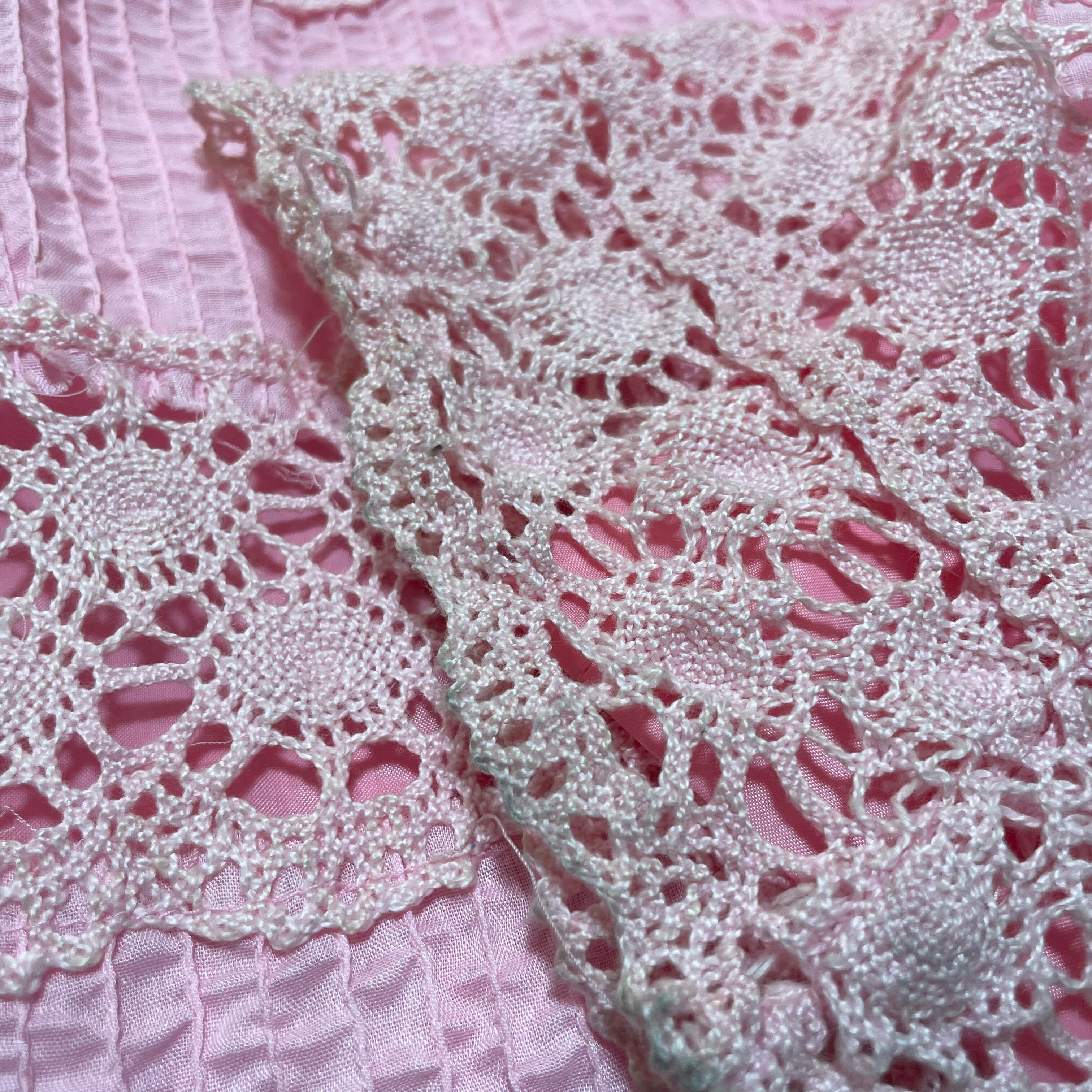クロシェとコットン生地のドッキングデザインで大人な印象に。