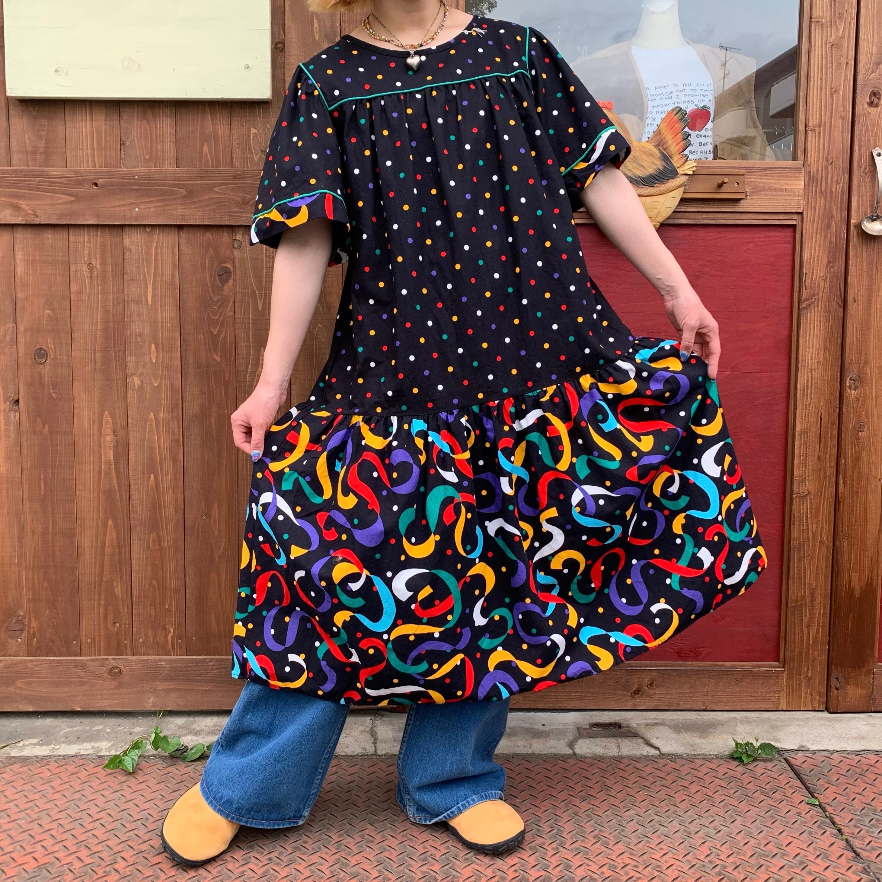 カラフルなドット柄とリボンの組み合わせがキュートなワンピースです。