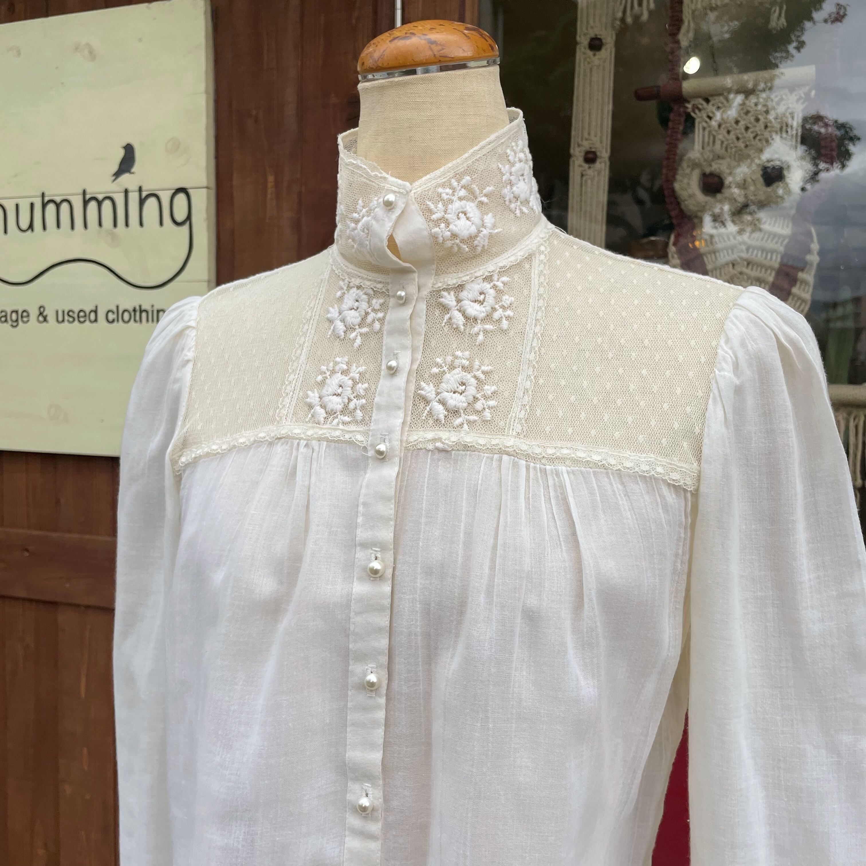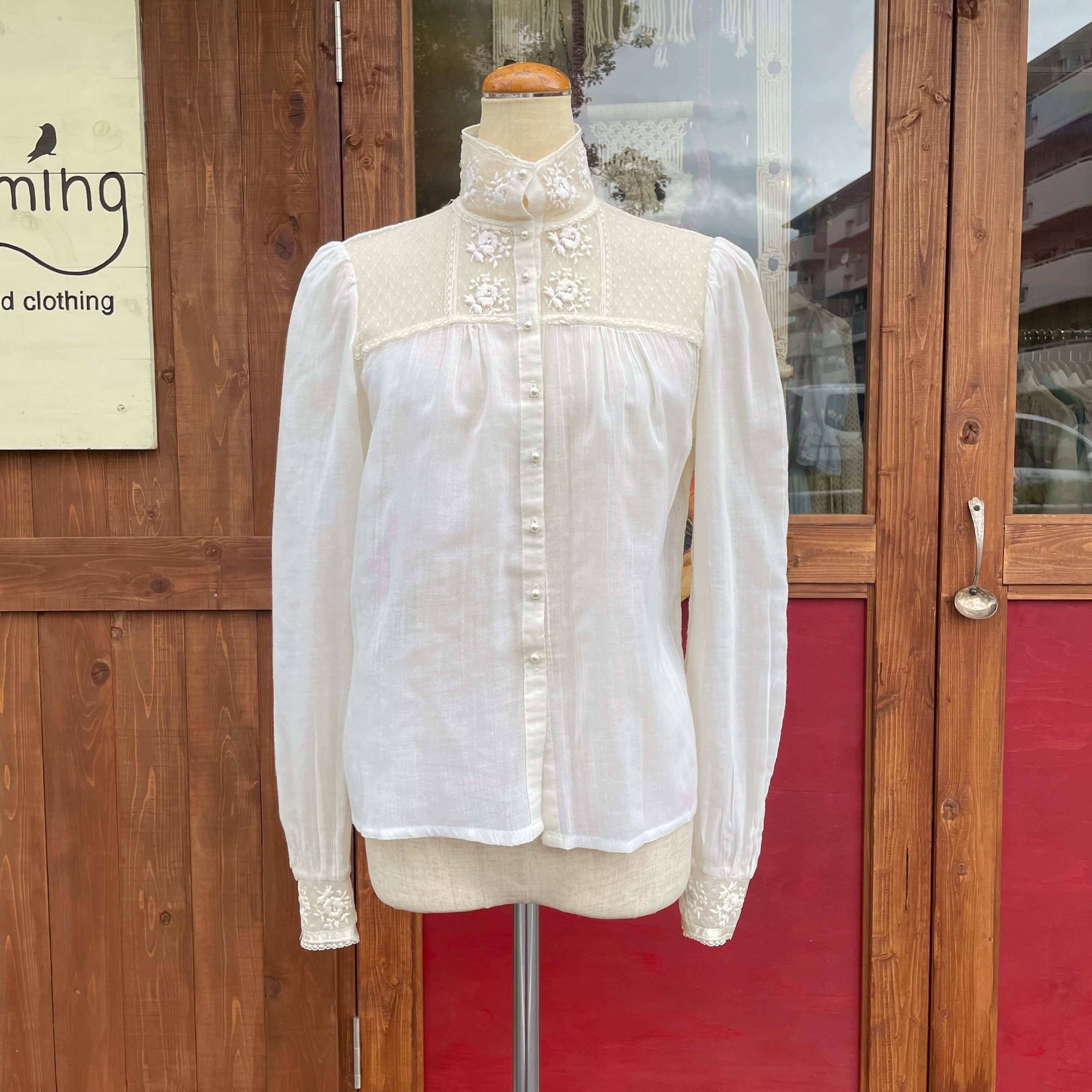 コットンガーゼとレースを組み合わせた定番ですがGUNNIES(GUNNESAX)らしさ光る繊細で可憐なブラウスです。