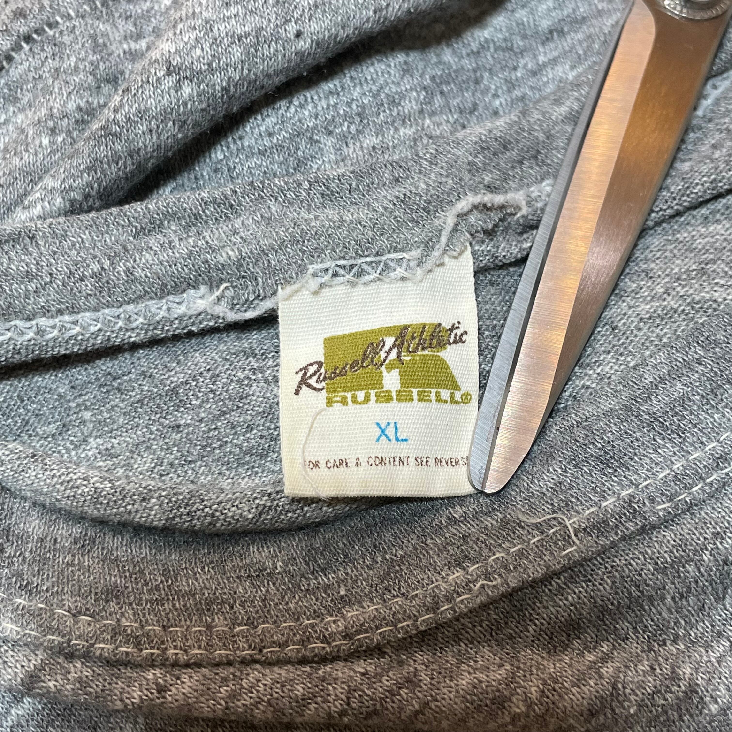 金タグと呼ばれるゴールドカラーのタグが付いた70年代頃のお品で人気の3連カレッジプリントになっています。