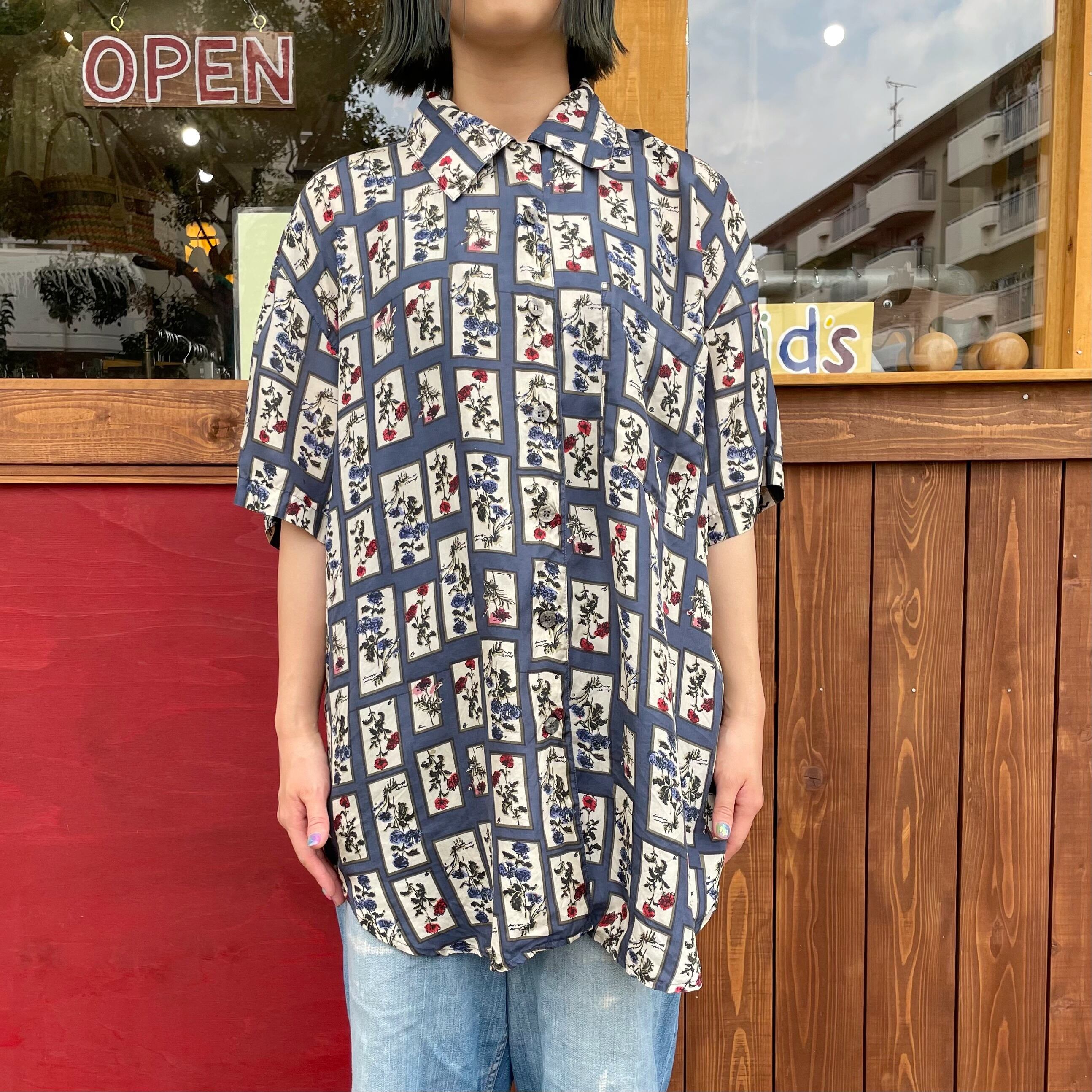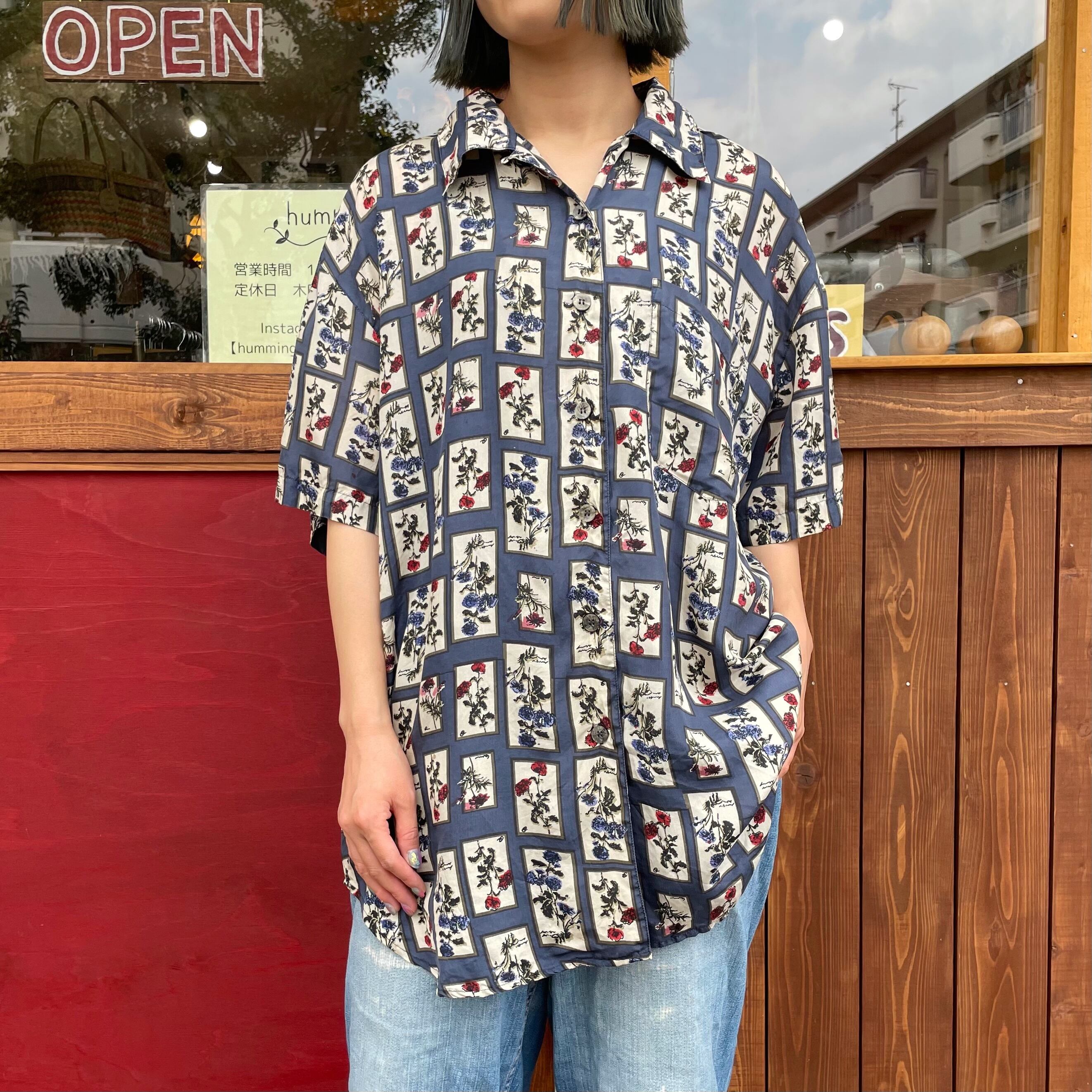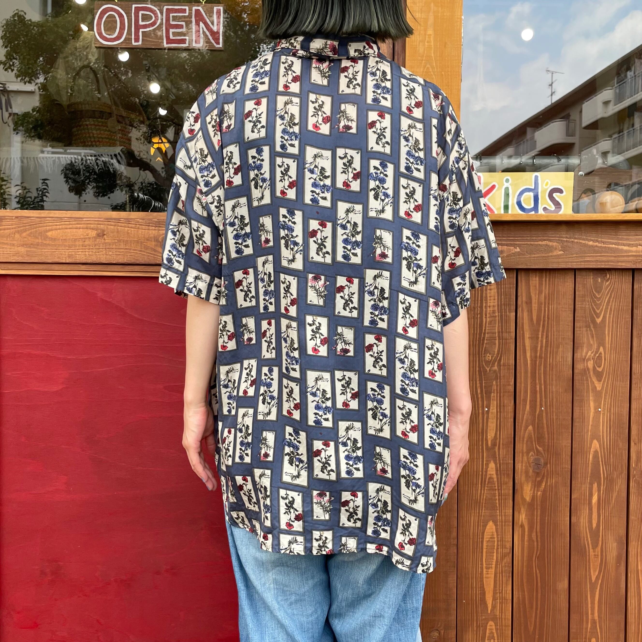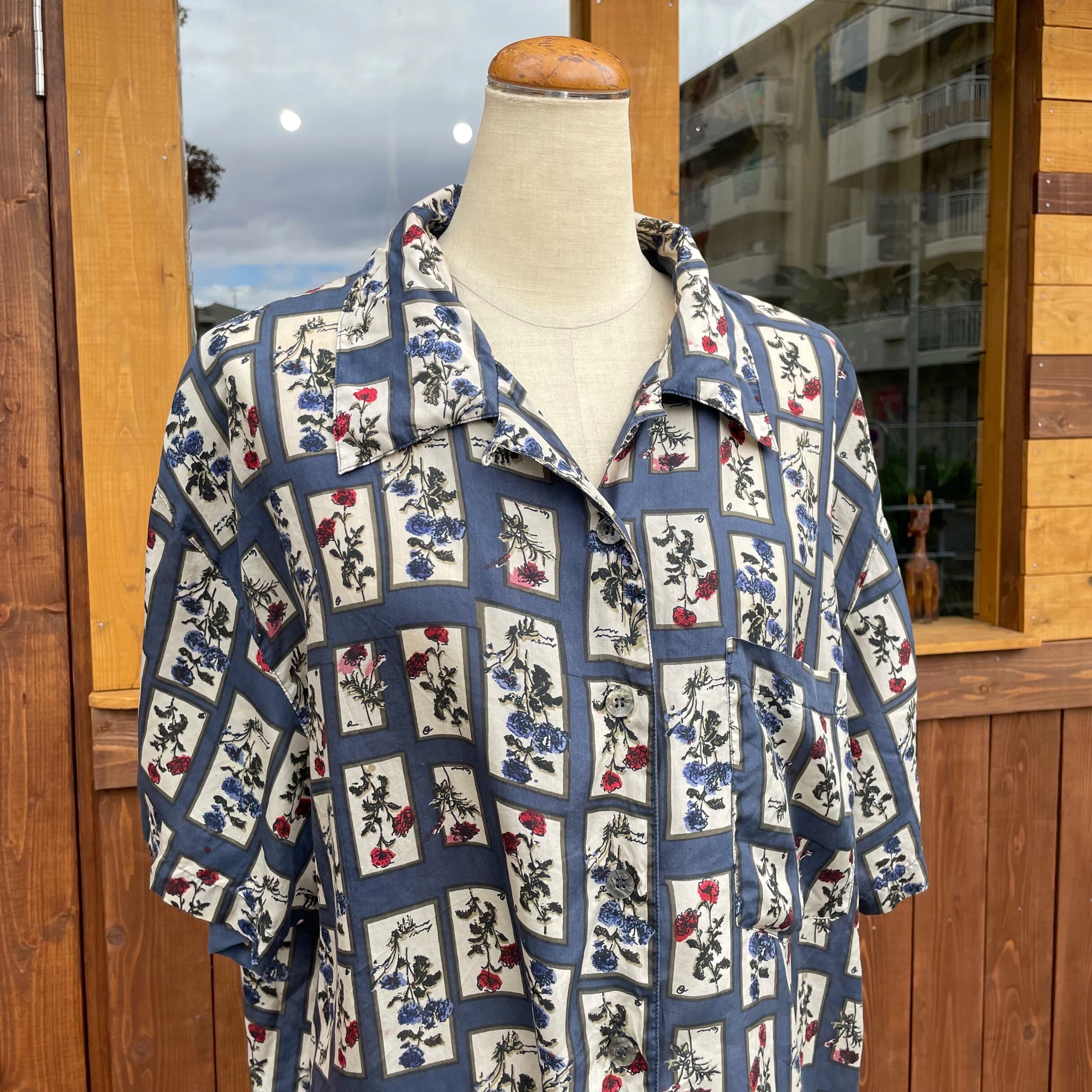 図鑑の様にたくさんのお花が並んだシルクシャツです。