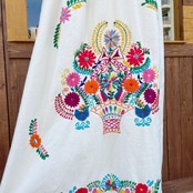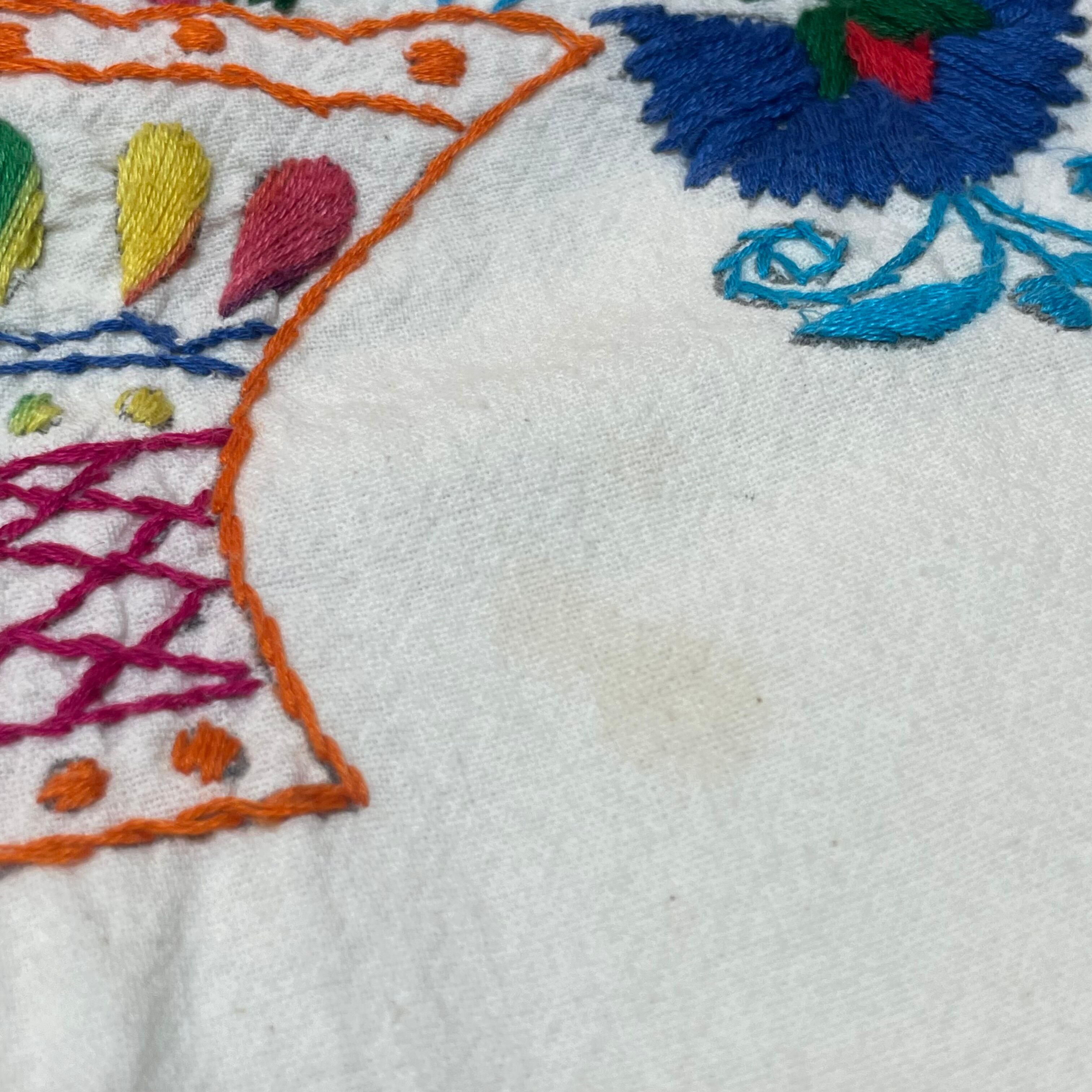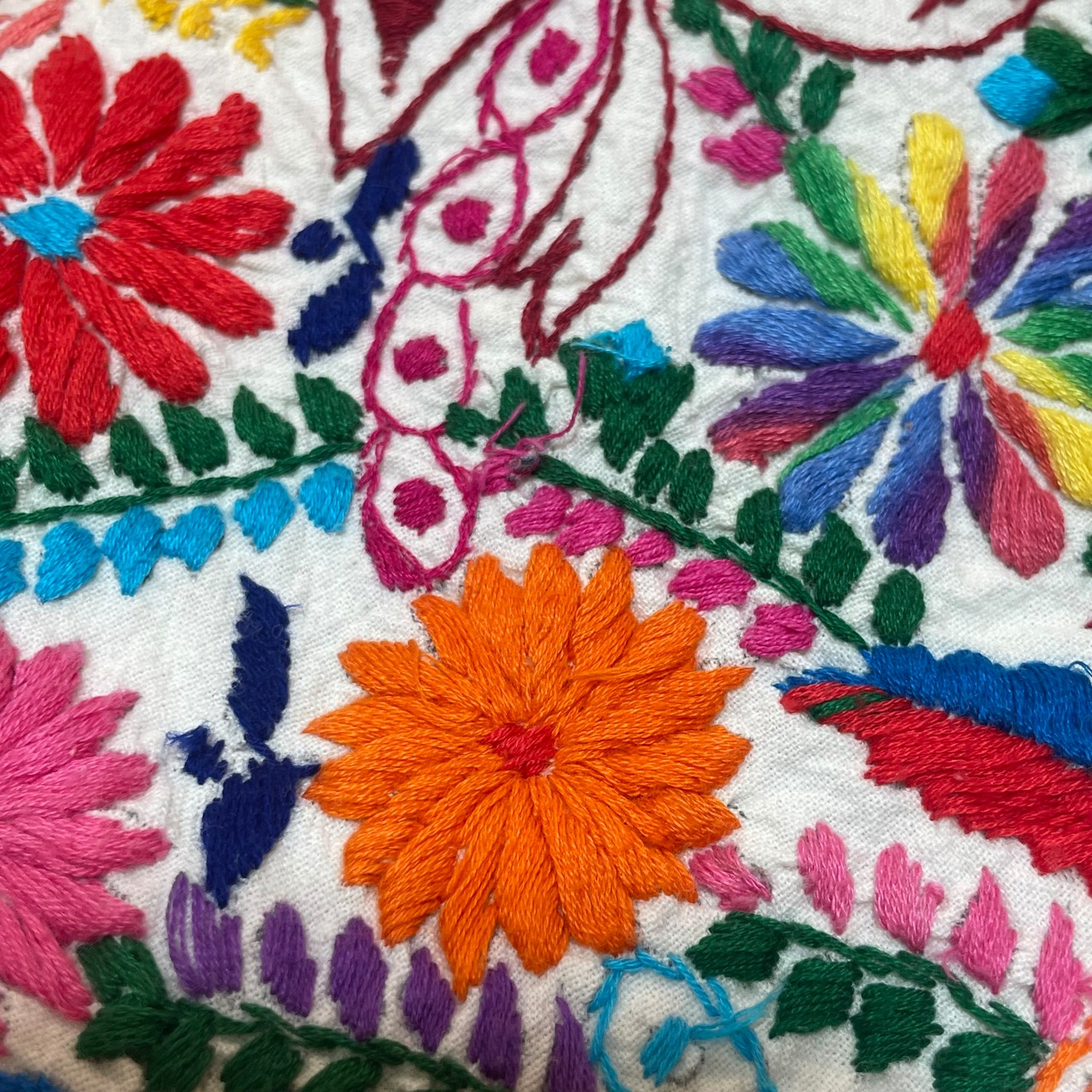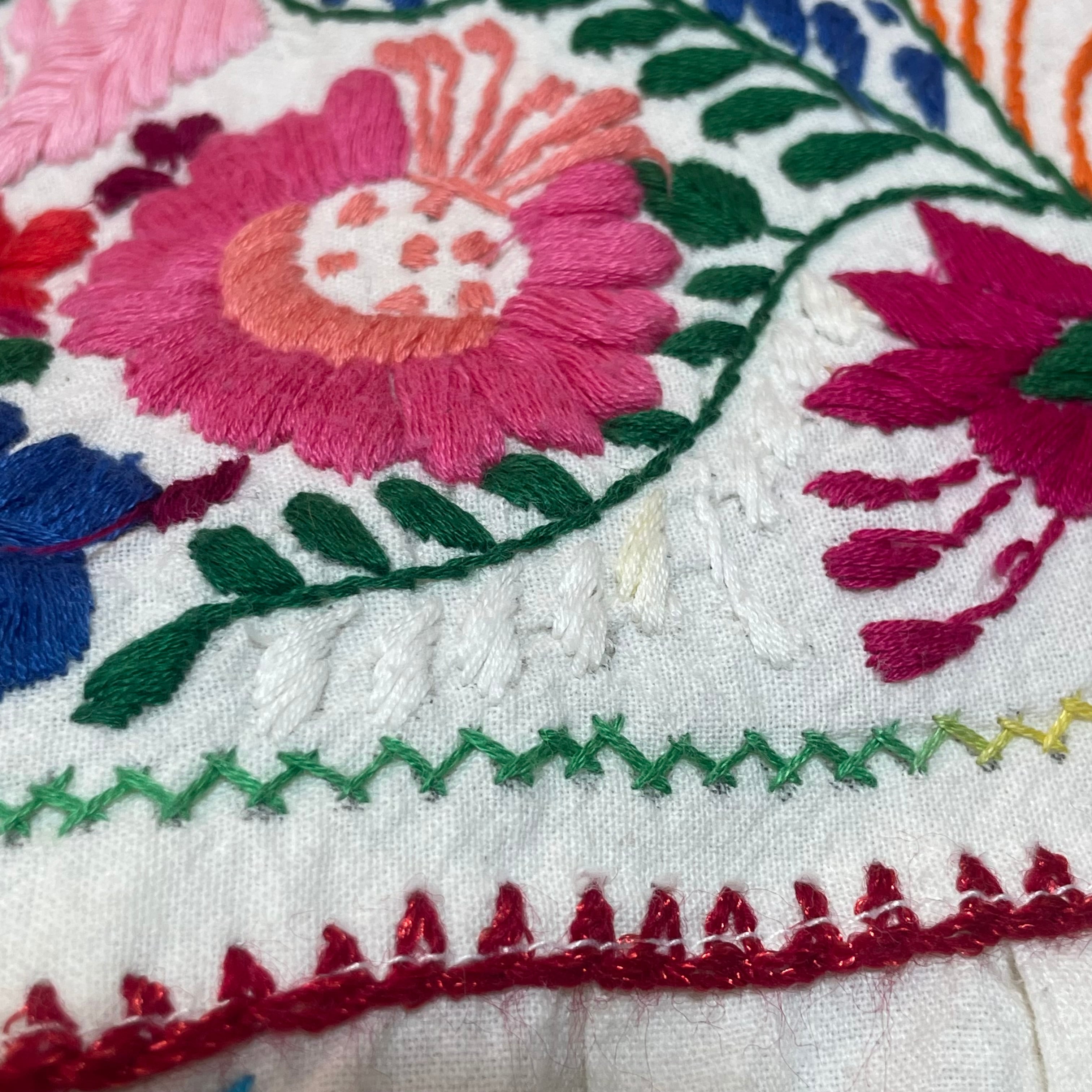 定番カラーですがカラフル刺繍たっぷりなホワイトのメキシコ刺繍ワンピースです。