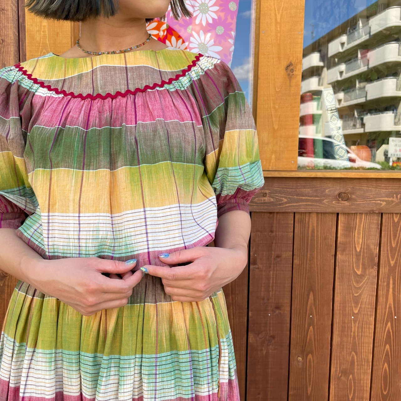 カラフルなチェック柄が可愛いチロルのセットアップです。