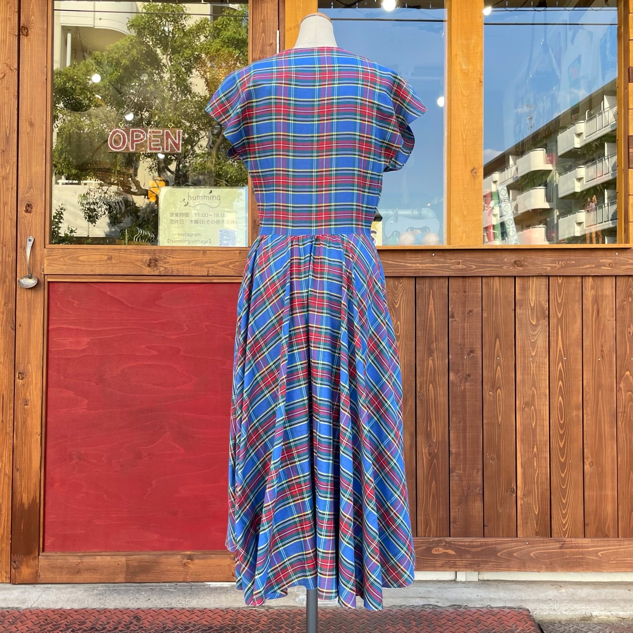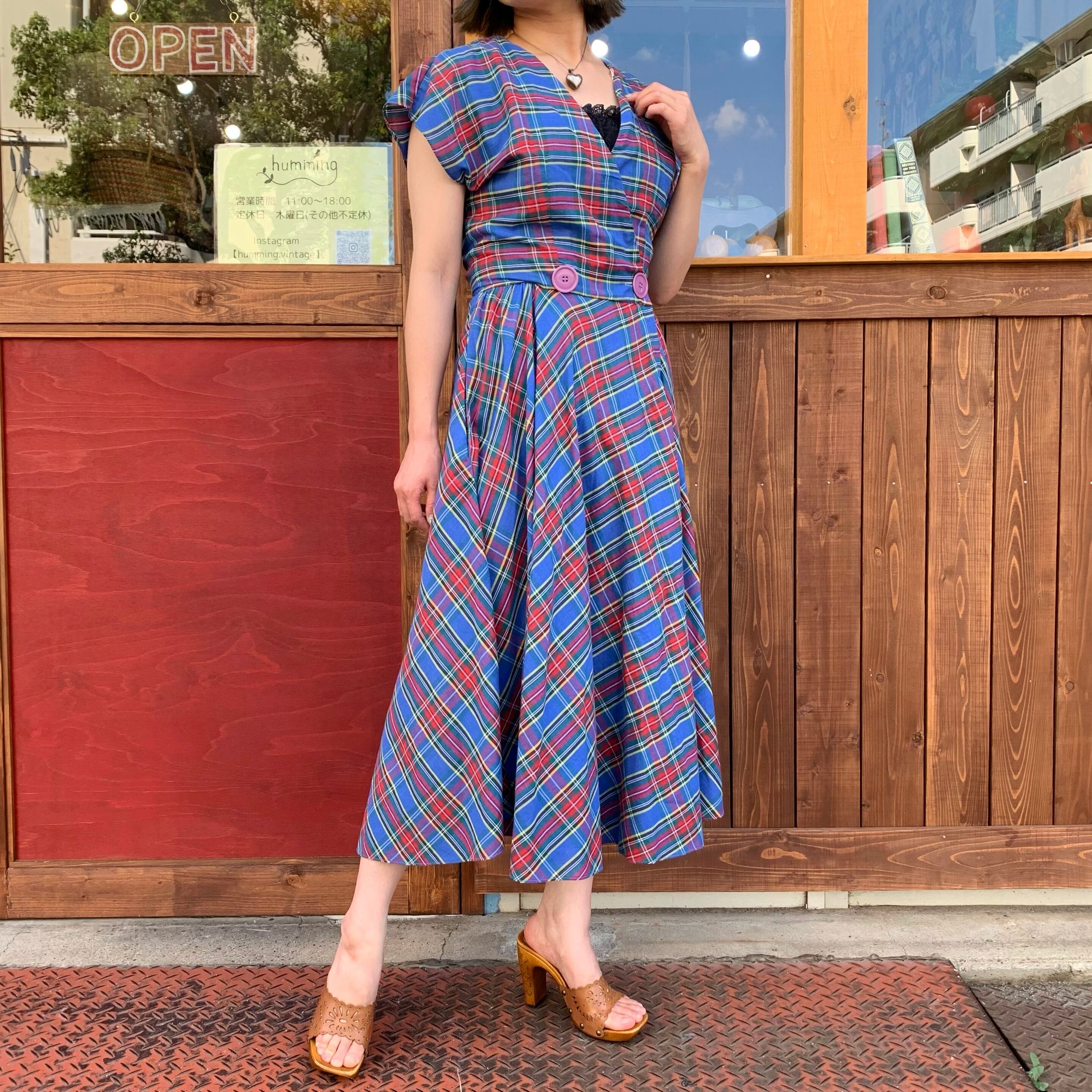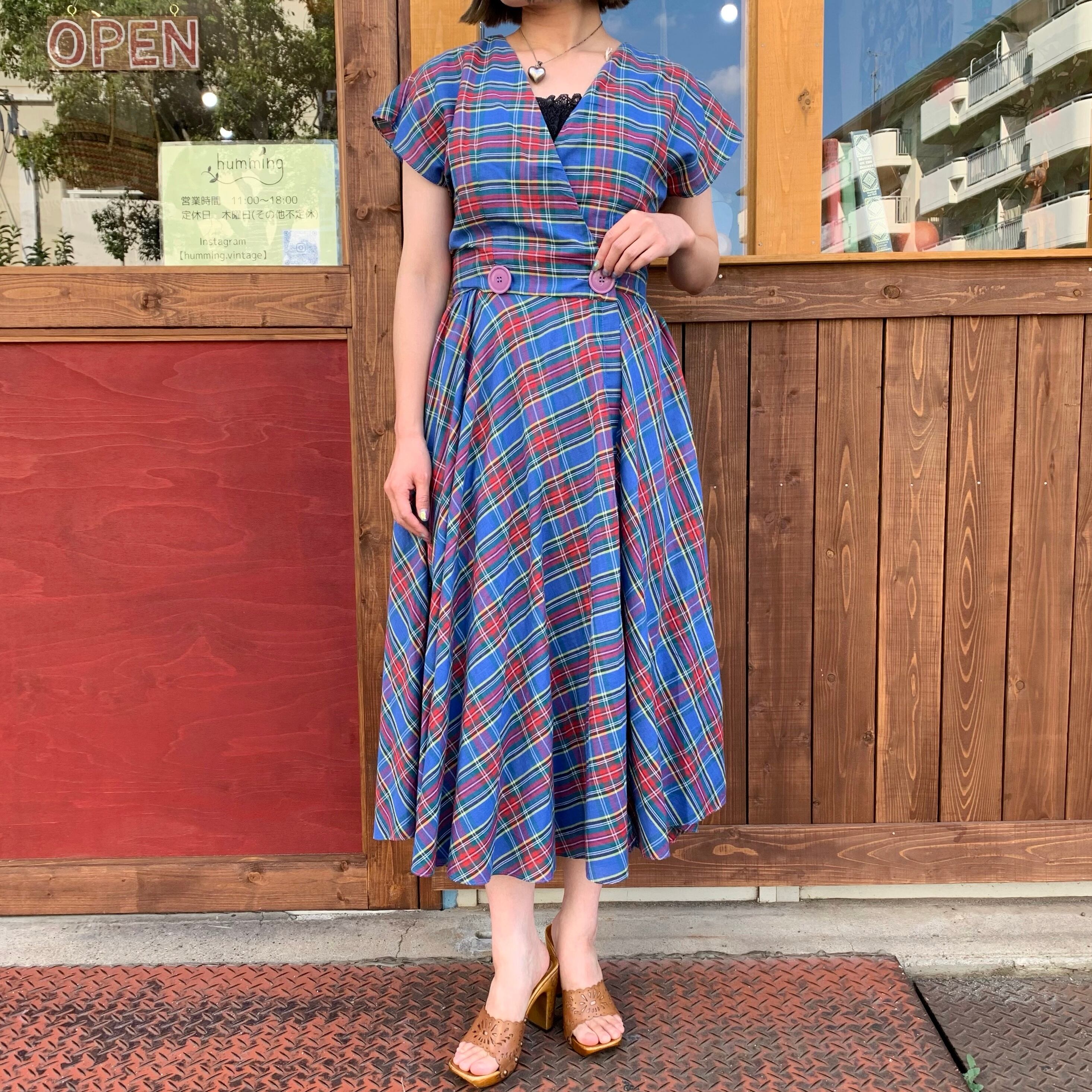 チェック柄の巻きワンピースです。