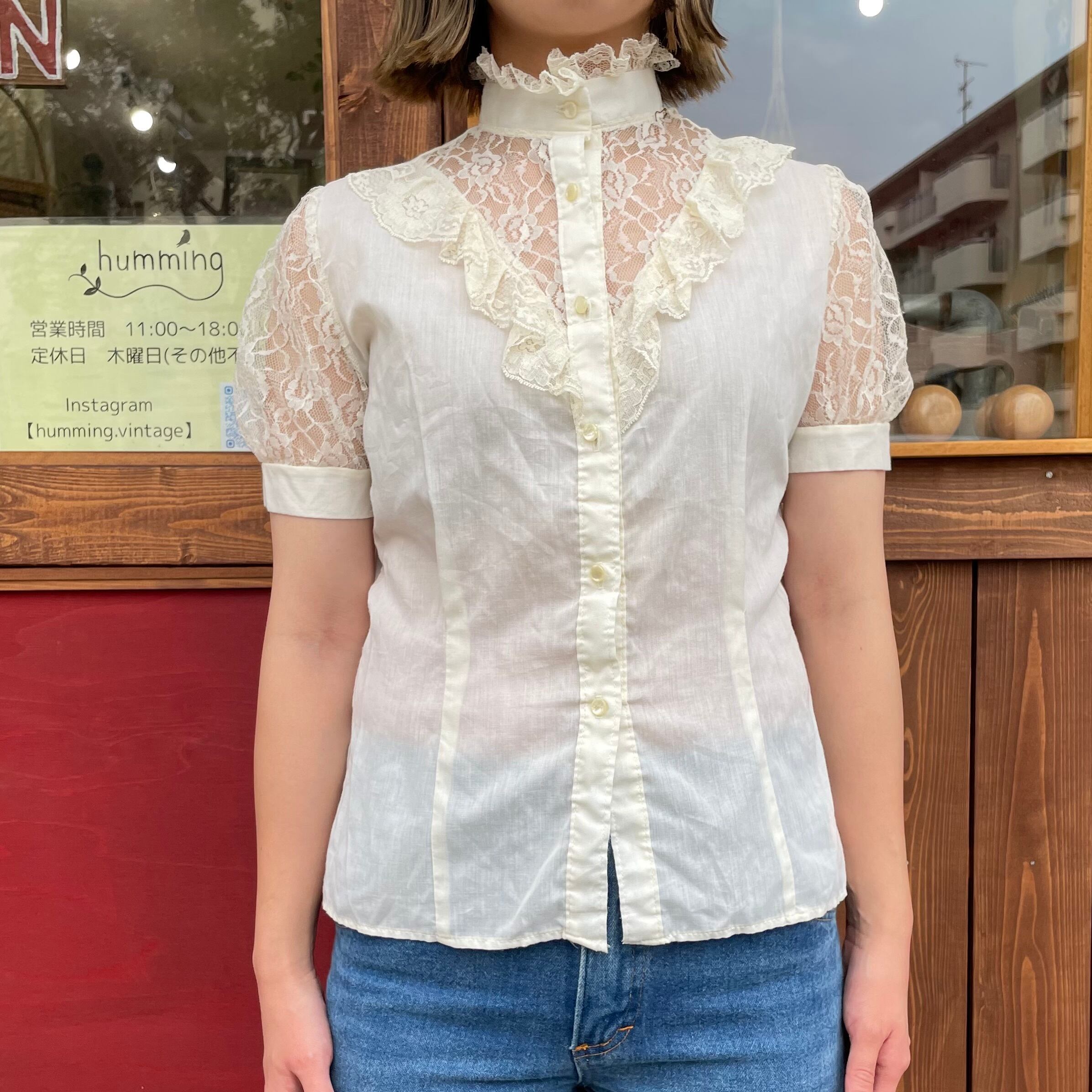 この年代ならではなキナリカラーの薄いコットン素材に繊細なレースのデザインが可愛い1着。