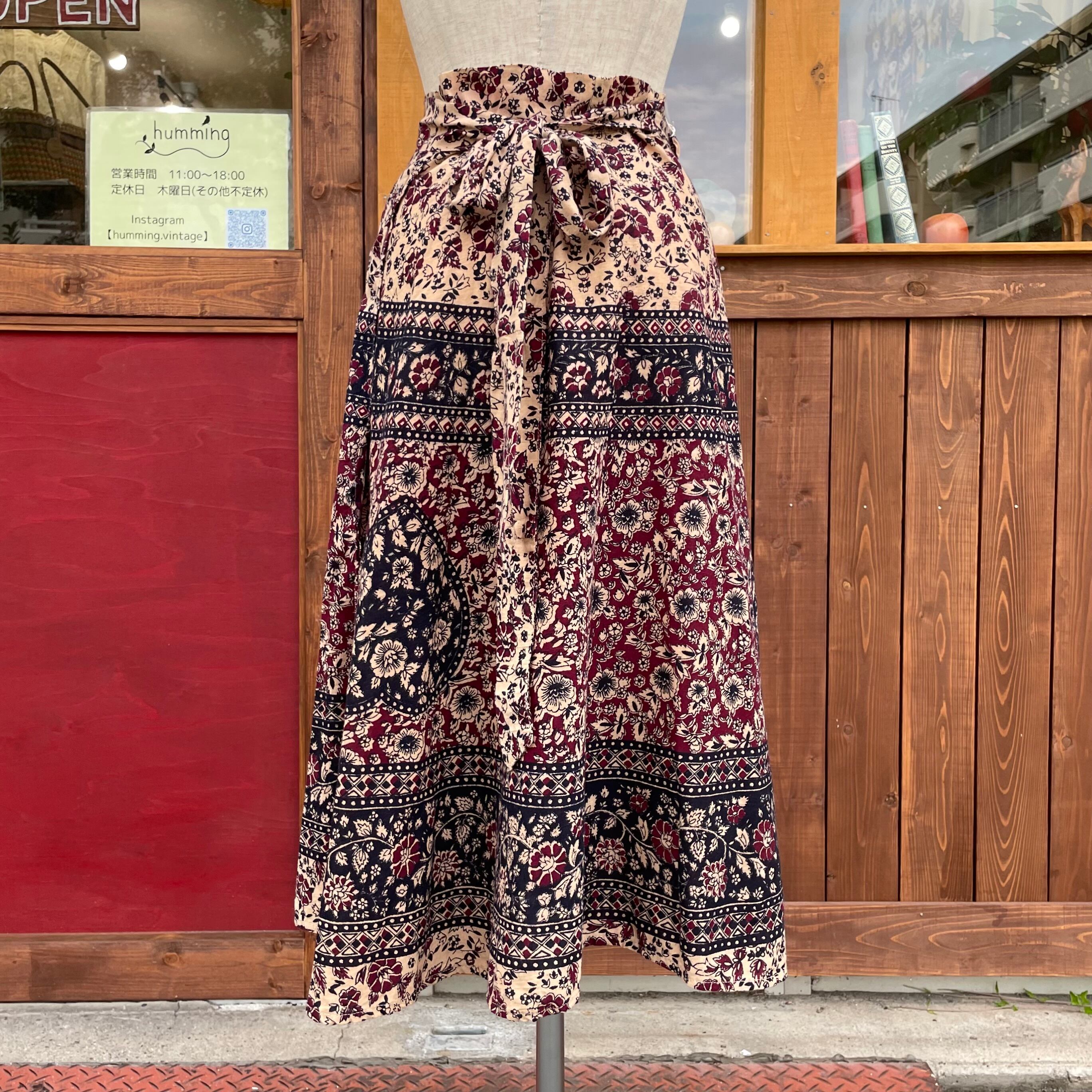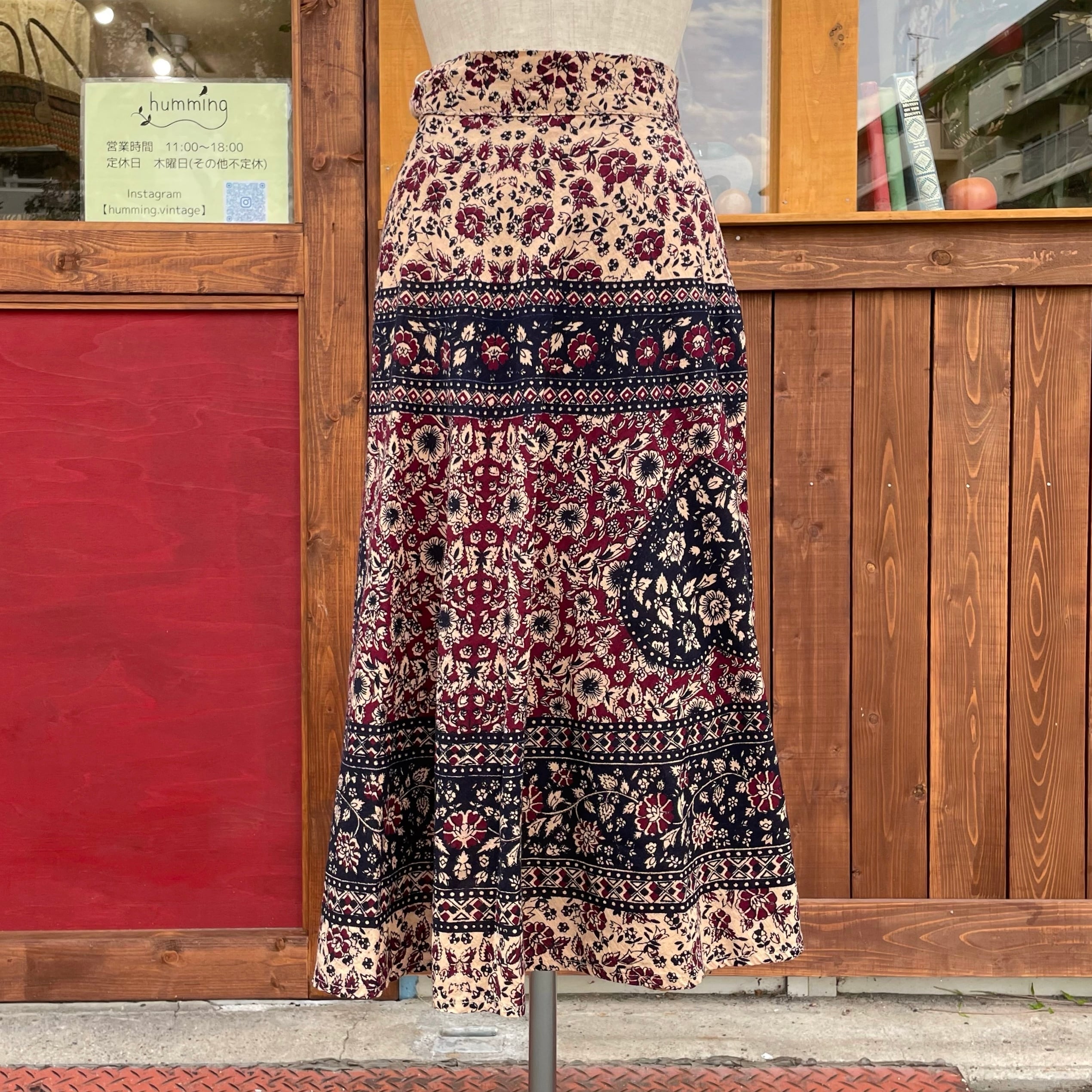 全体にデザインされたスタンププリントが可愛いく、ミディ丈でフレアパンツやデニム等ともレイヤードしやすい一着。