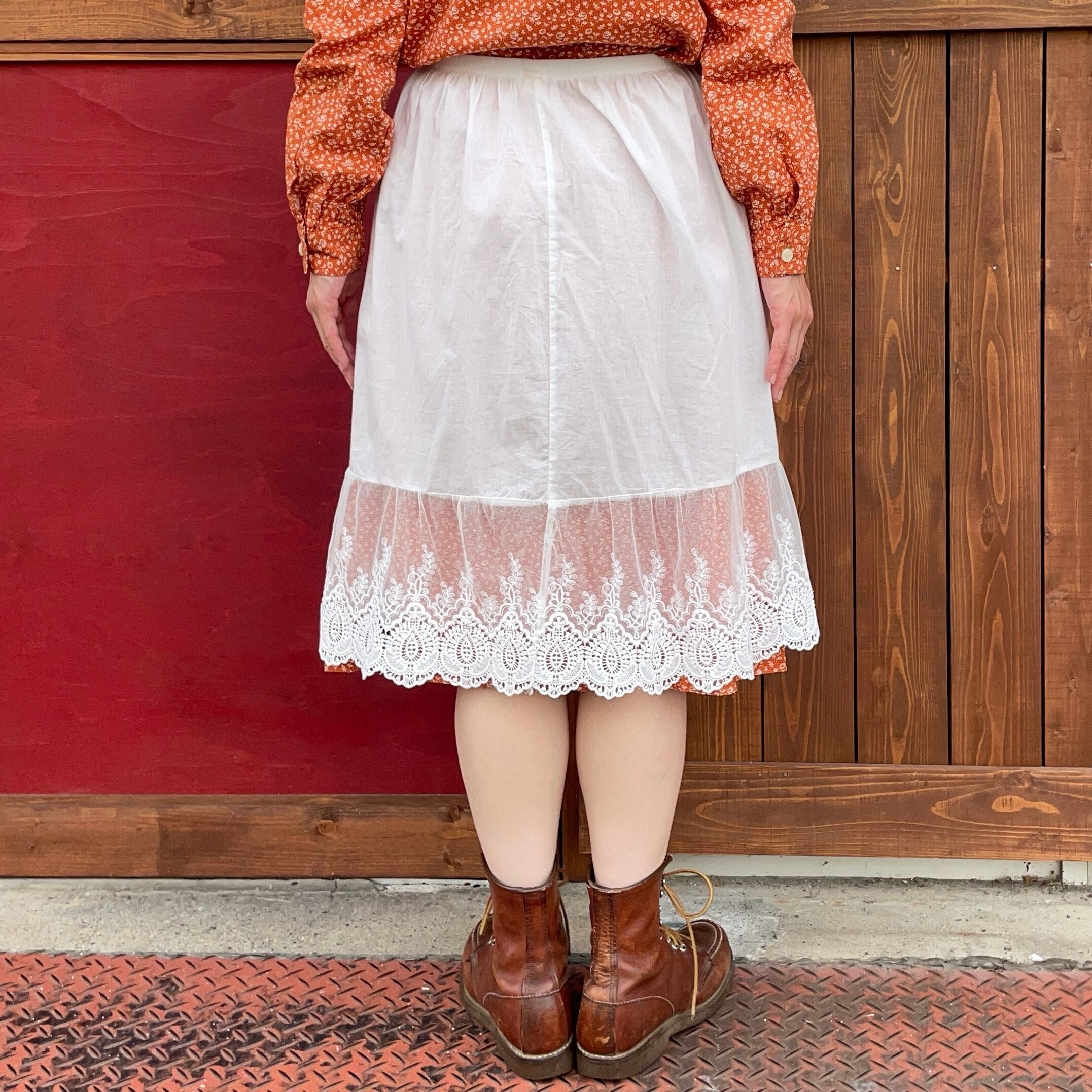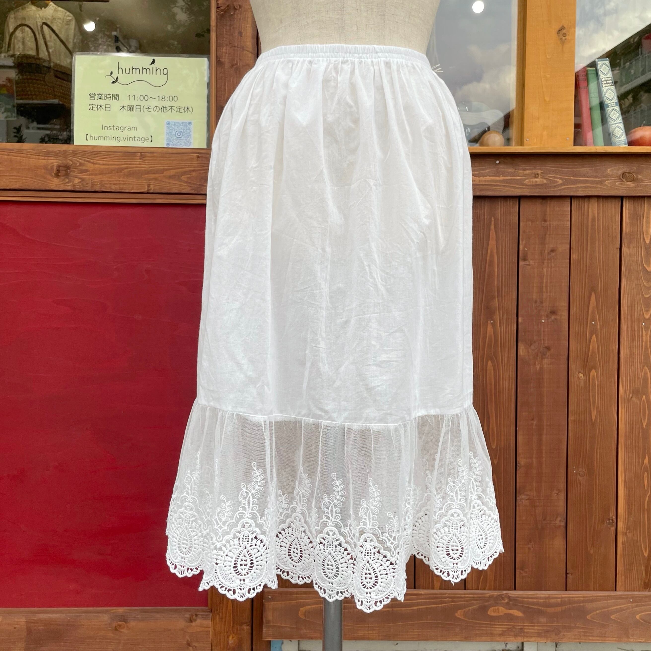 元々はインナーとして履くスカートですが透け感を生かしてボトムスやワンピースの上から重ねてレイヤードスタイルがとっても可愛いです。