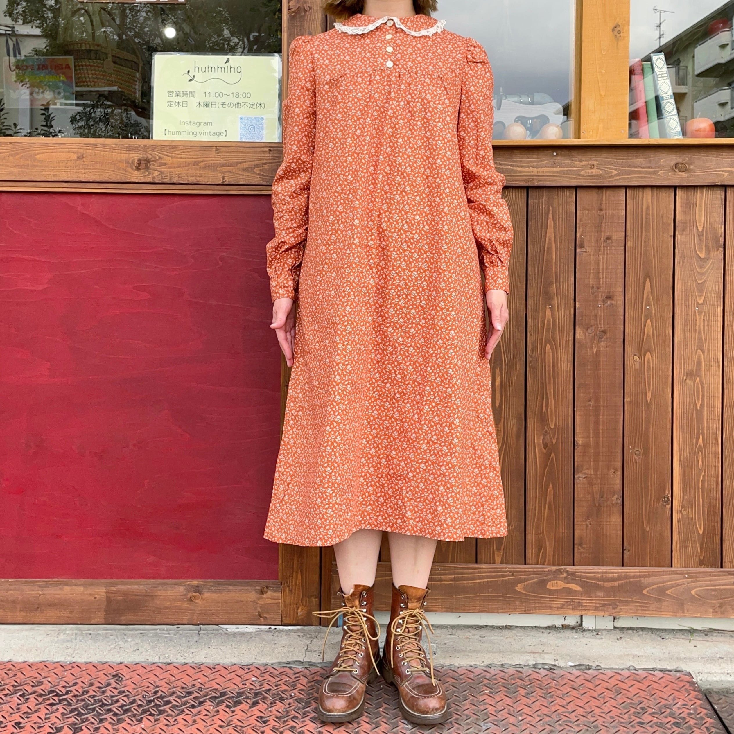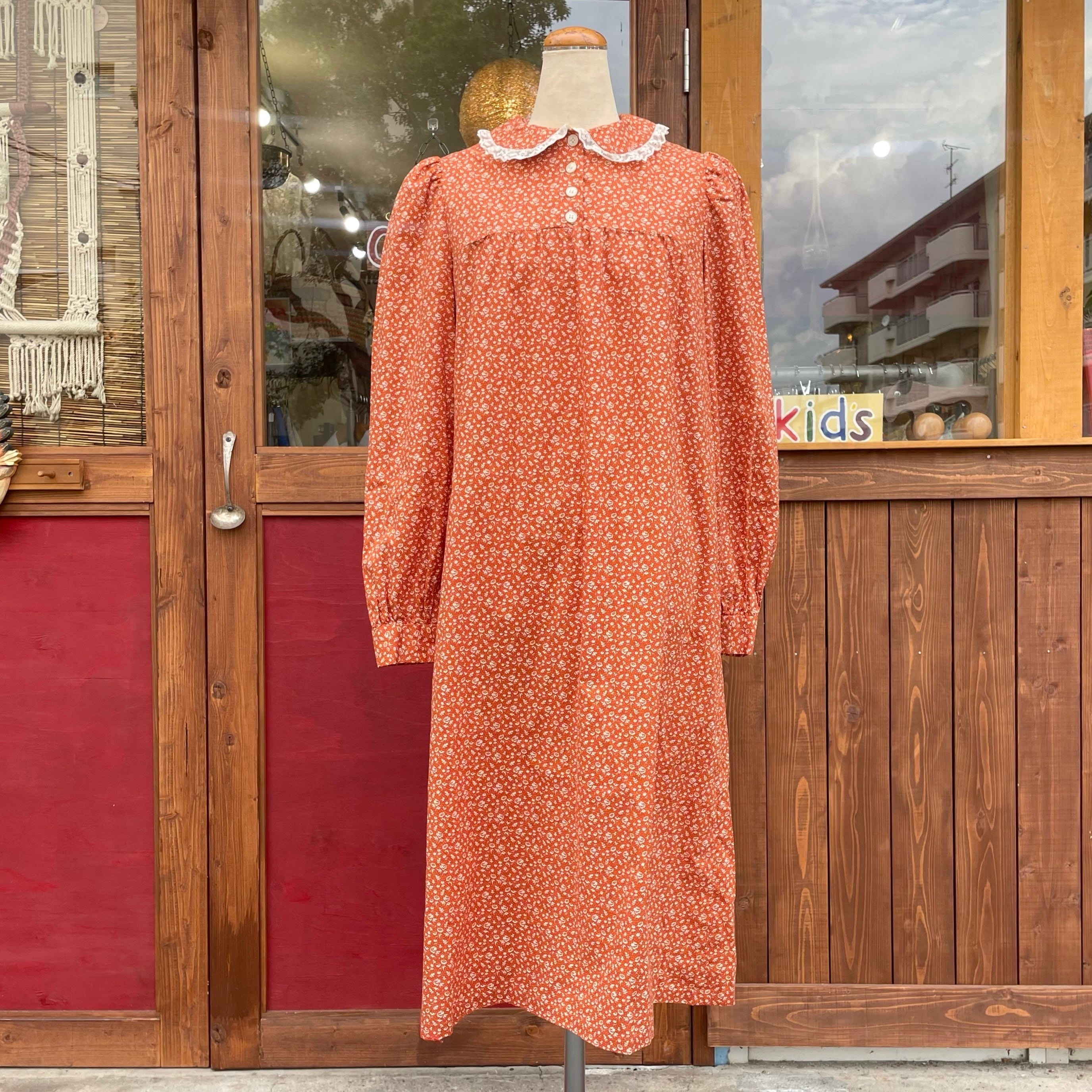 丸襟フリルの可愛い小花柄ワンピースです。
