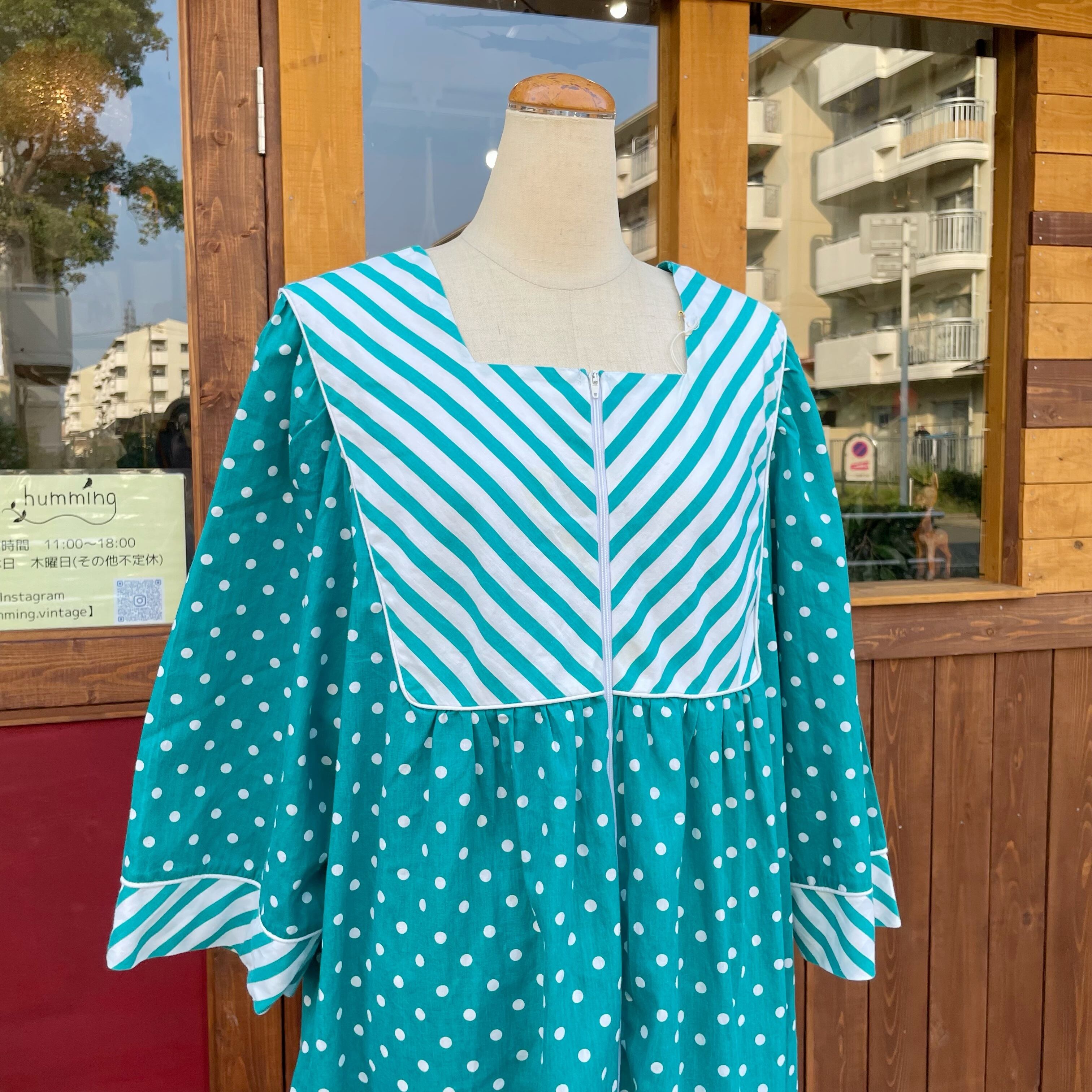 ストライプとドットの組み合わせがポップで可愛いワンピースです。