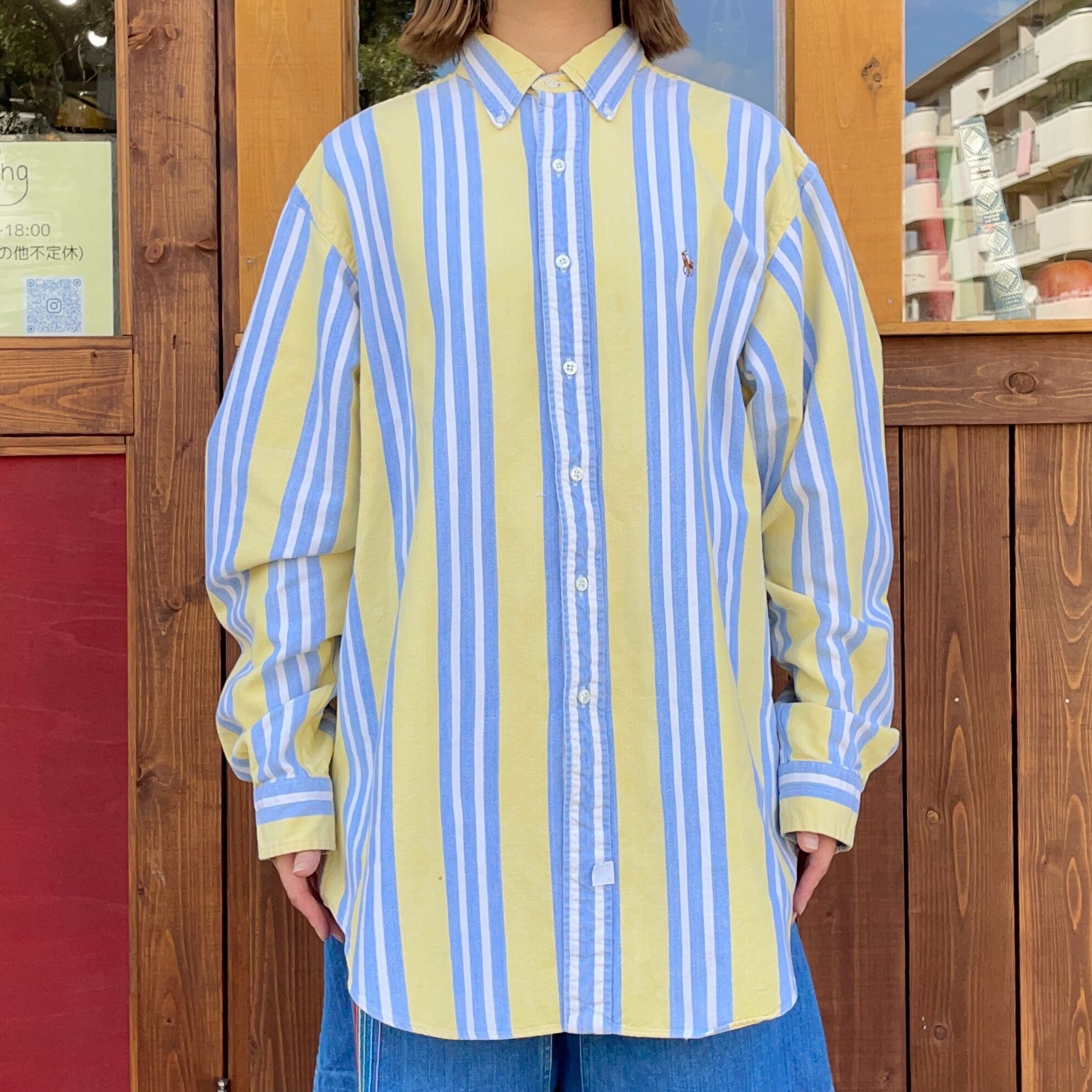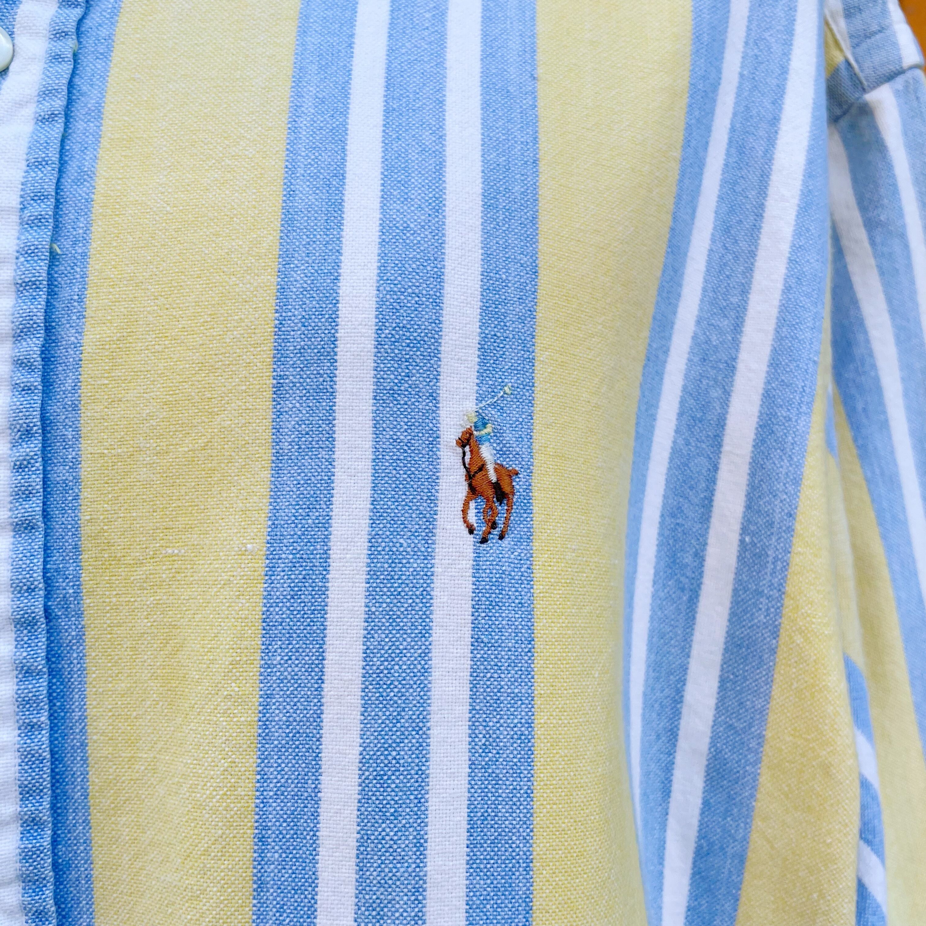 レモンイエローとシャンブレーカラーのラルフローレンストライプシャツです。