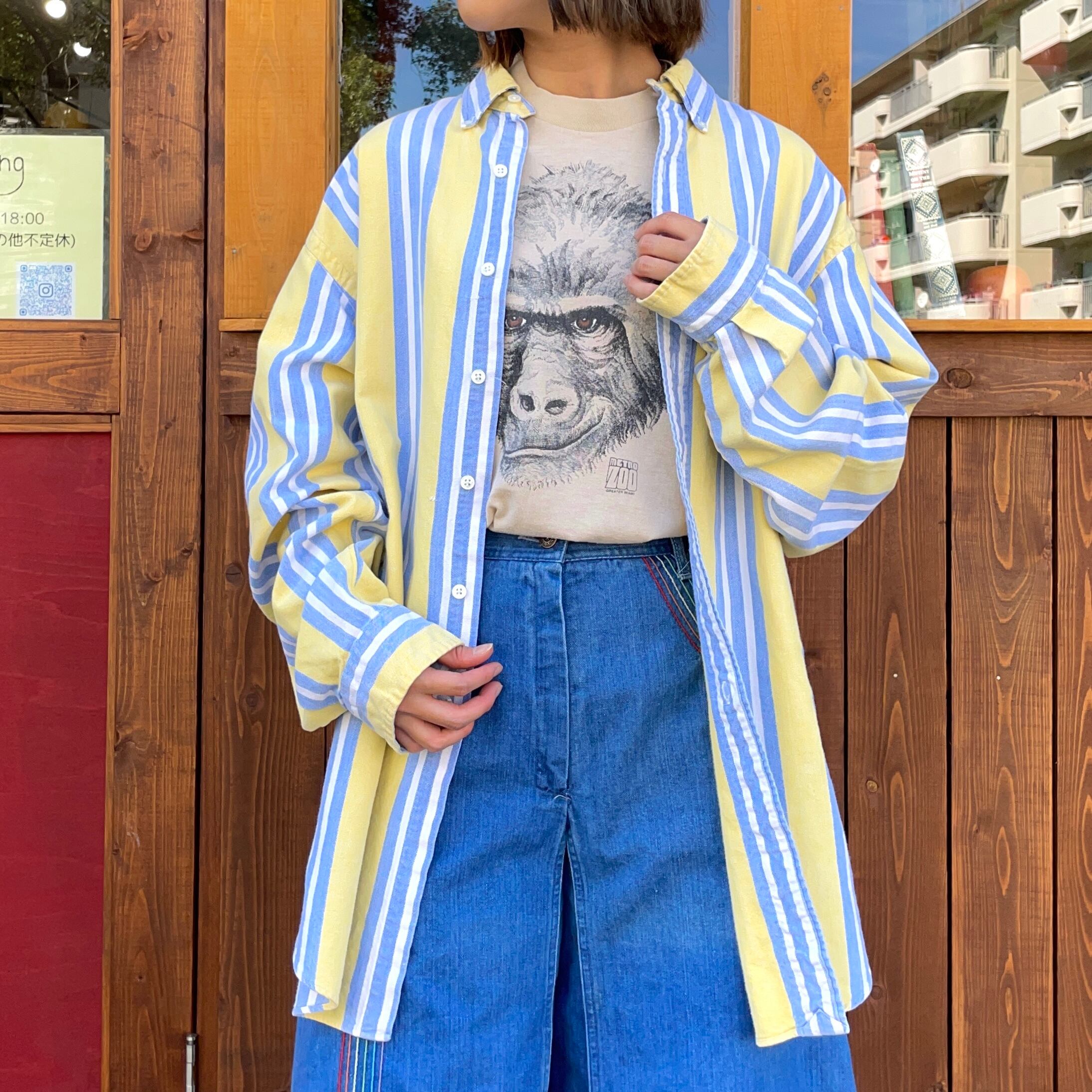 オーバーサイズなのでワンピース風に着たり羽織として着たりとコーディネートのアレンジがしやすいのもポイントですよ。