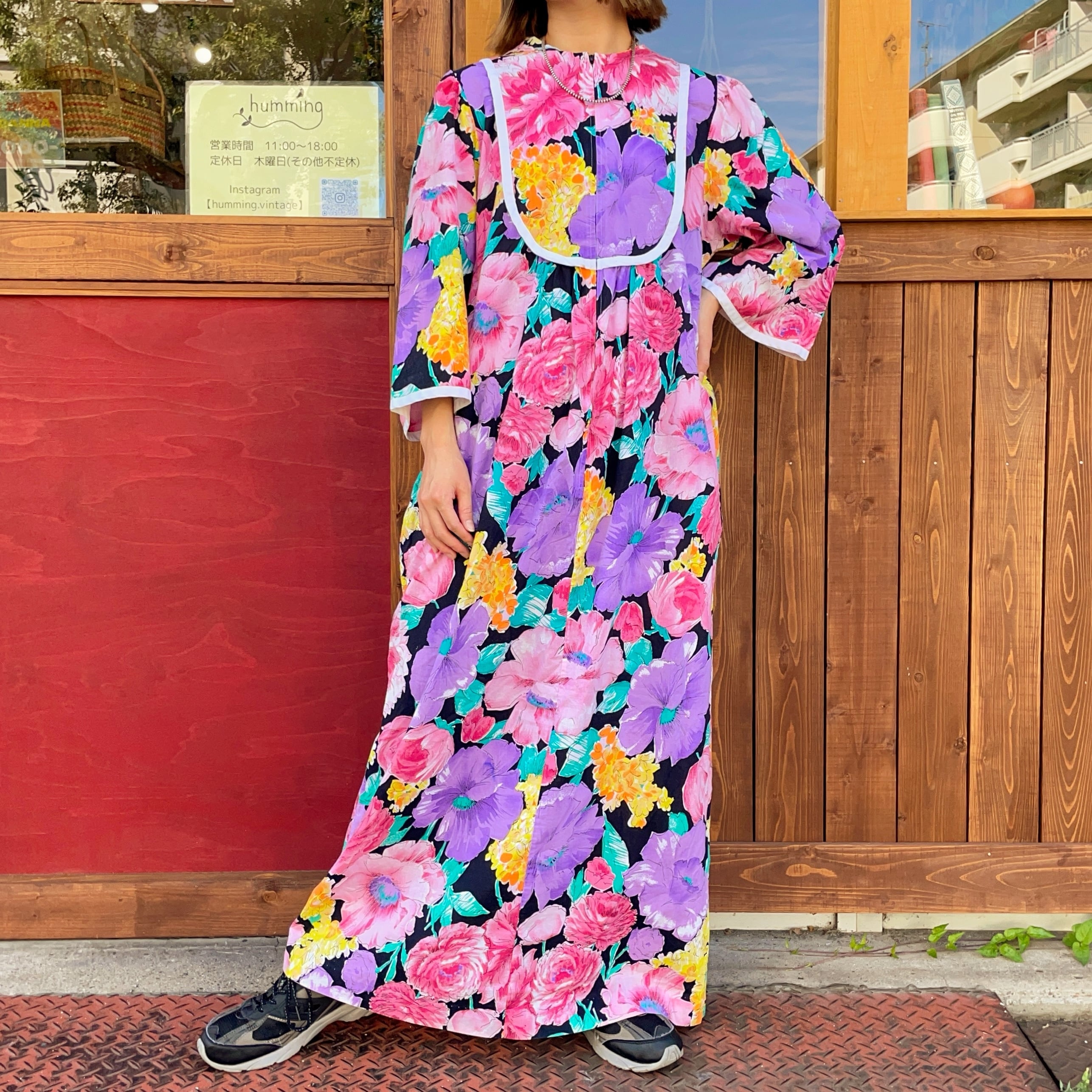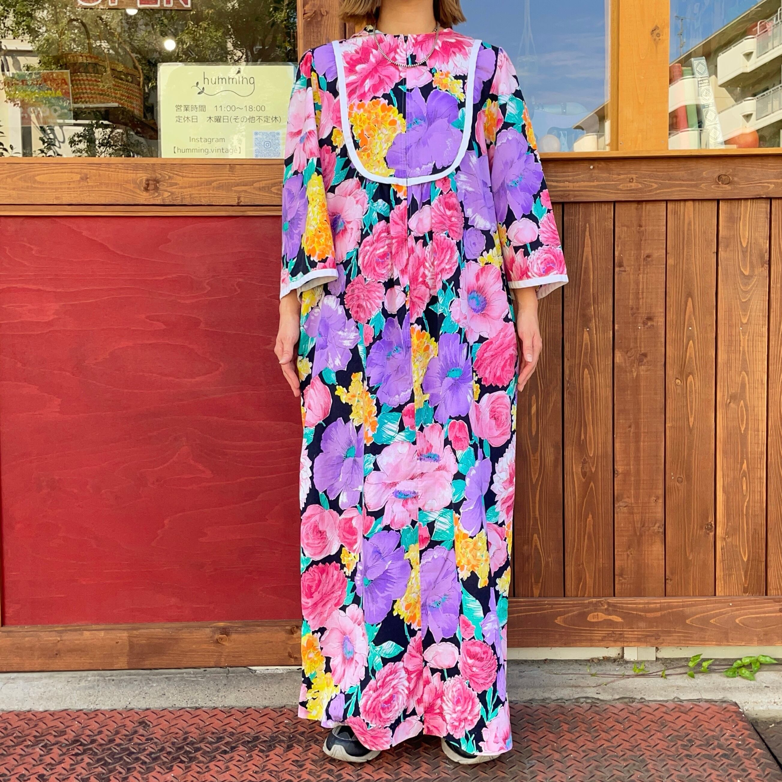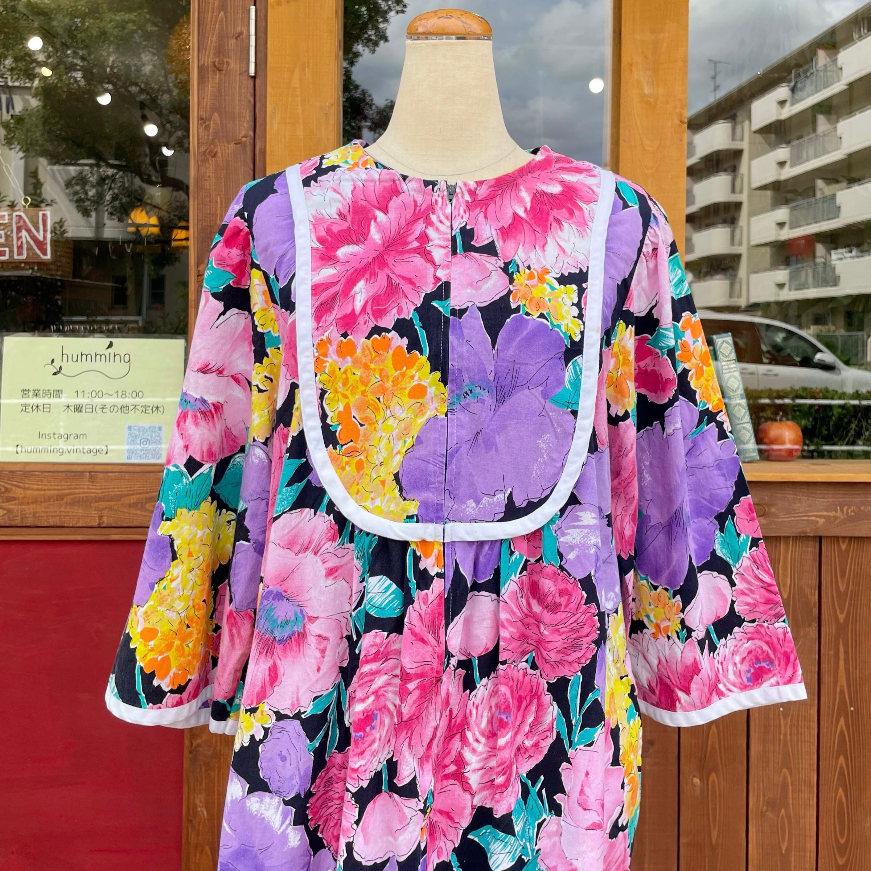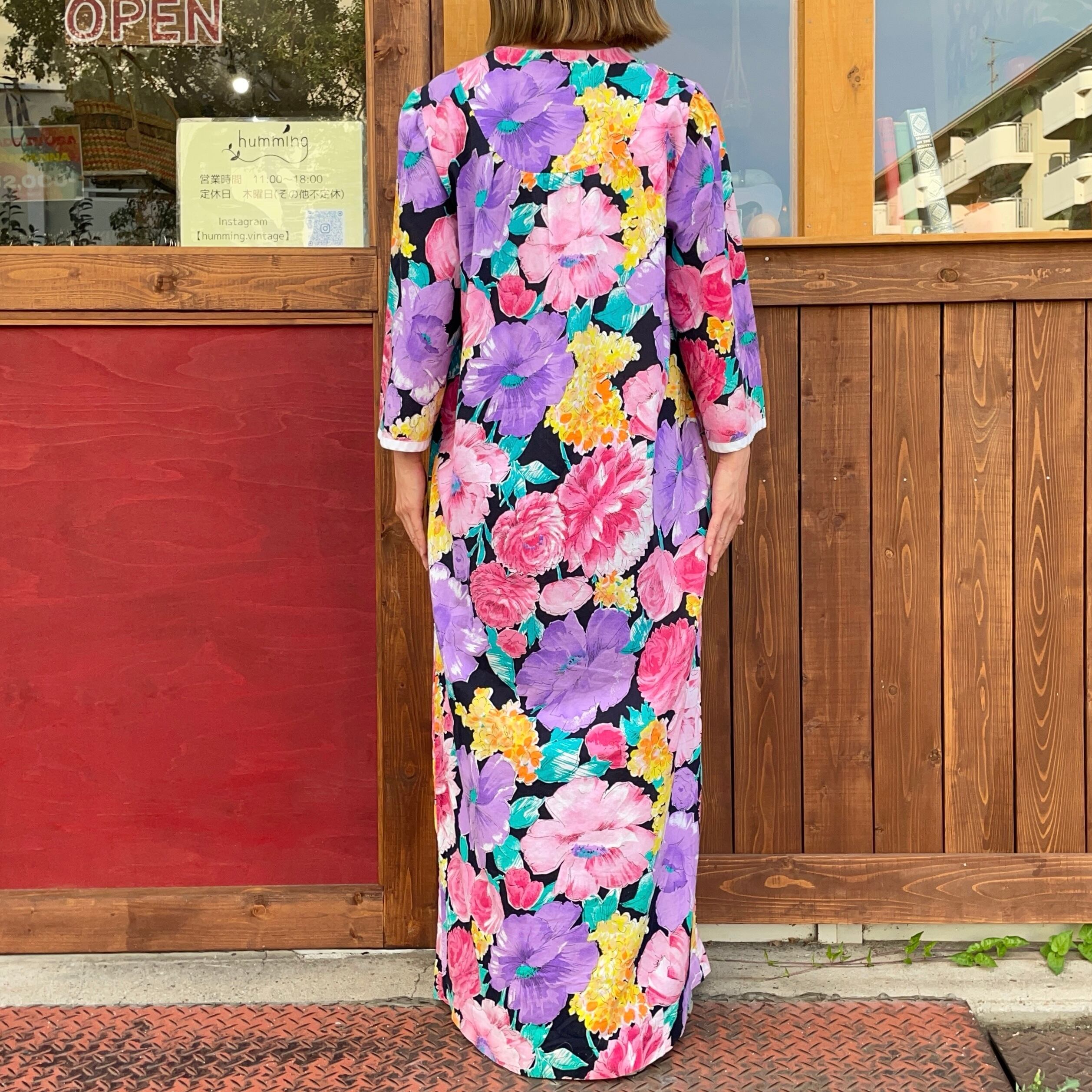 大ぶりなお花の柄が華やかで目を惹く1着です。