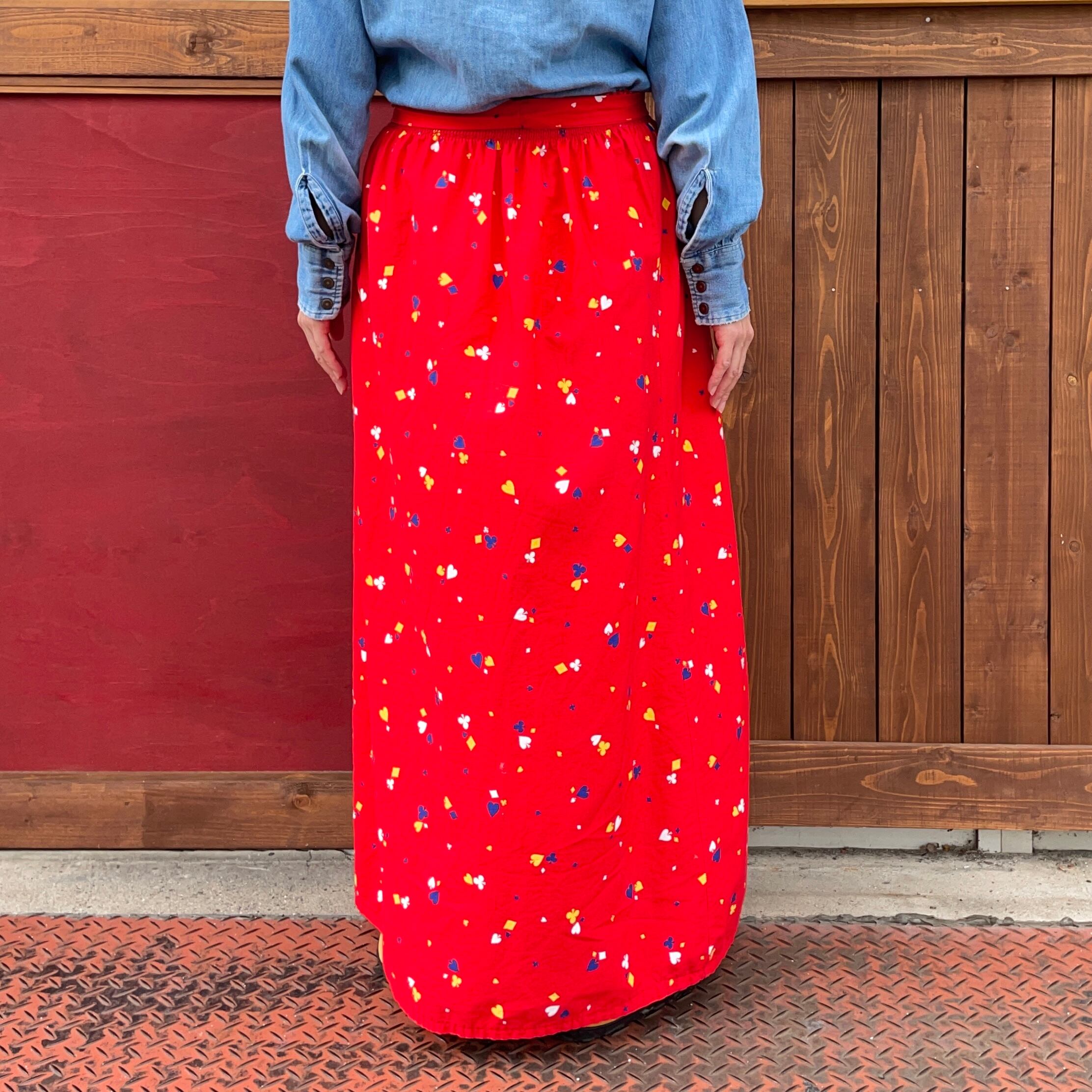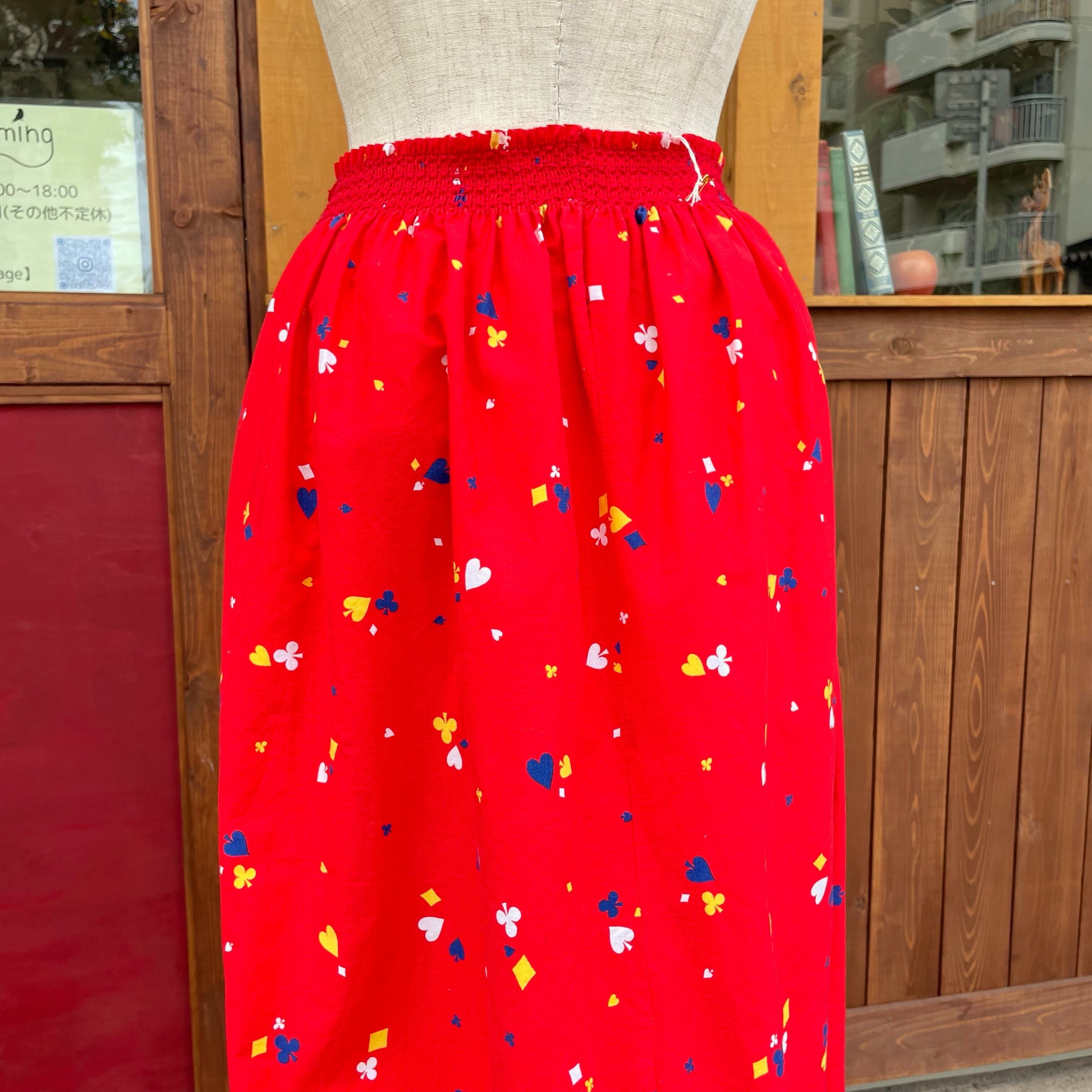 真っ赤なベースに青白黄色のモチーフが散りばめられているのがとってもかわいいですよ。