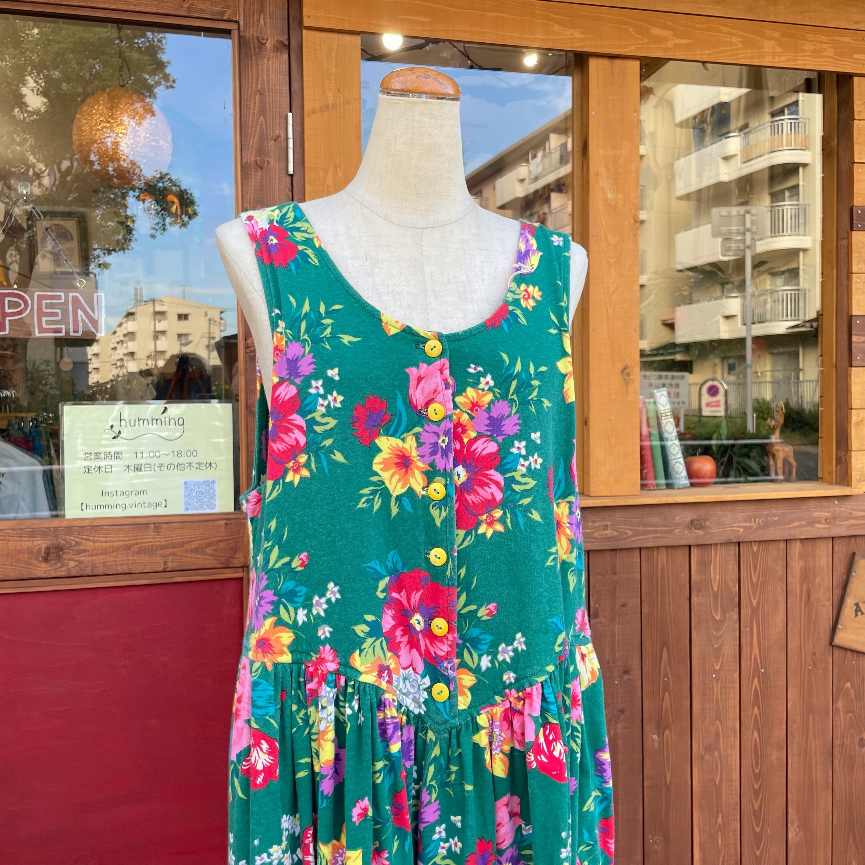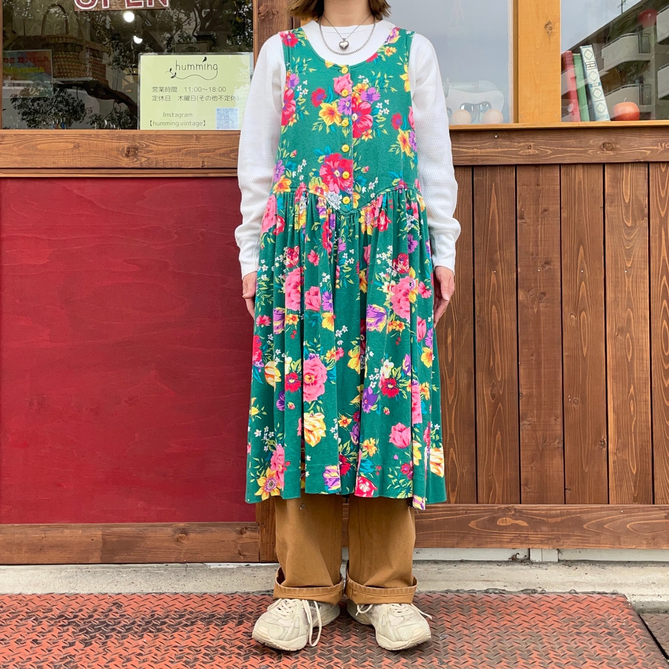 クタッと柔らかい薄手のスウェット生地の様な質感の花柄ワンピースです。