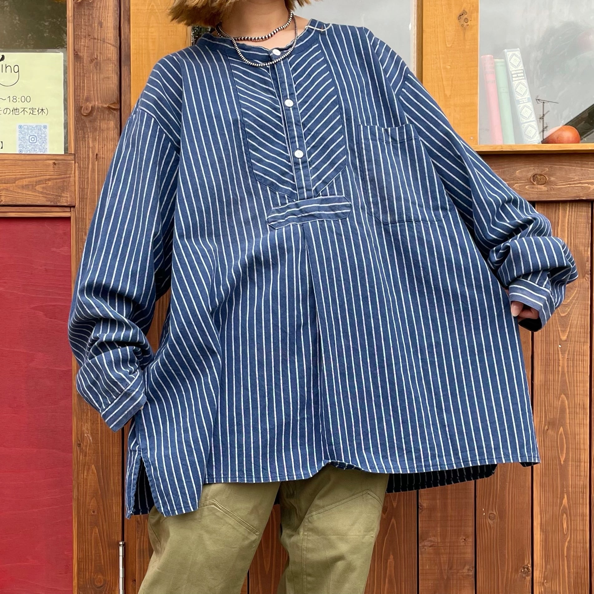 インディゴカラーのクールなフィッシャーマンシャツです。