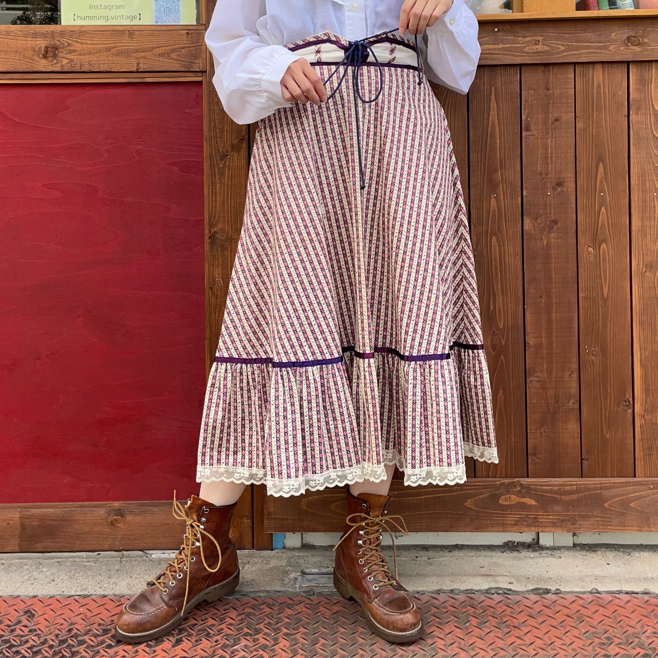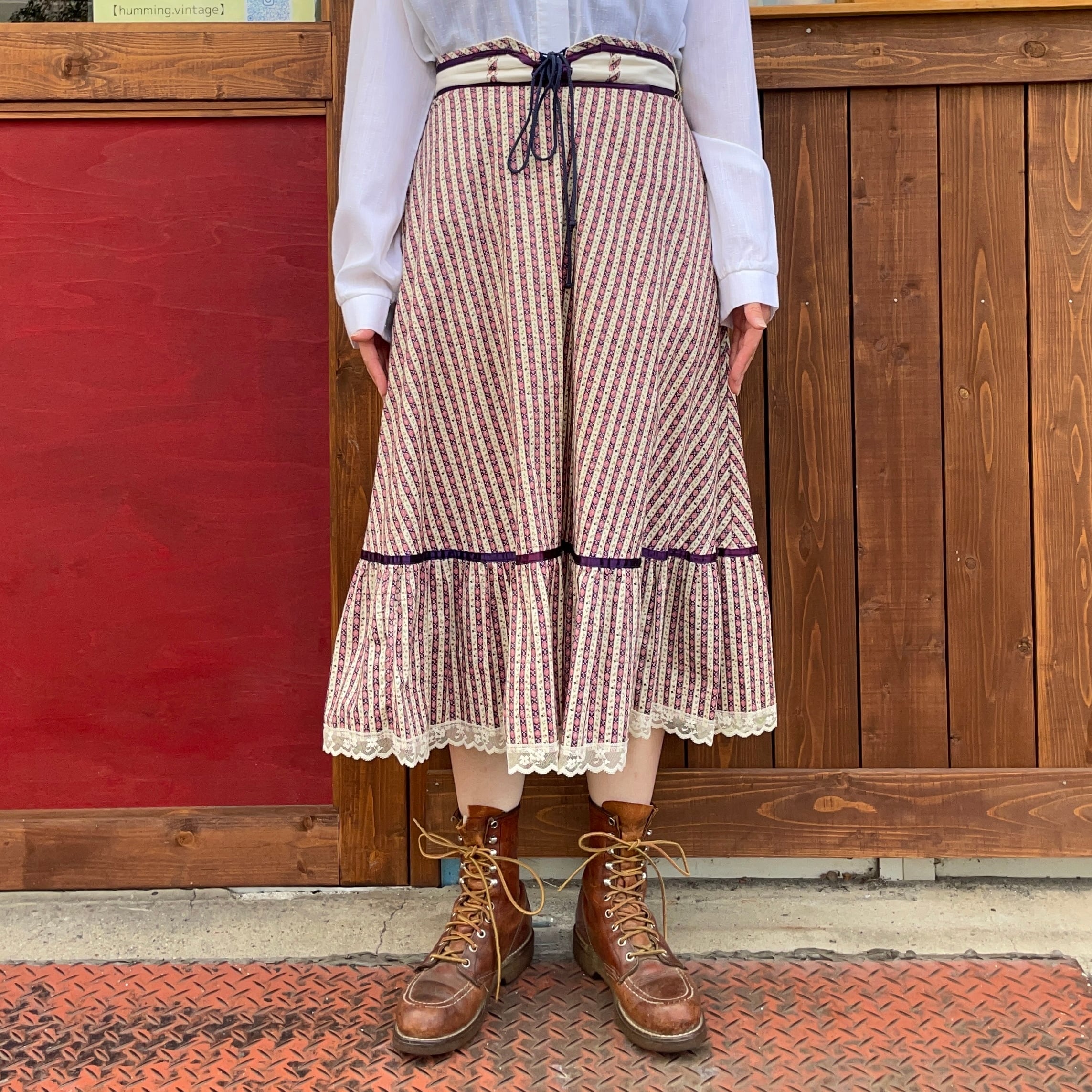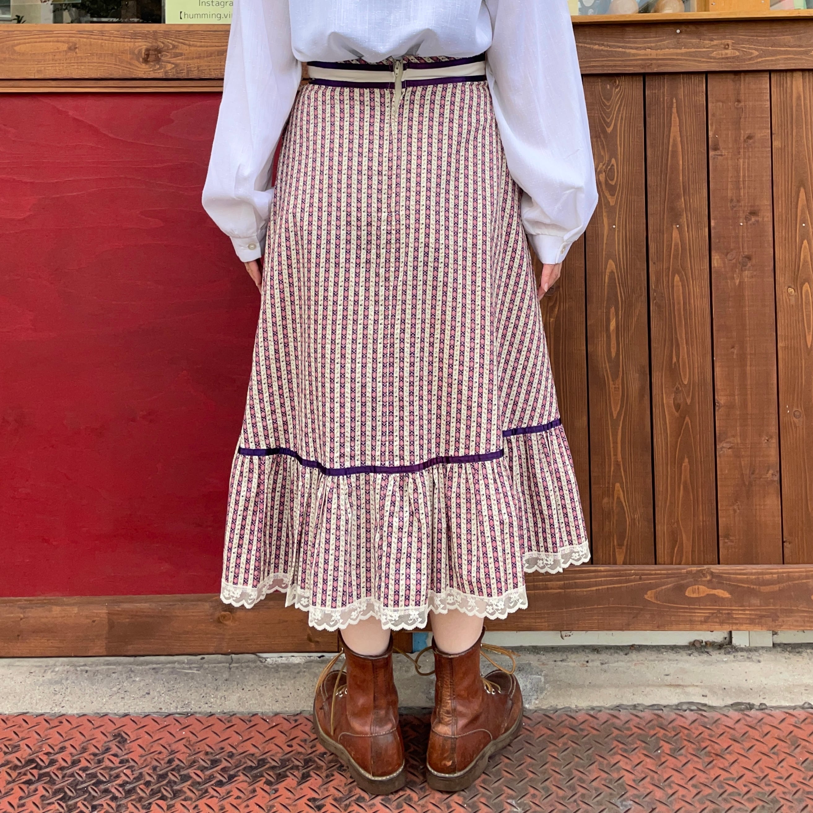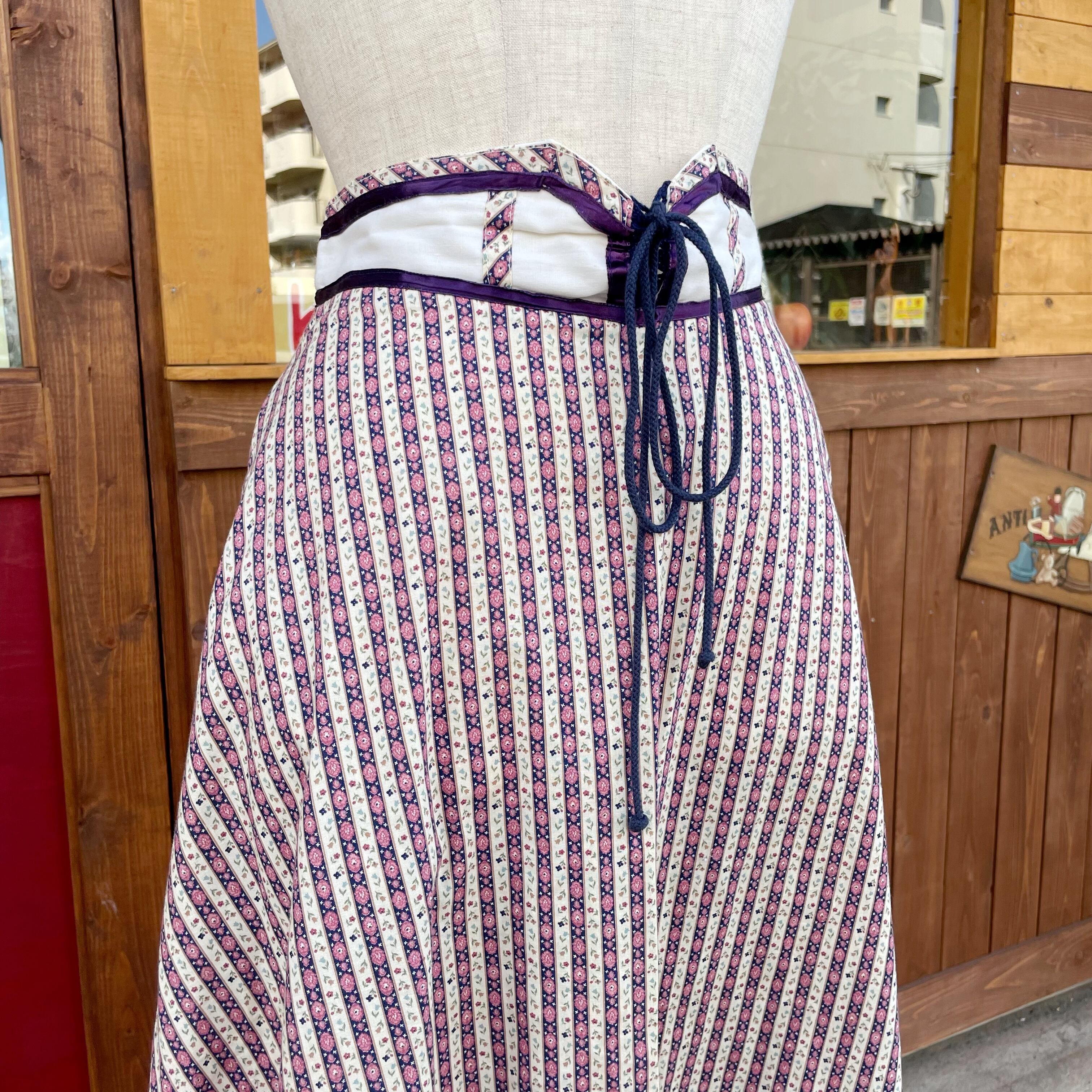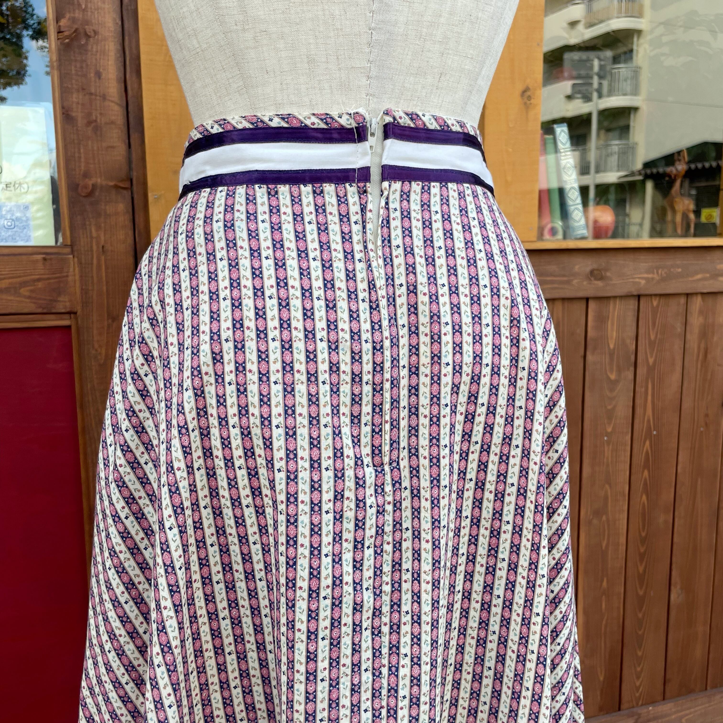 70'sのお花柄ストライプのフレアスカートです。