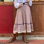 70's flower stripe flare skirt