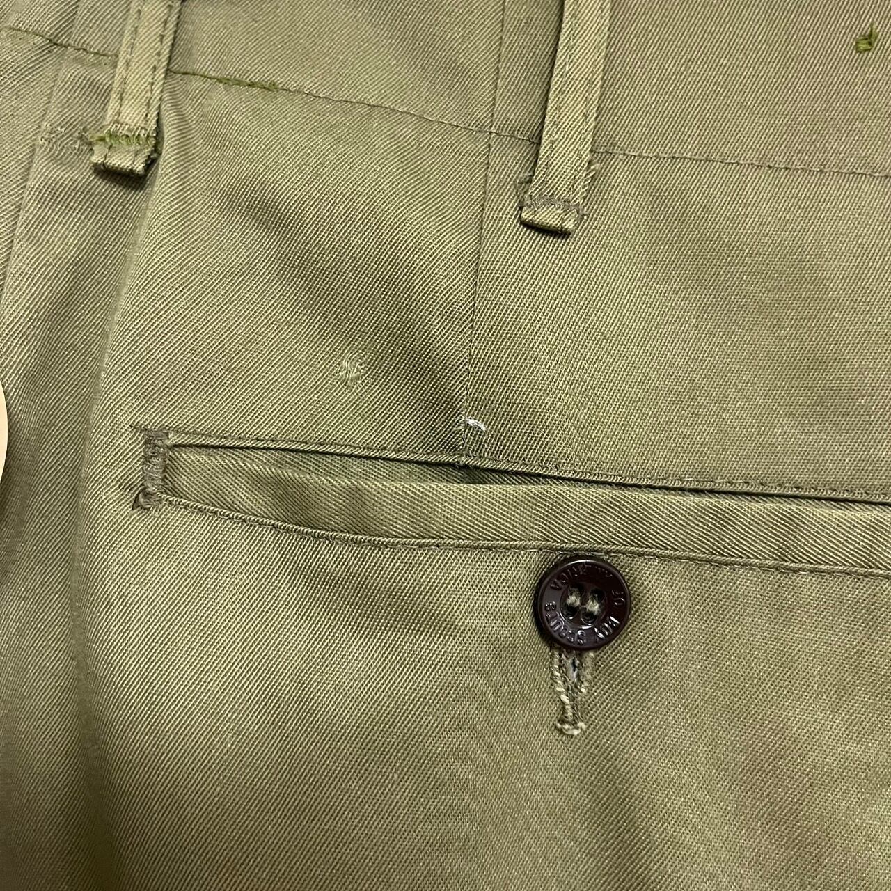 綺麗なテーパードシルエットが魅力的で、ミリタリーのカーキよりも柔らかい色味がポイント。