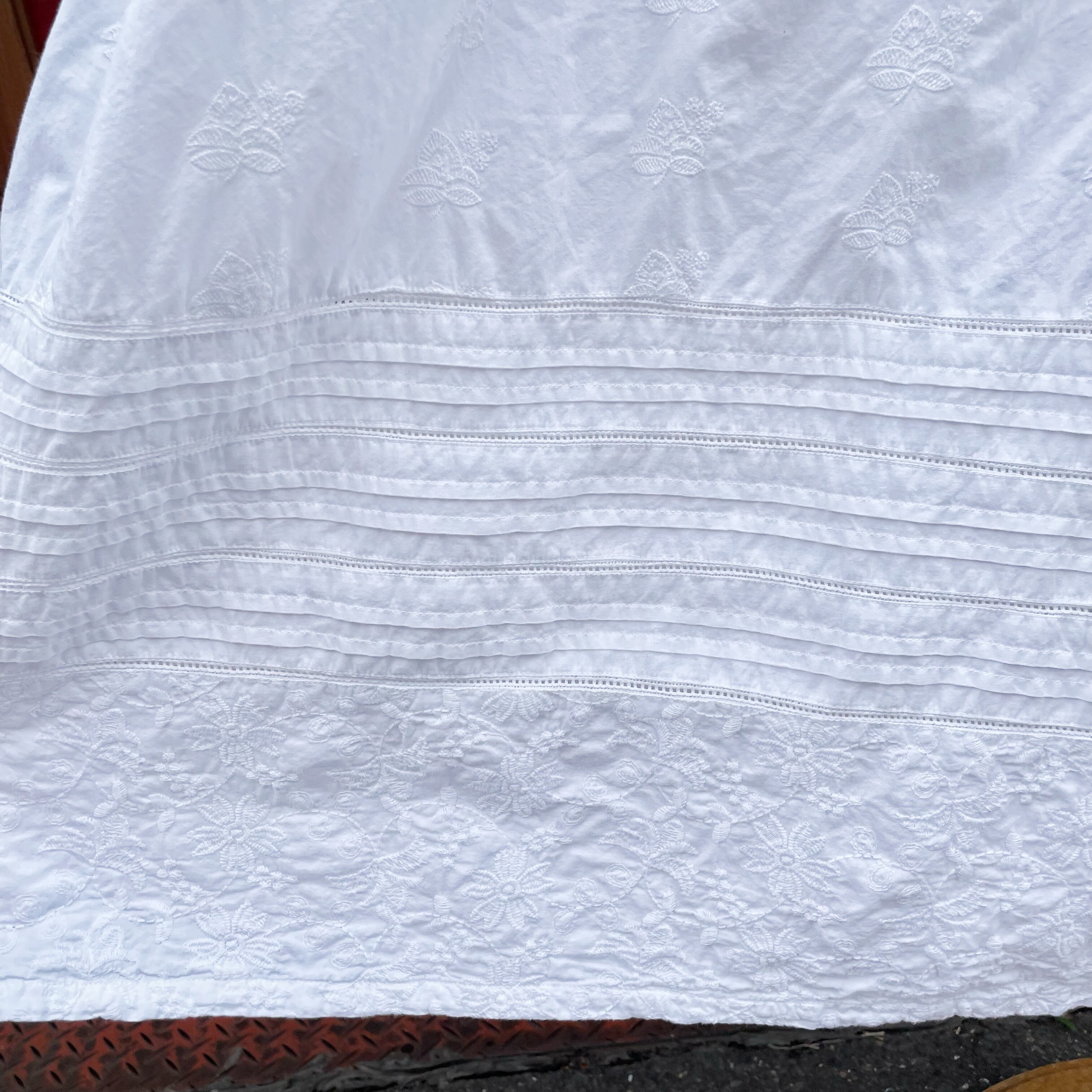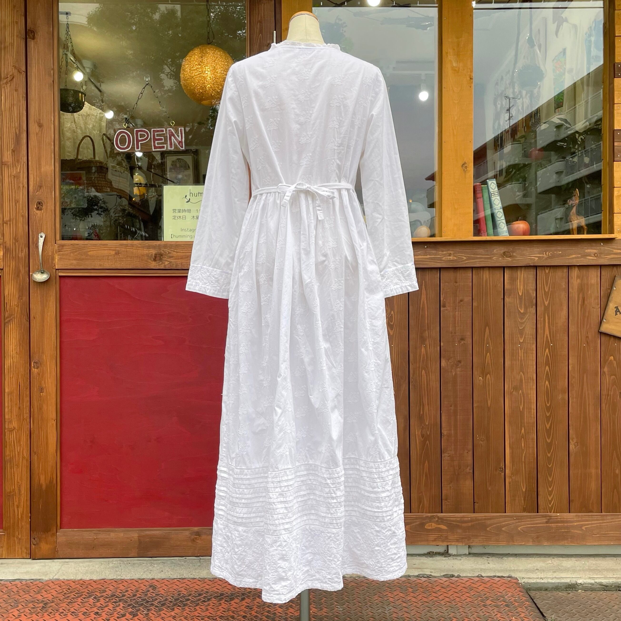 全体に刺繍がたっぷりと入ったホワイトワンピースです。