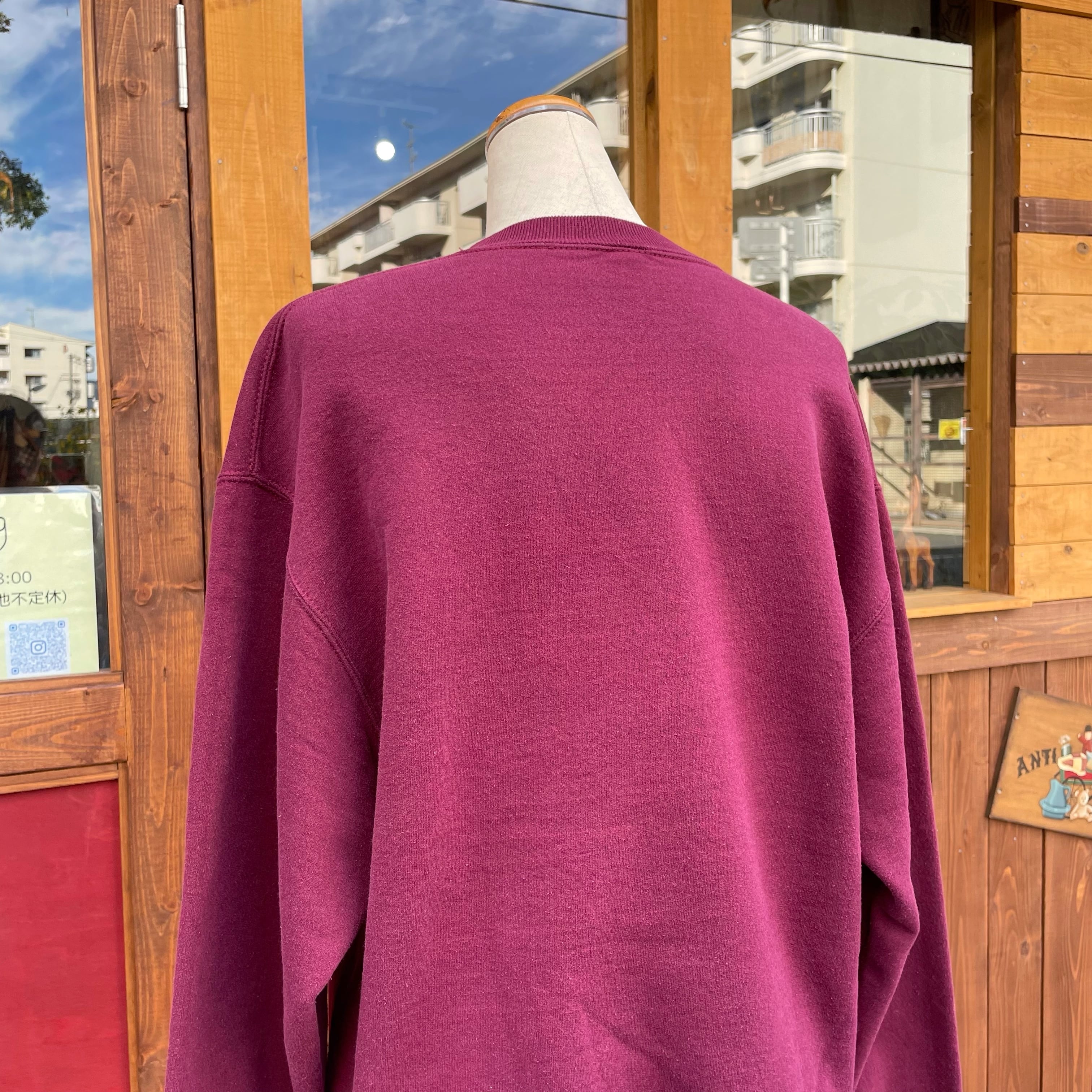 ガシッと肉厚なボディにゆったりシルエット。古着らしさたっぷりなエンジカラーで秋冬コーディネートが楽しくなる1着です。