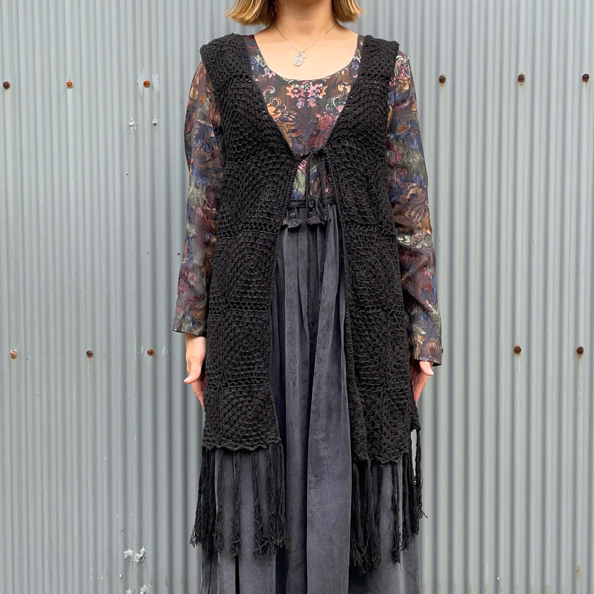 裾が長めのフリンジになっていて重ねた時にすらっと綺麗なシルエットに見せてくれます。