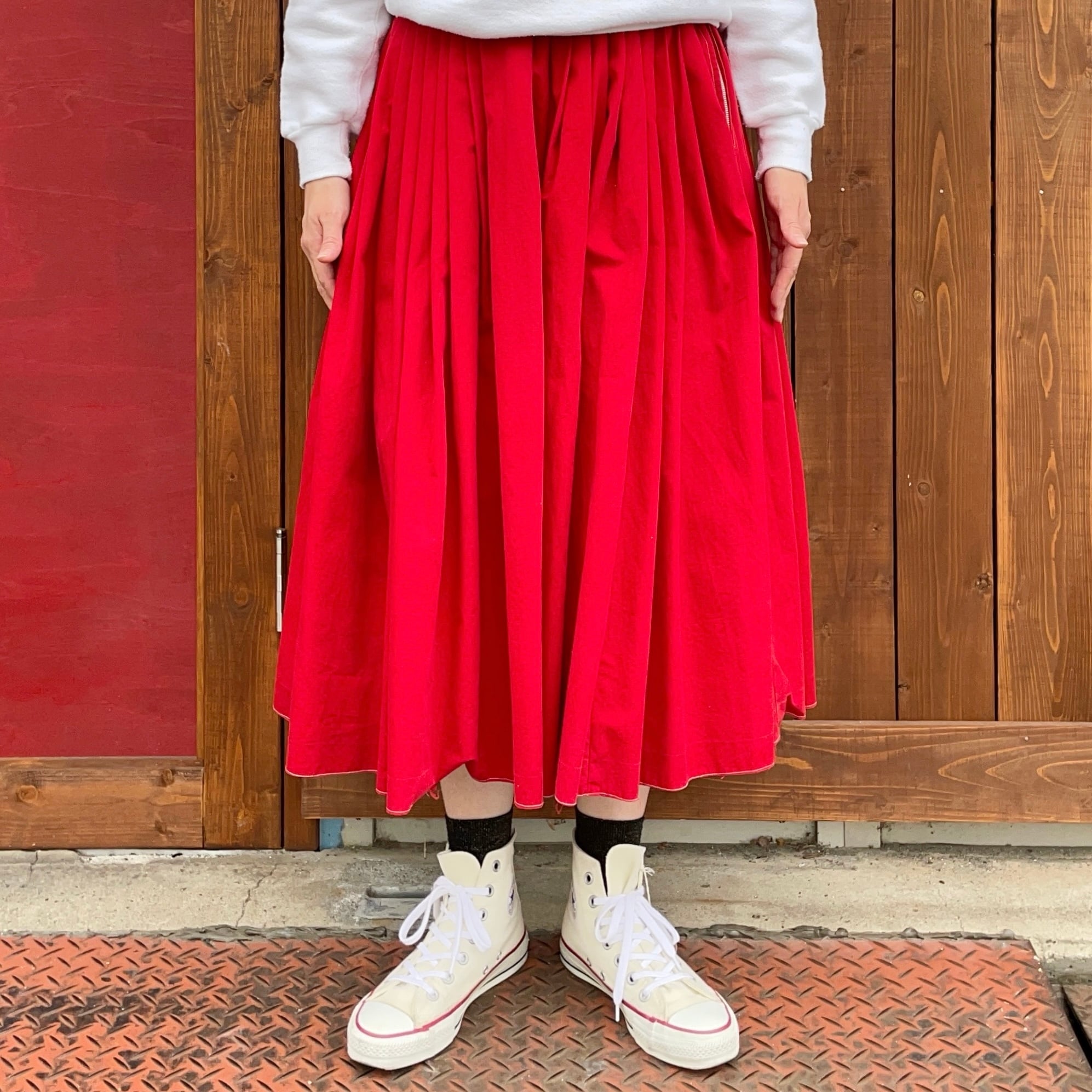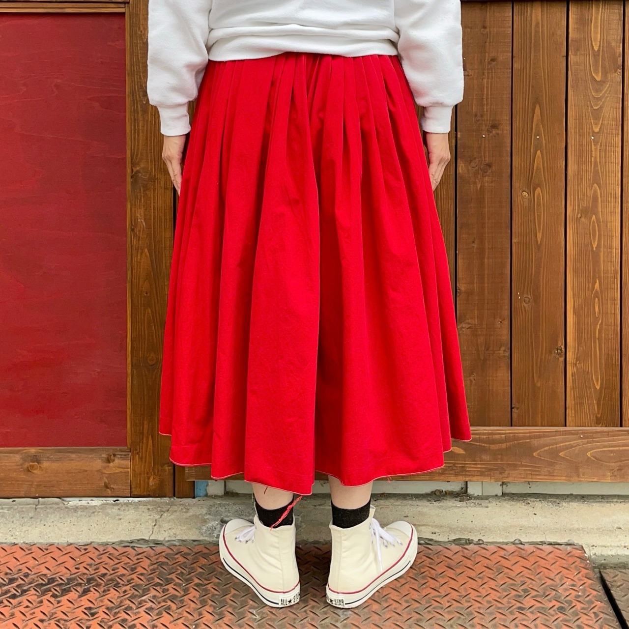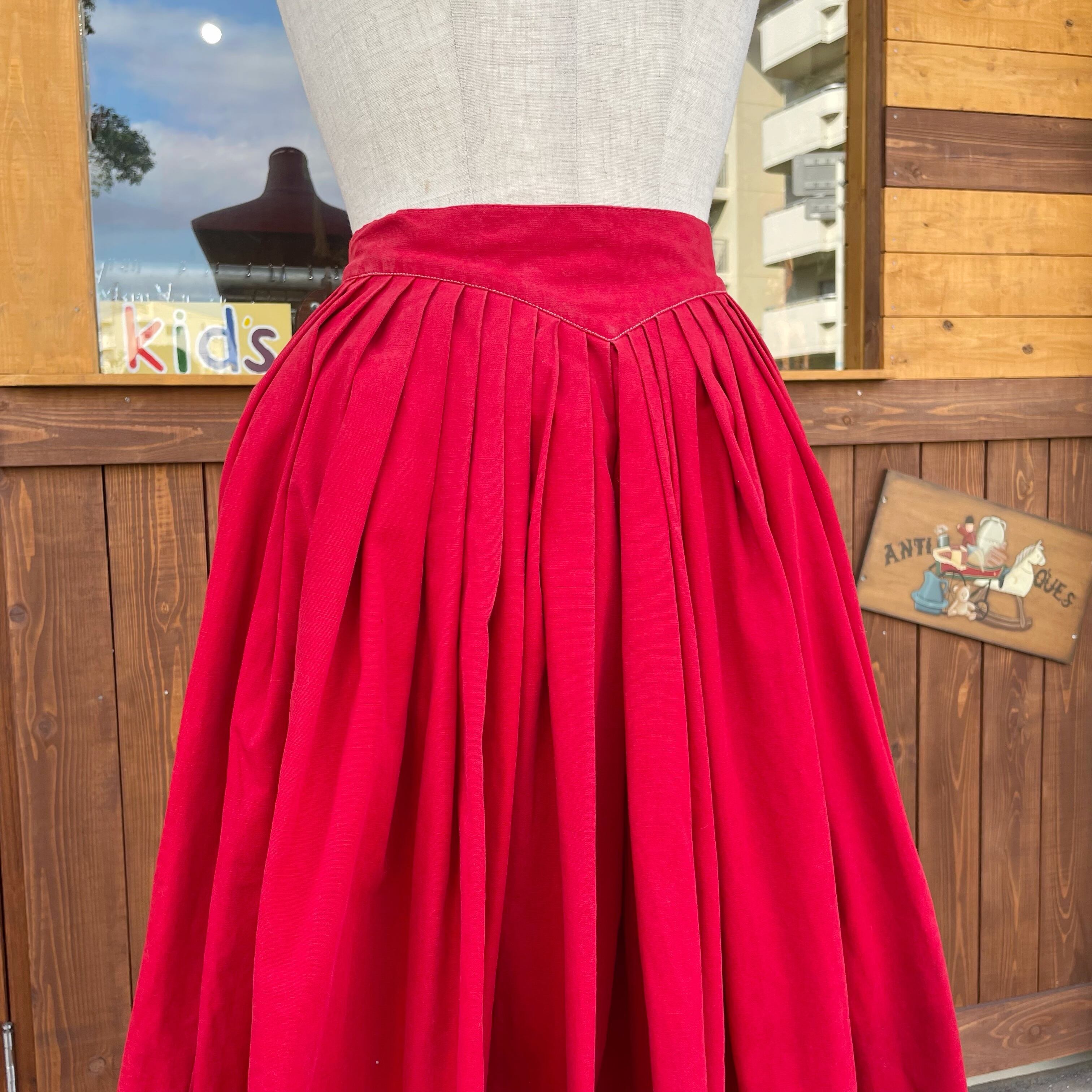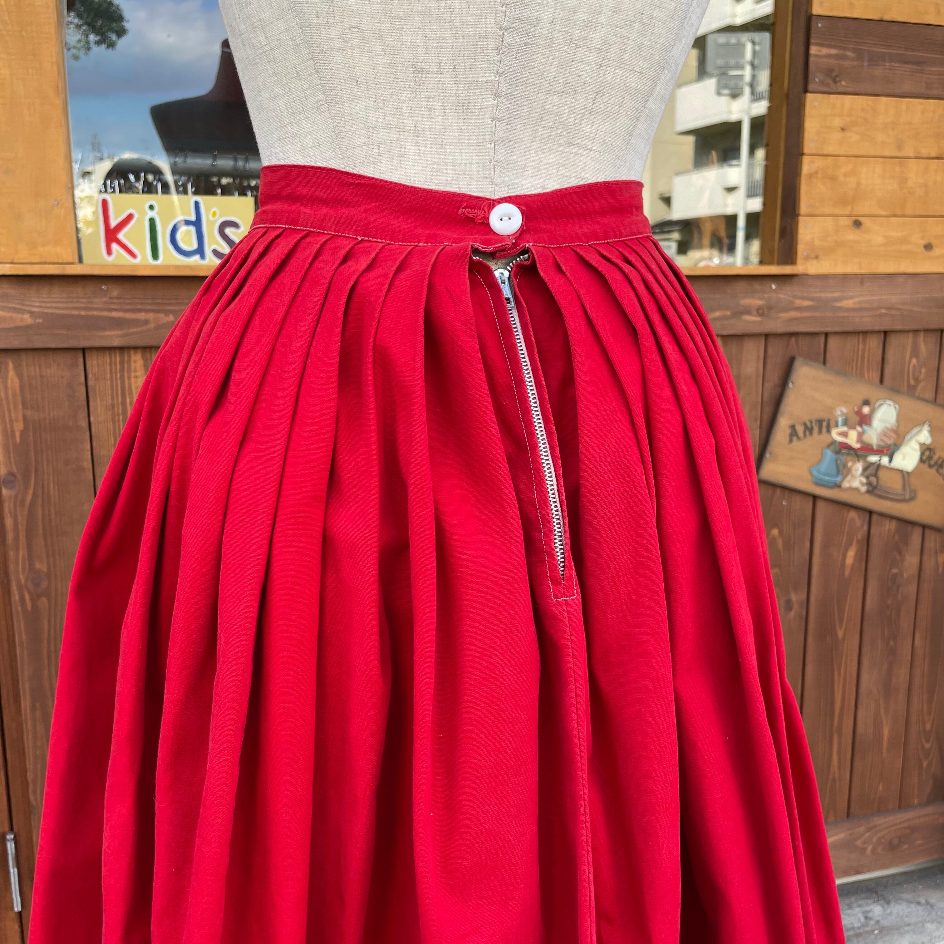 この年代のスカートでは珍しいガシッとしっかりとしたコットン生地で細かくプリーツの入るボリューミーなデザインになっています。