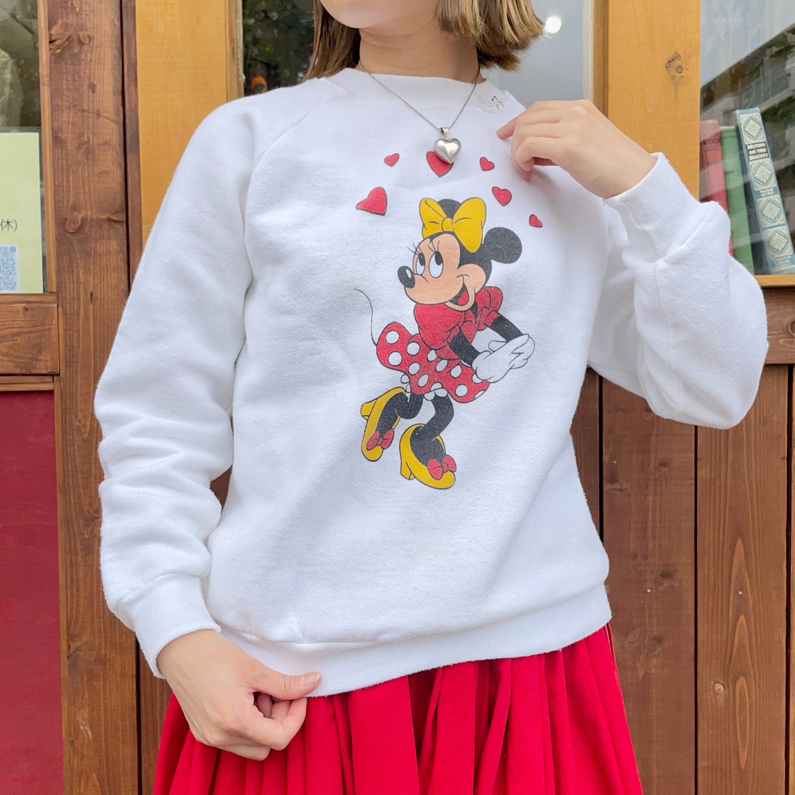 人気のミニーちゃんの周りにハートが飛んでいるラブリーなプリントで着るだけでコーディネートが可愛くなる1着です。