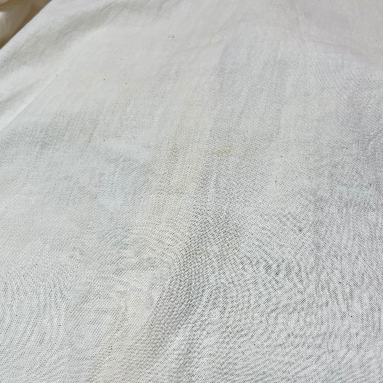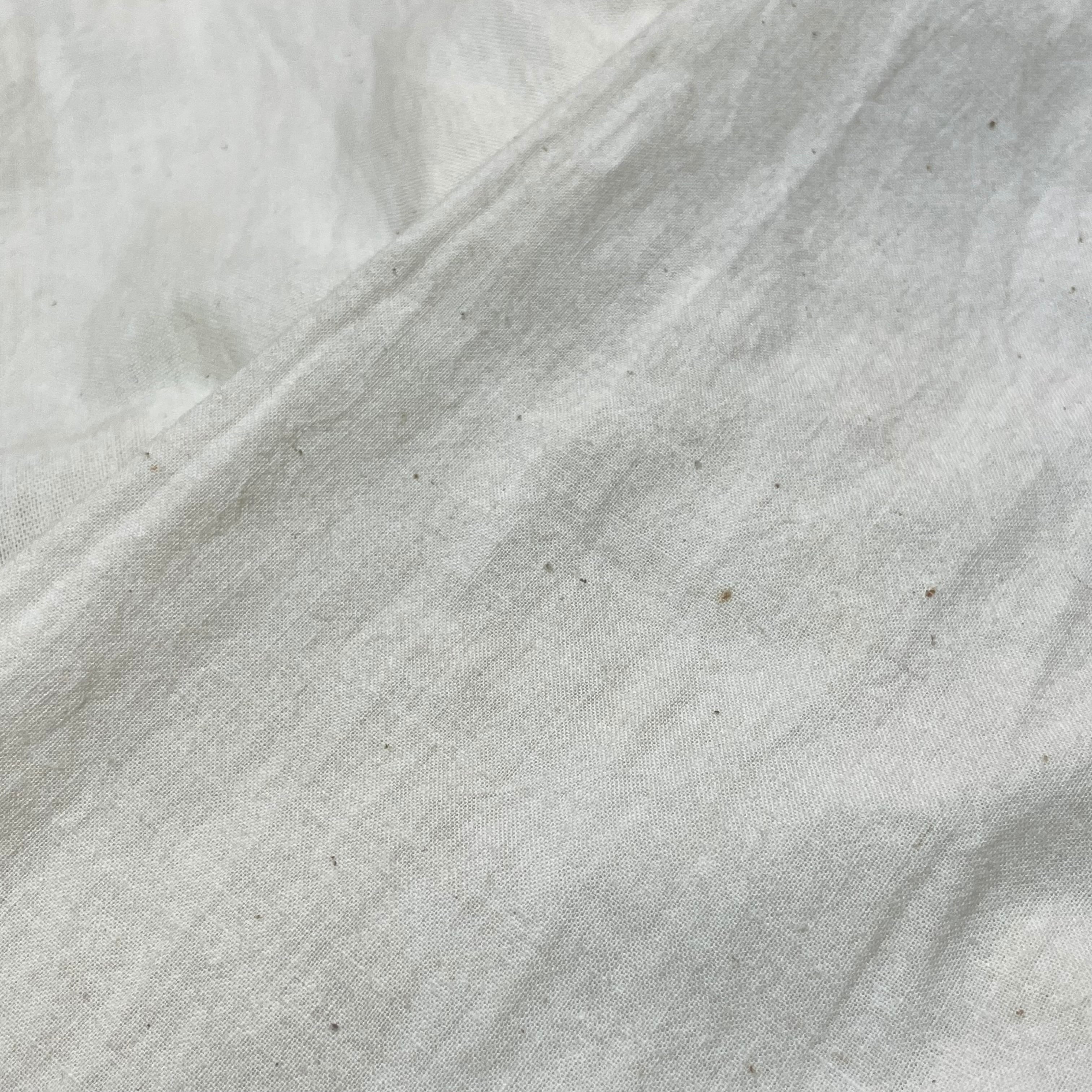 古いコットンやリネン生地によくあるのですが生地を作る際に混ざったヘンプ等のかけらが点々と見えます。