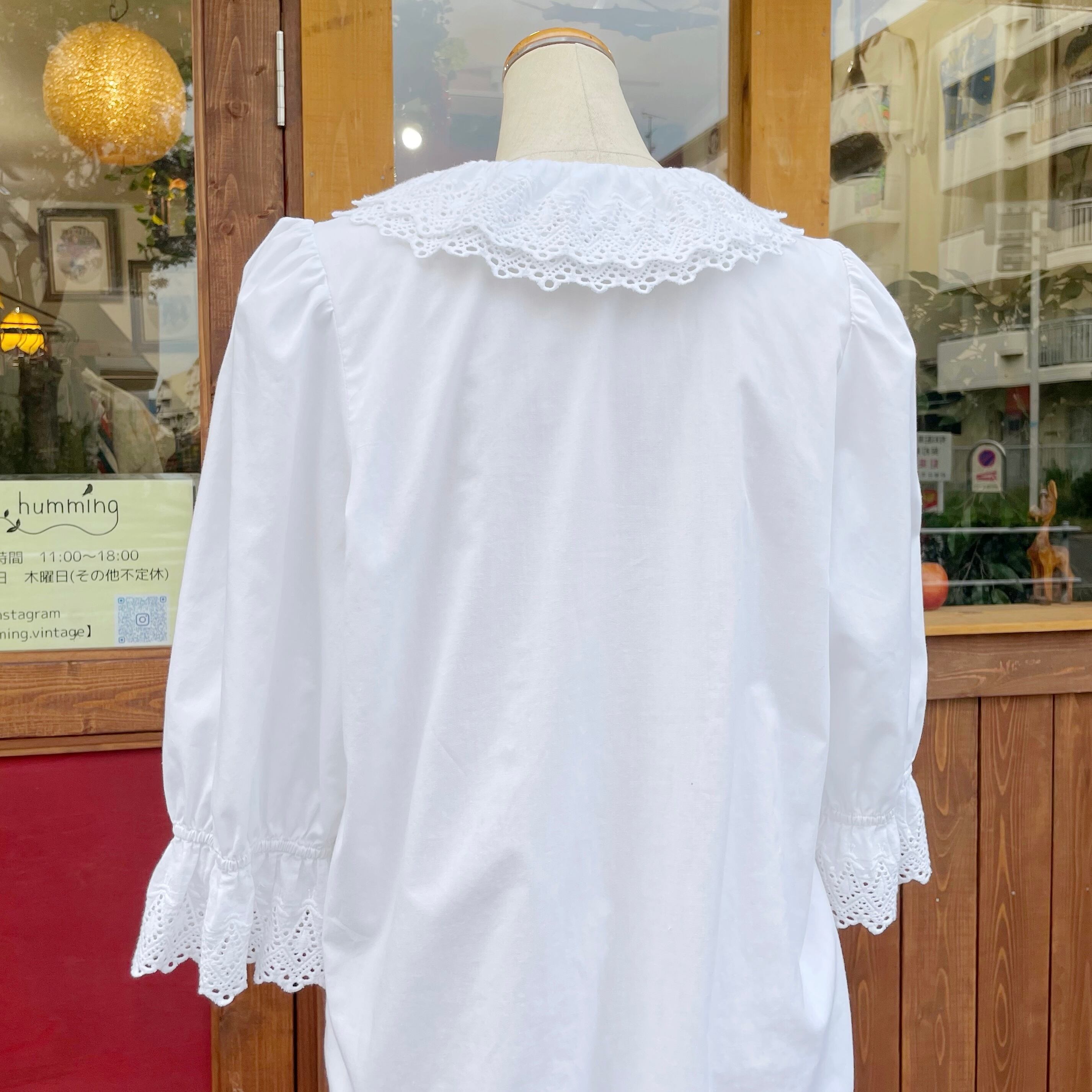カットワークレースの2枚襟になっているので立体感がありよりふわっとボリュームがある様に見えます。