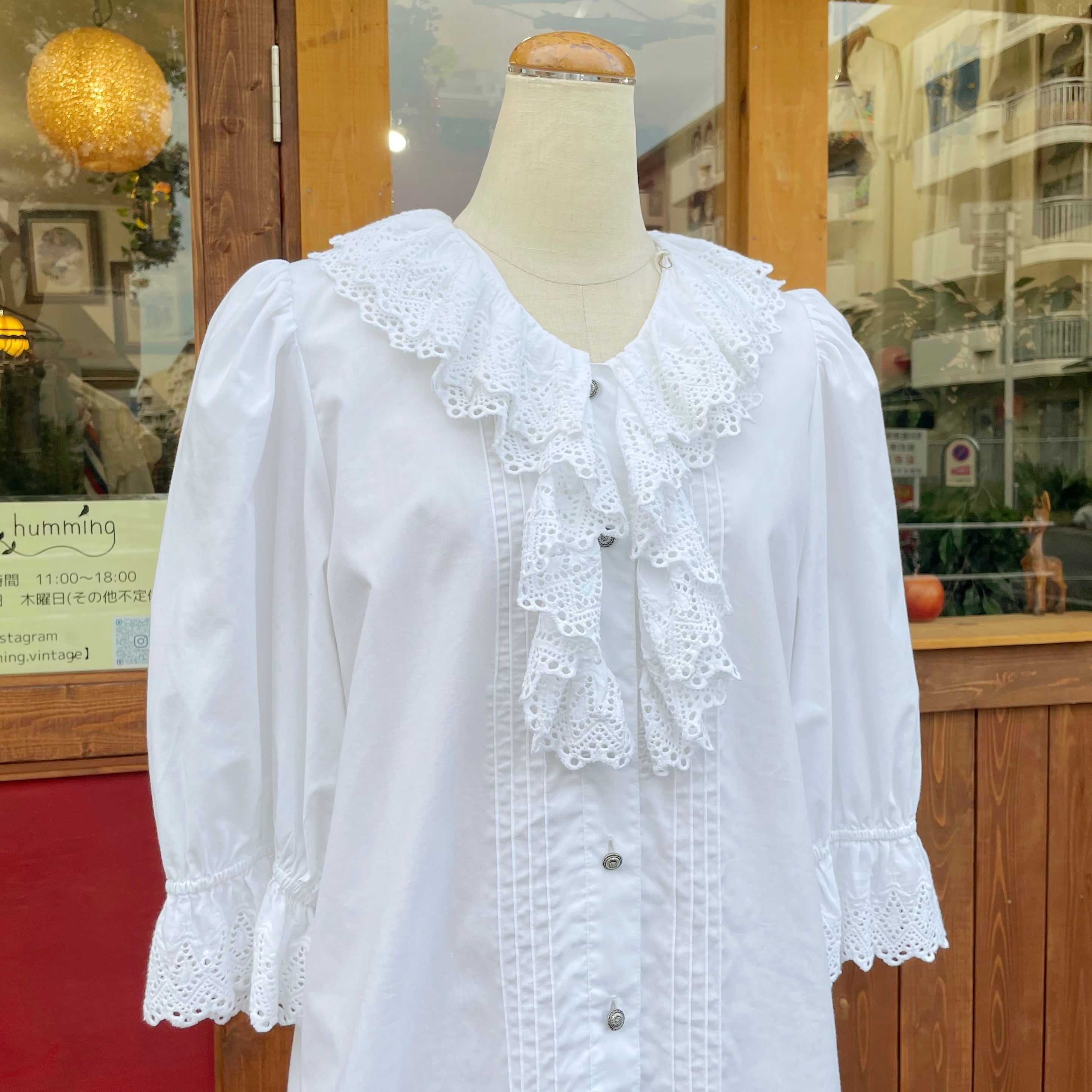 cutwork frill collar tyrol blouse