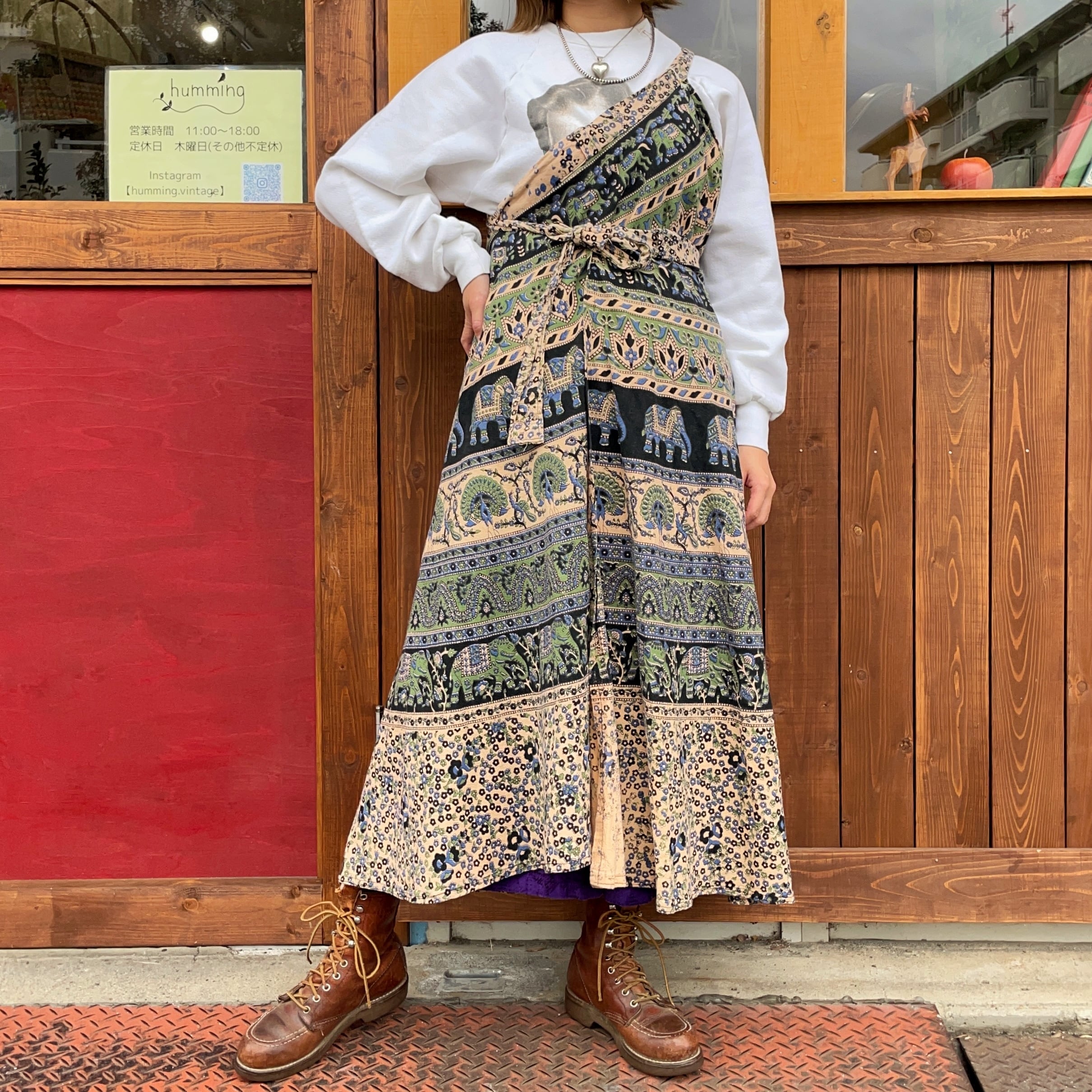 スカートですが巻き方を変えてワンピース風にするのもオススメ。