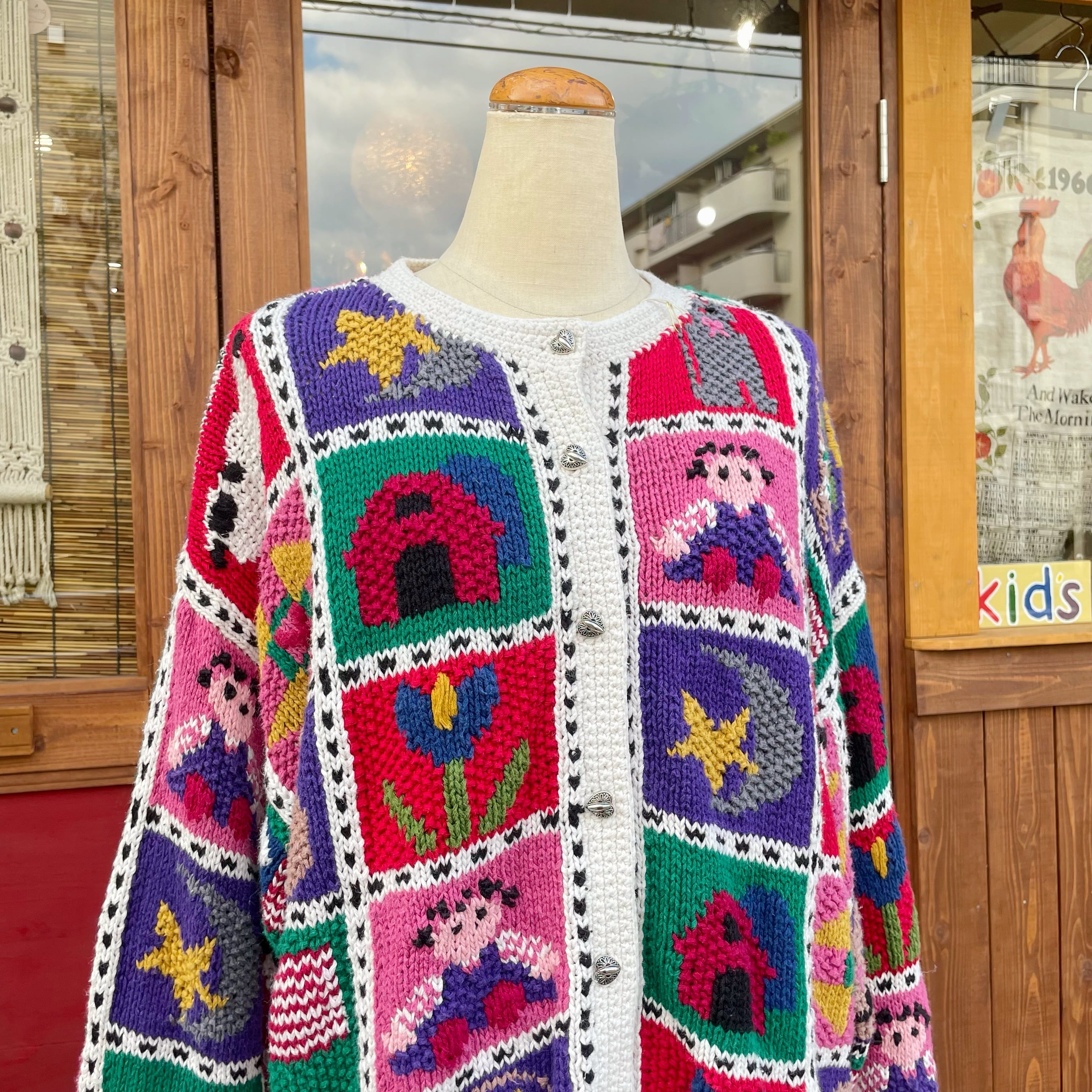 両面みっちりと模様の入ったカントリーデザインのコットンニットカーディガンです。