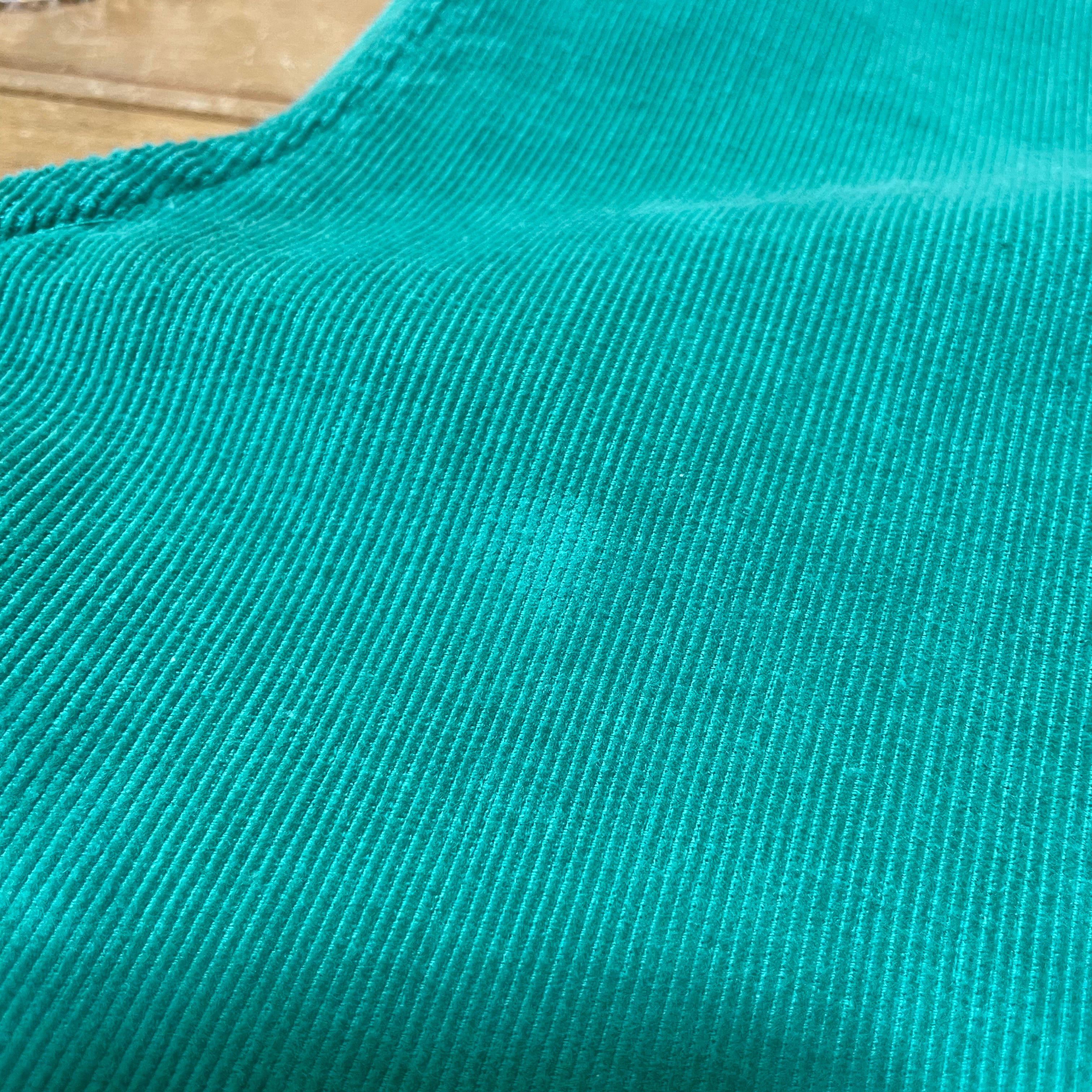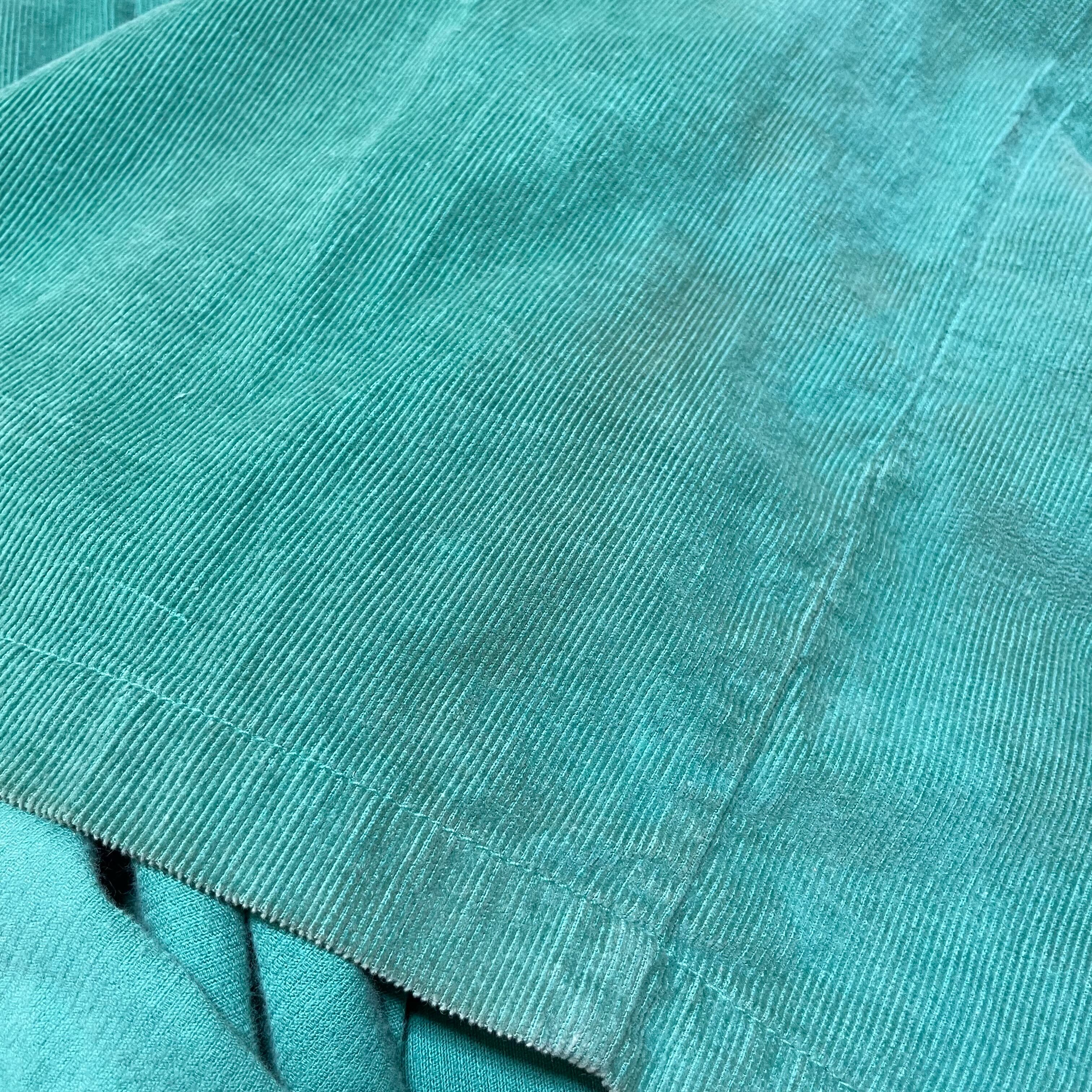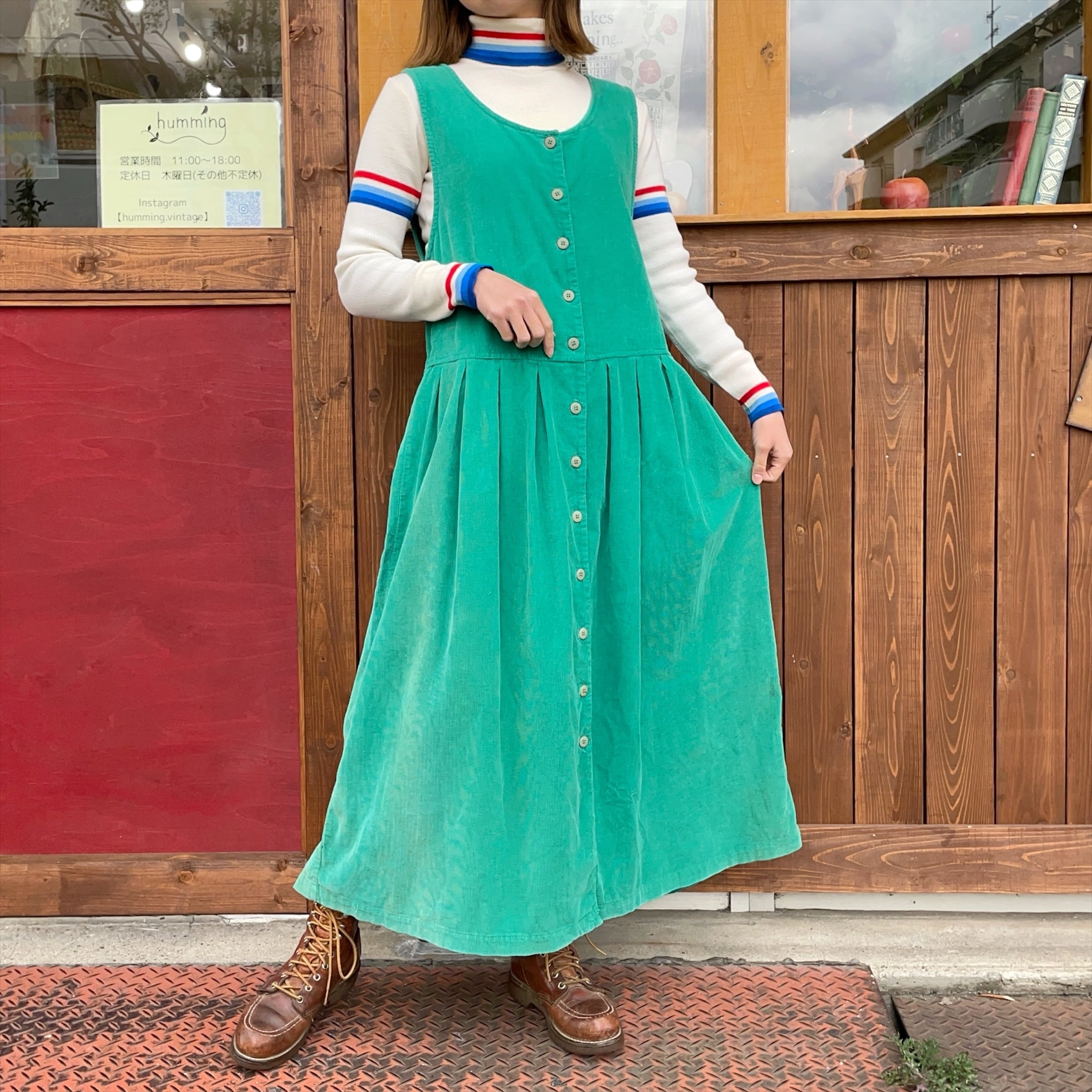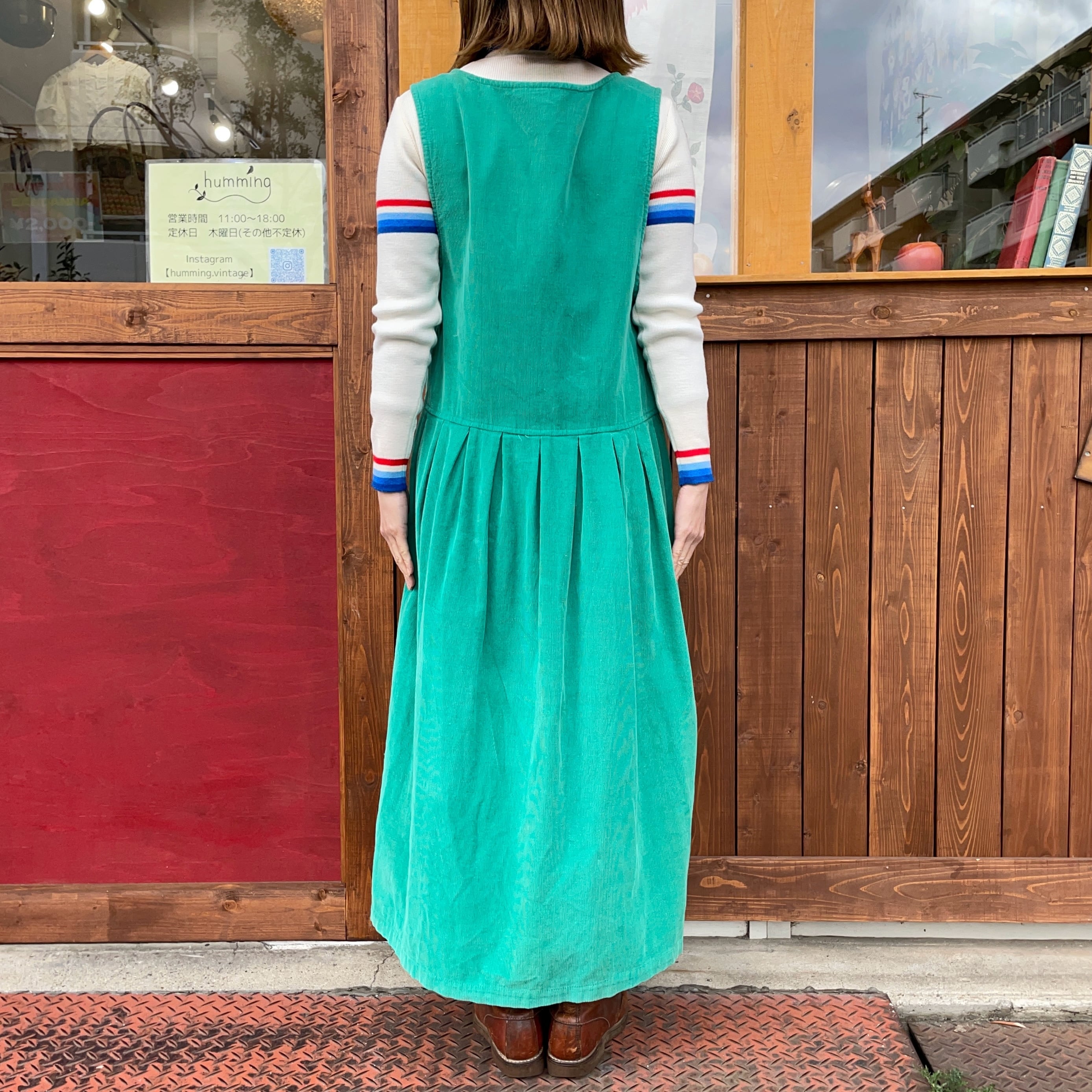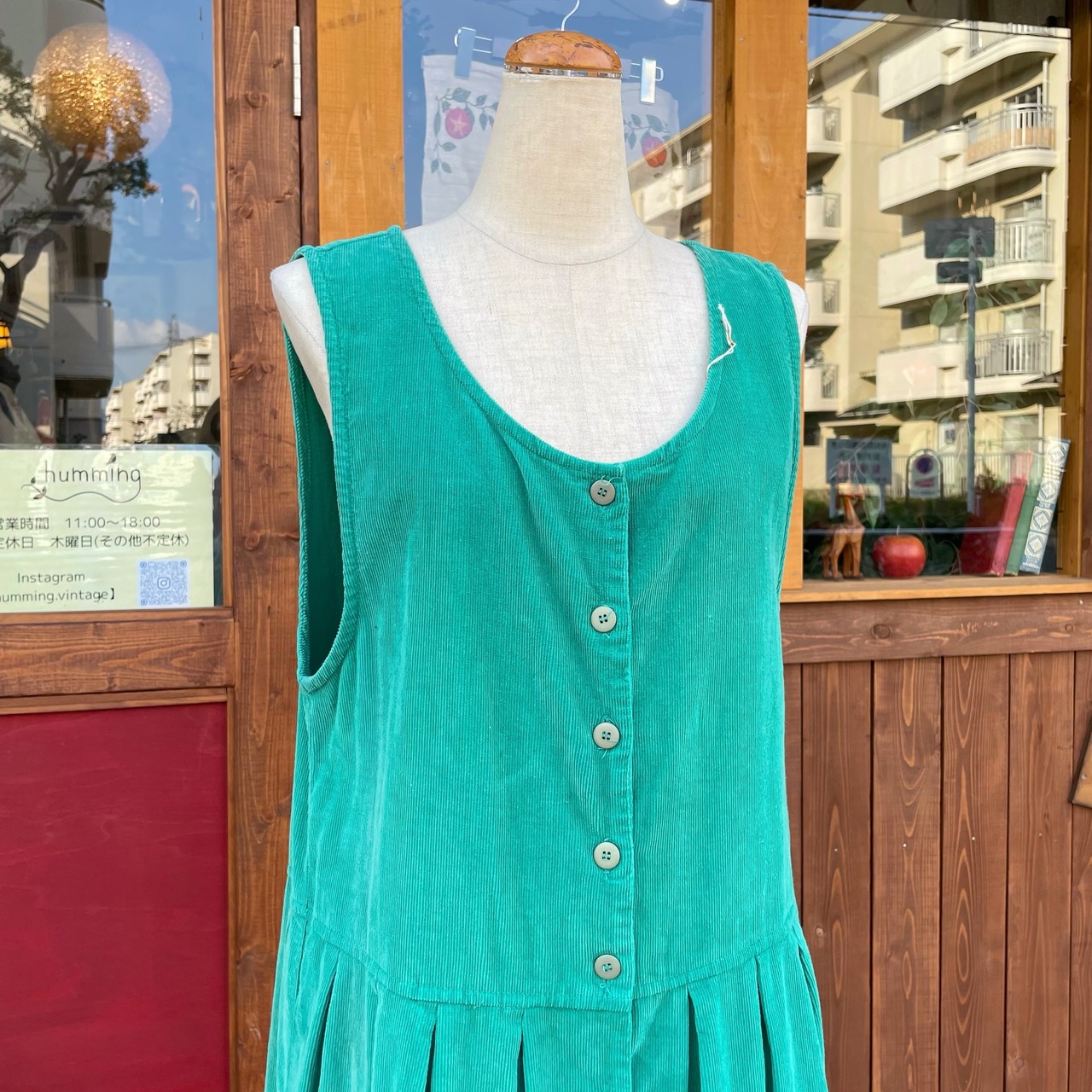 エメラルドグリーンカラーの珍しいコーデュロイワンピースです。