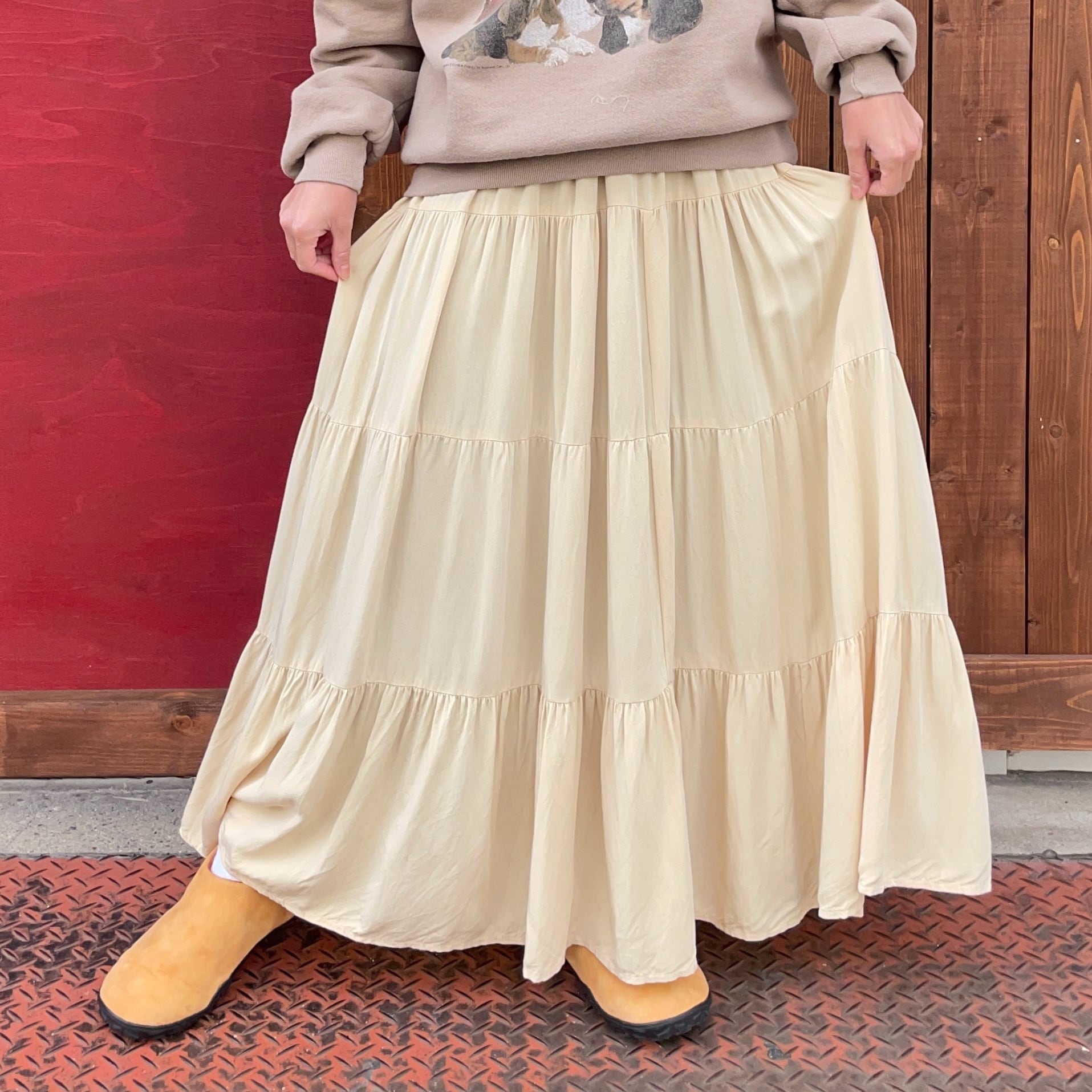 cream color tiered skirt