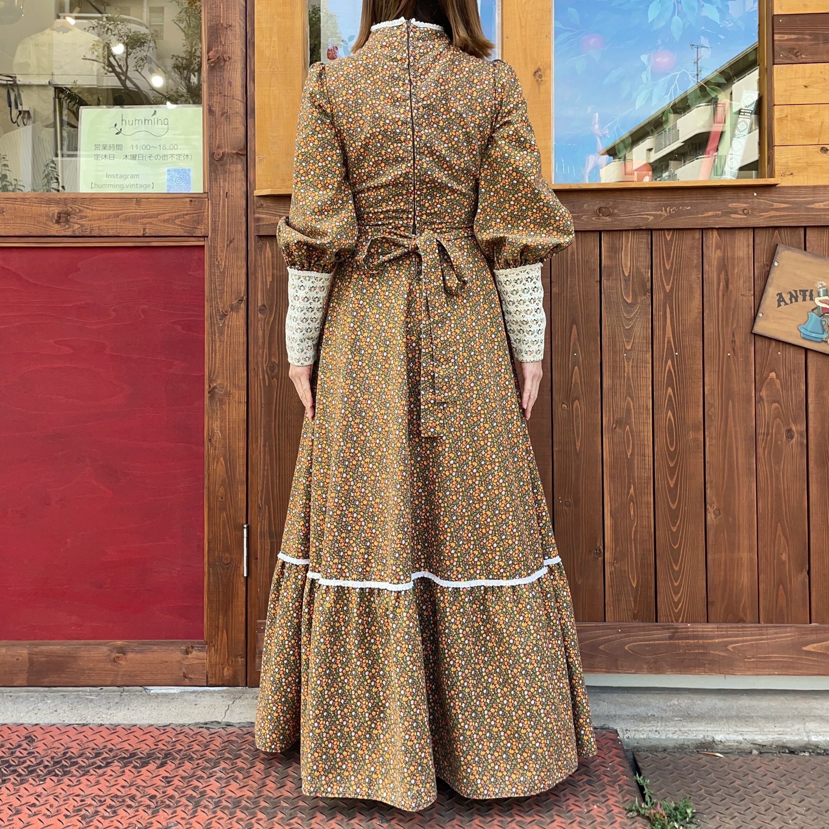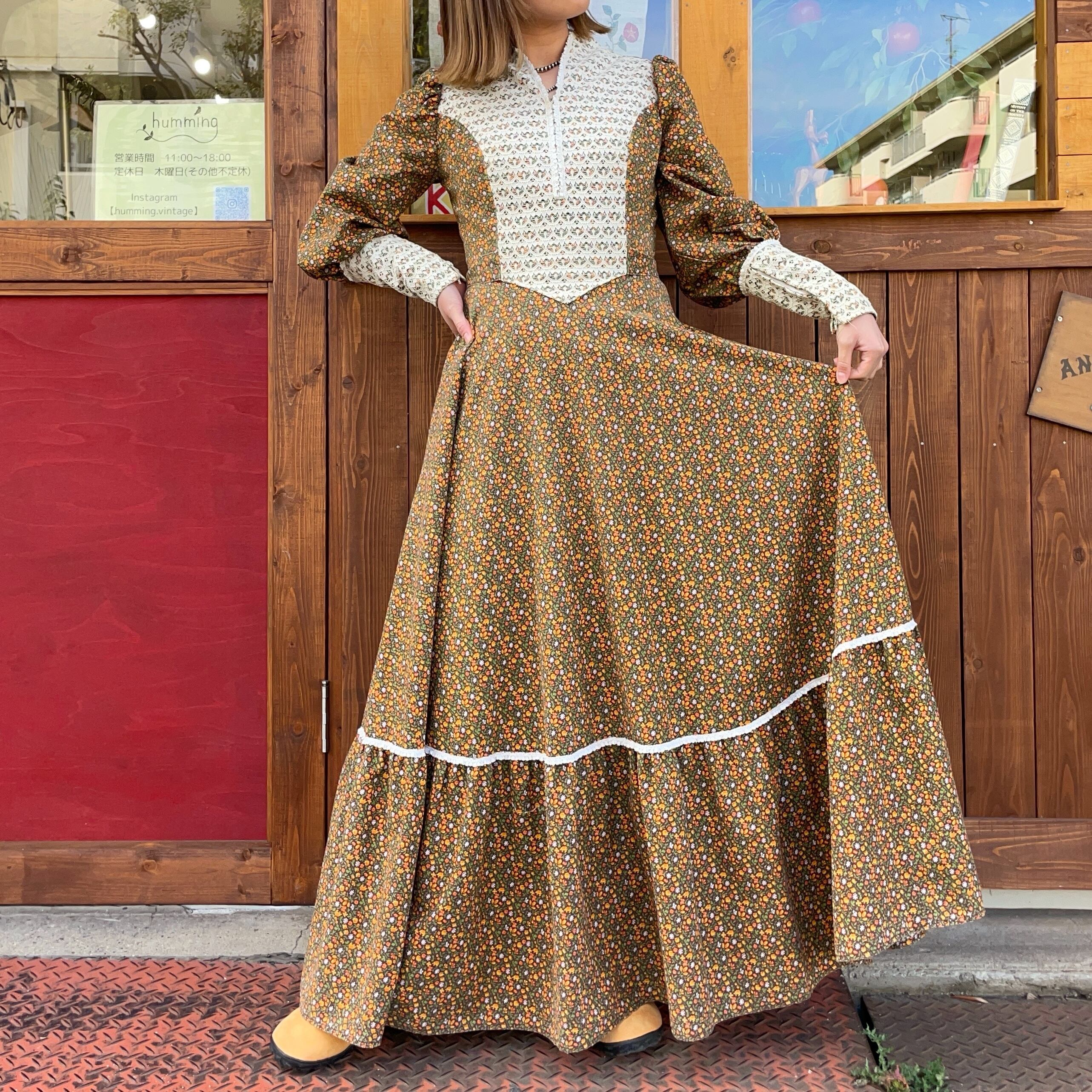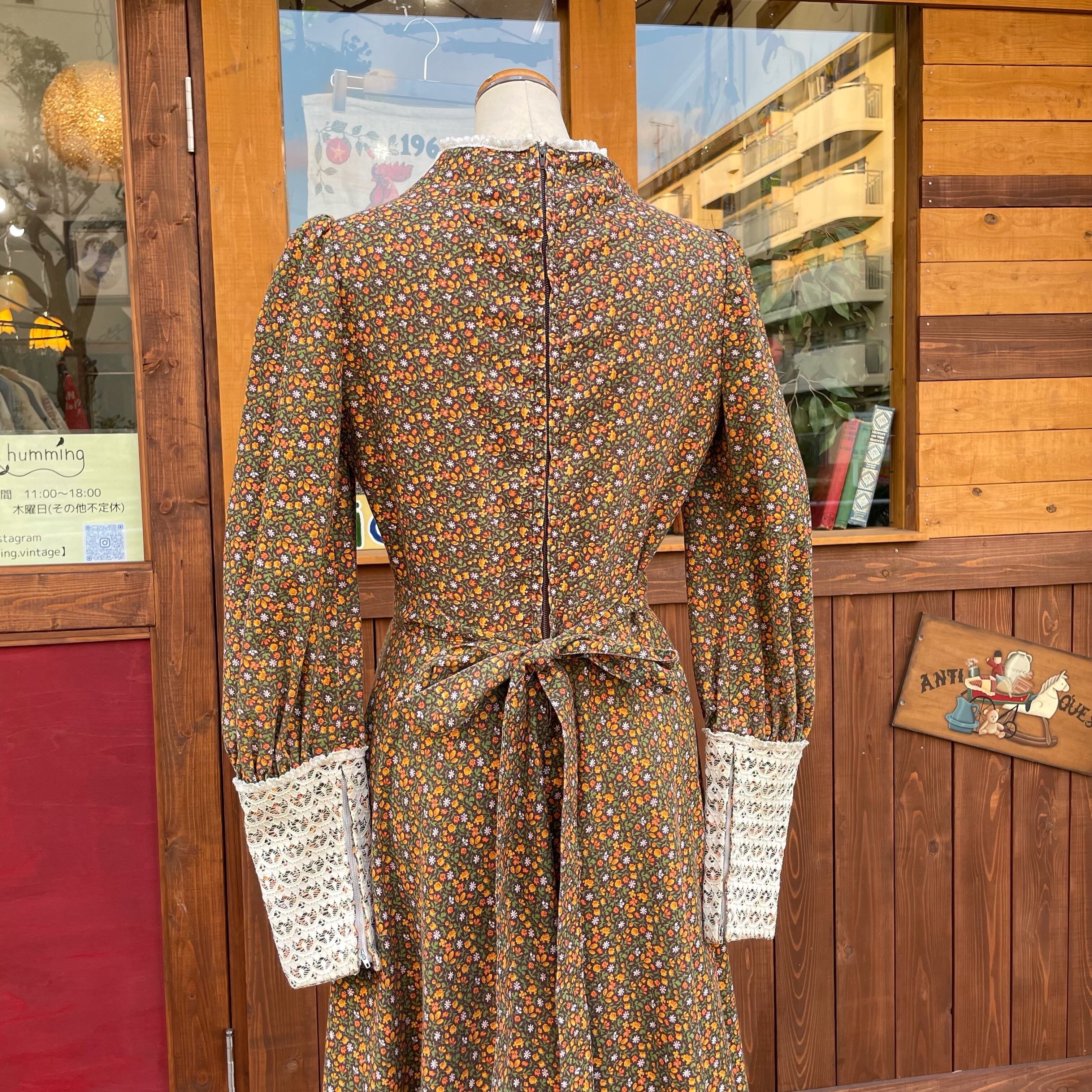 70'sのカントリーヒッピーな小花柄ワンピースです。
