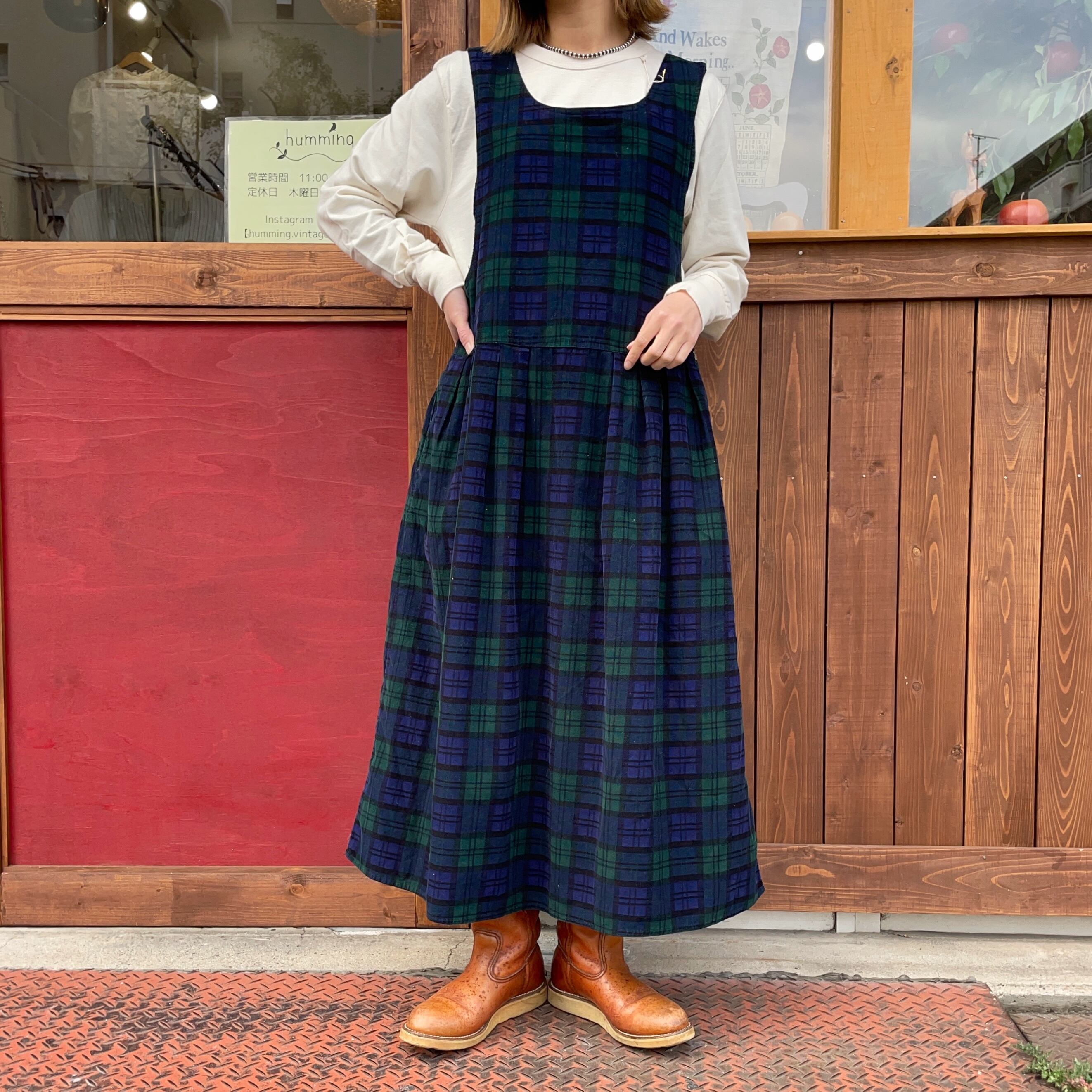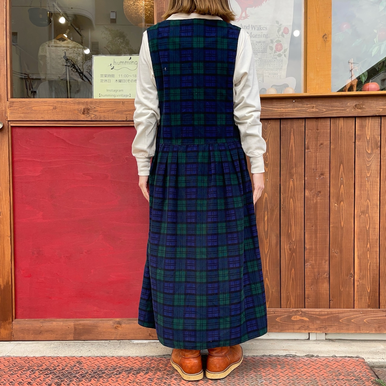 タータンチェックの中でも人気のブラックウォッチのコーデュロイワンピースです。