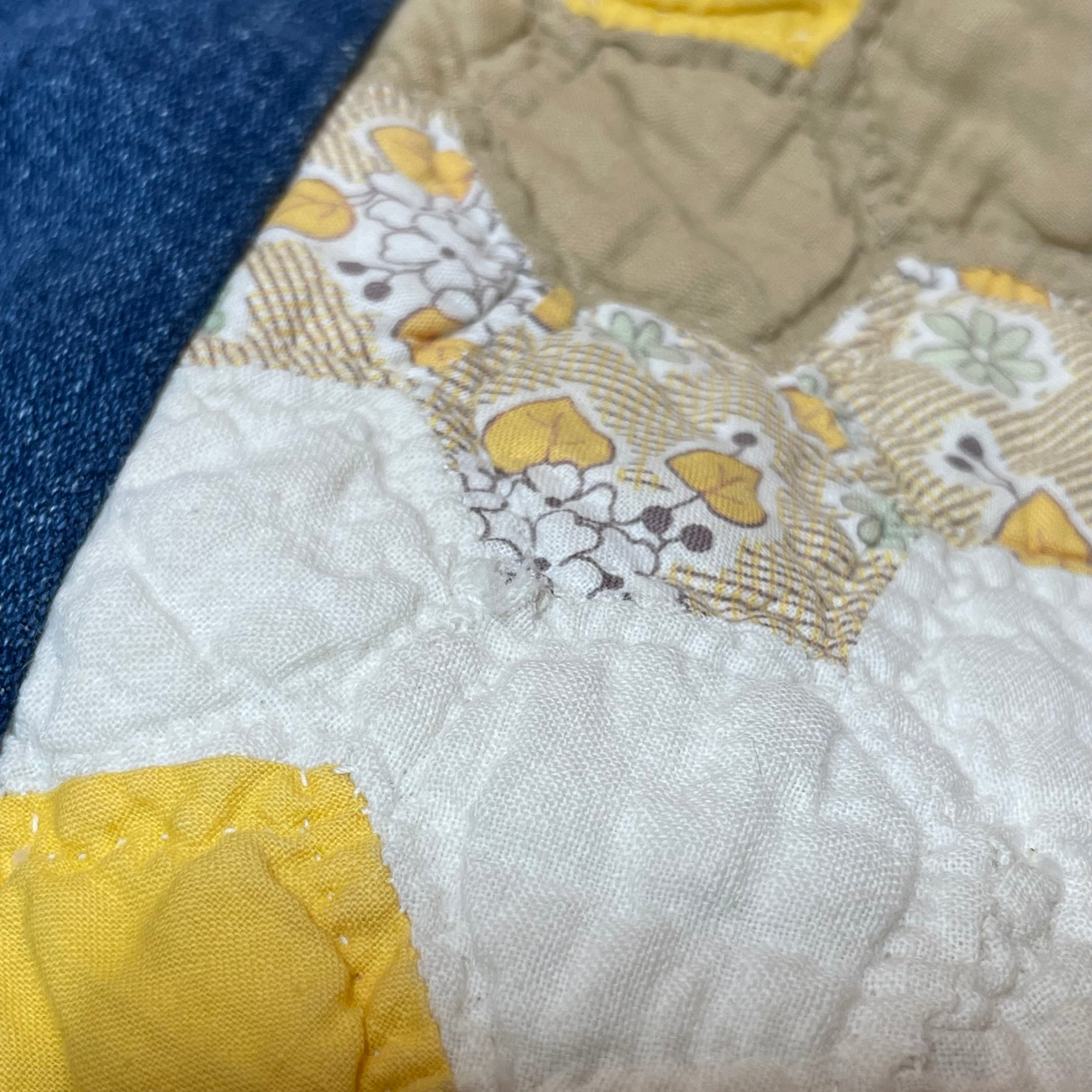 キルトもおそらくもともとは古いキルトラグだった物を使っています。