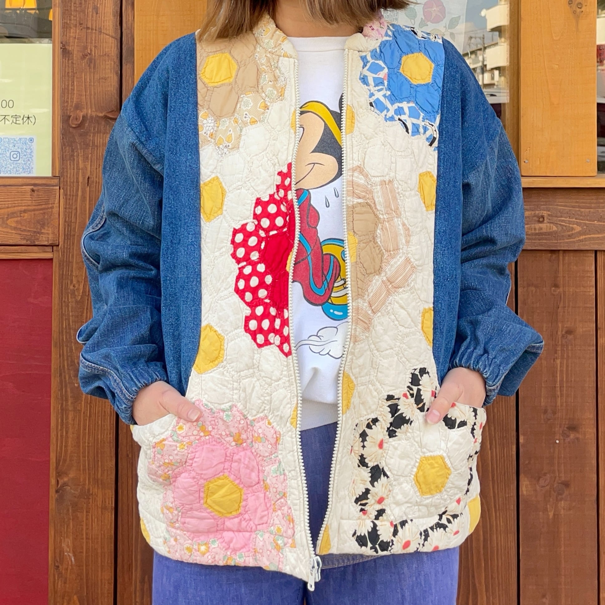 リメイク的な形でお洋服を作っているブランドの様で袖とボディのデニムも異なる物が使用されています。
