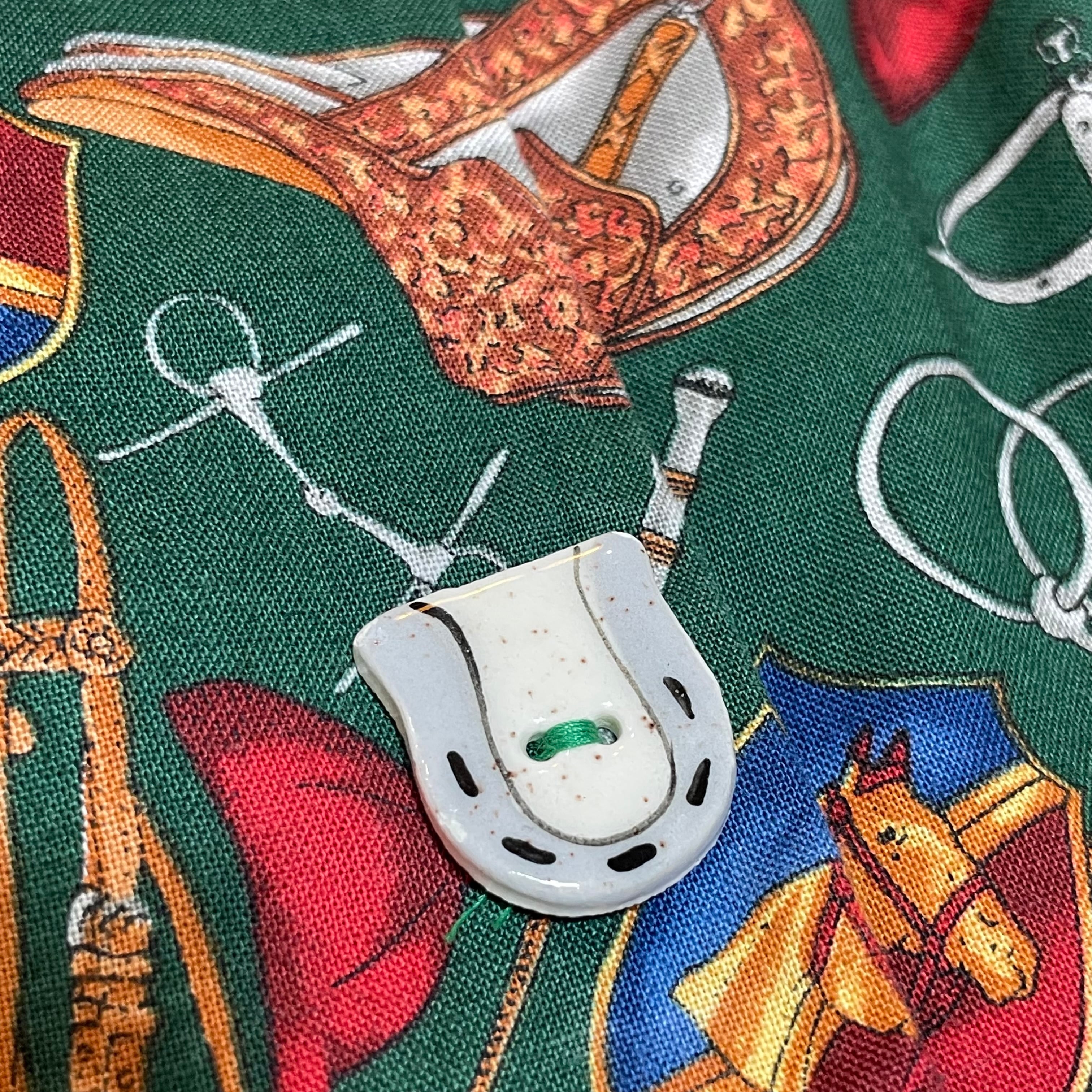 ボタンには乗馬の際に使用されるアイテムや馬がデザインされていてかなり凝った作りになっています。