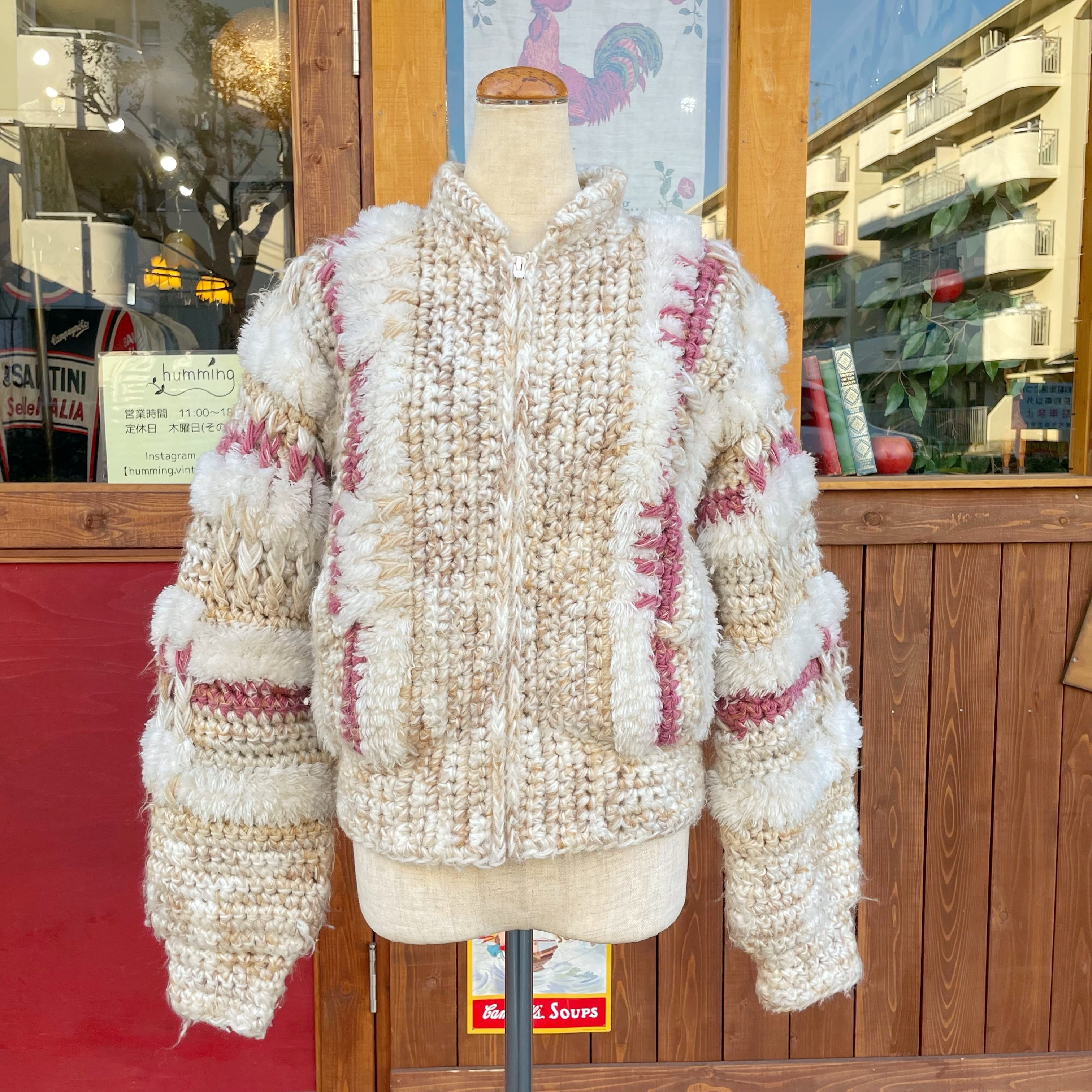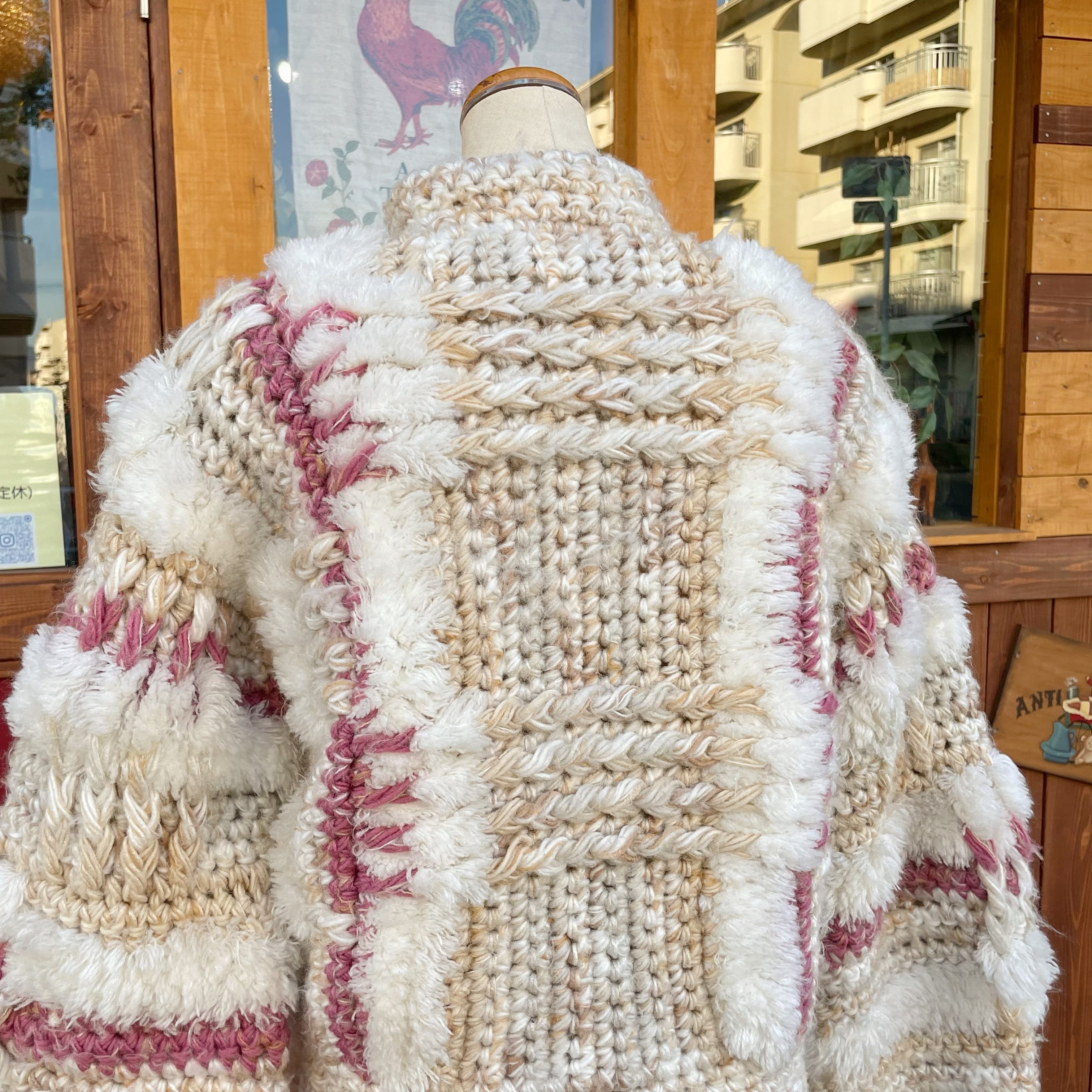 もっちり太ゲージの毛糸で編まれたニットジャケットです。