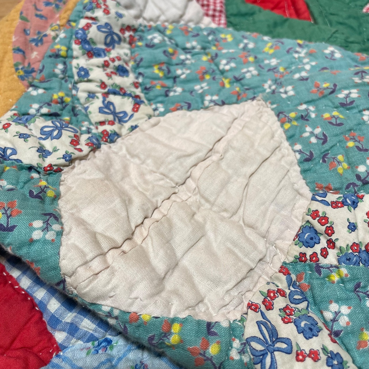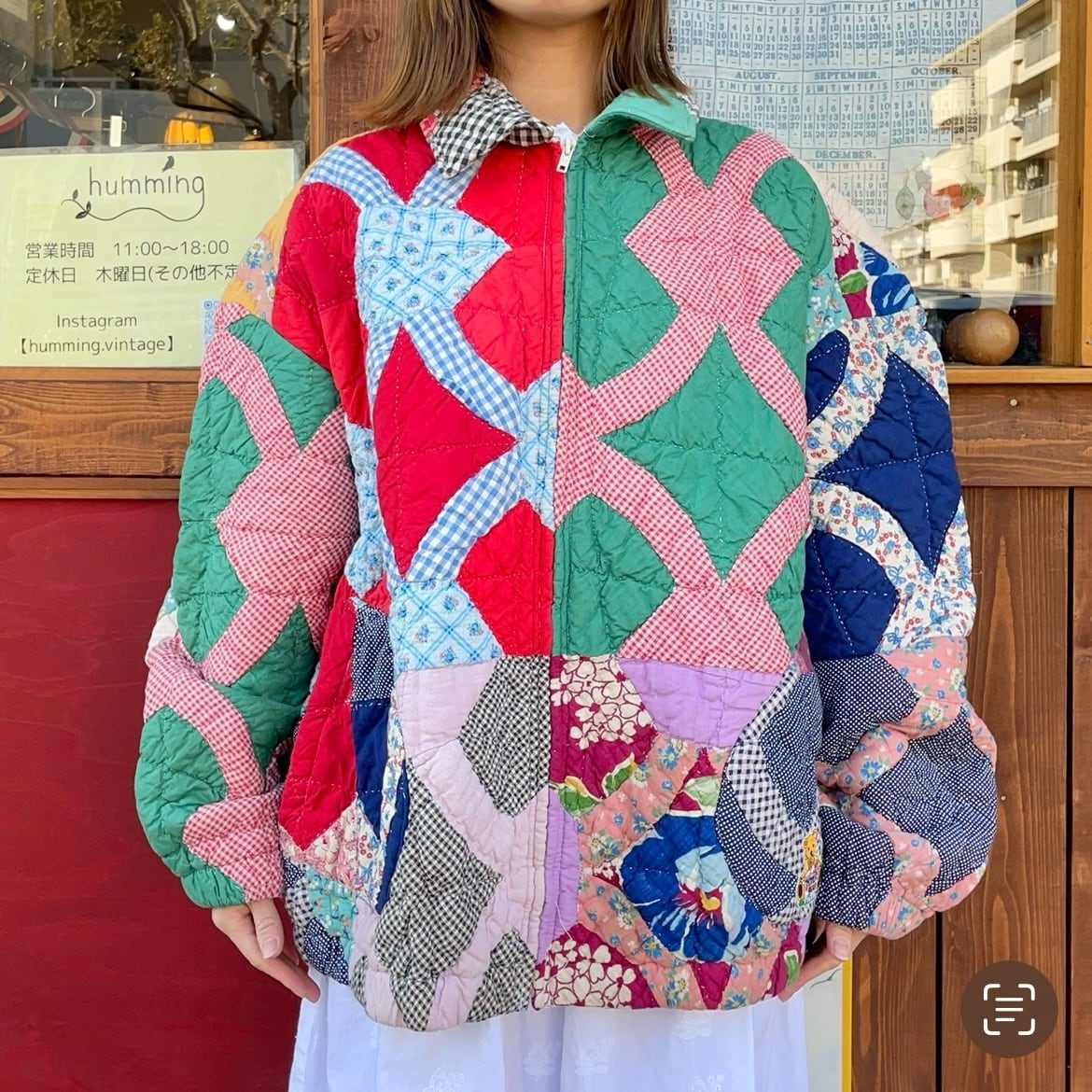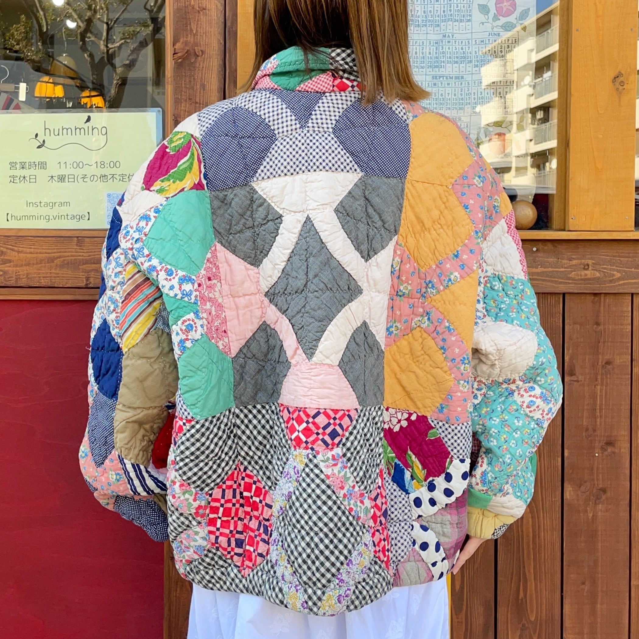 こちらはパッチワーク柄ではなく全面パッチワークされてる生地をキルティングしている1着です。