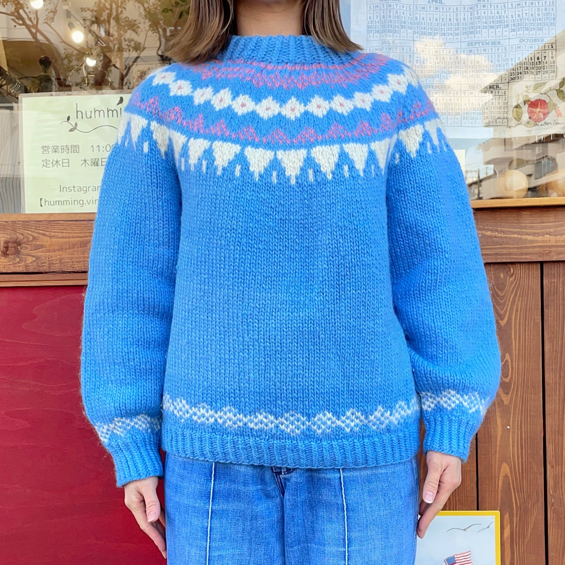 pastel blue Nordic hand knit sweater