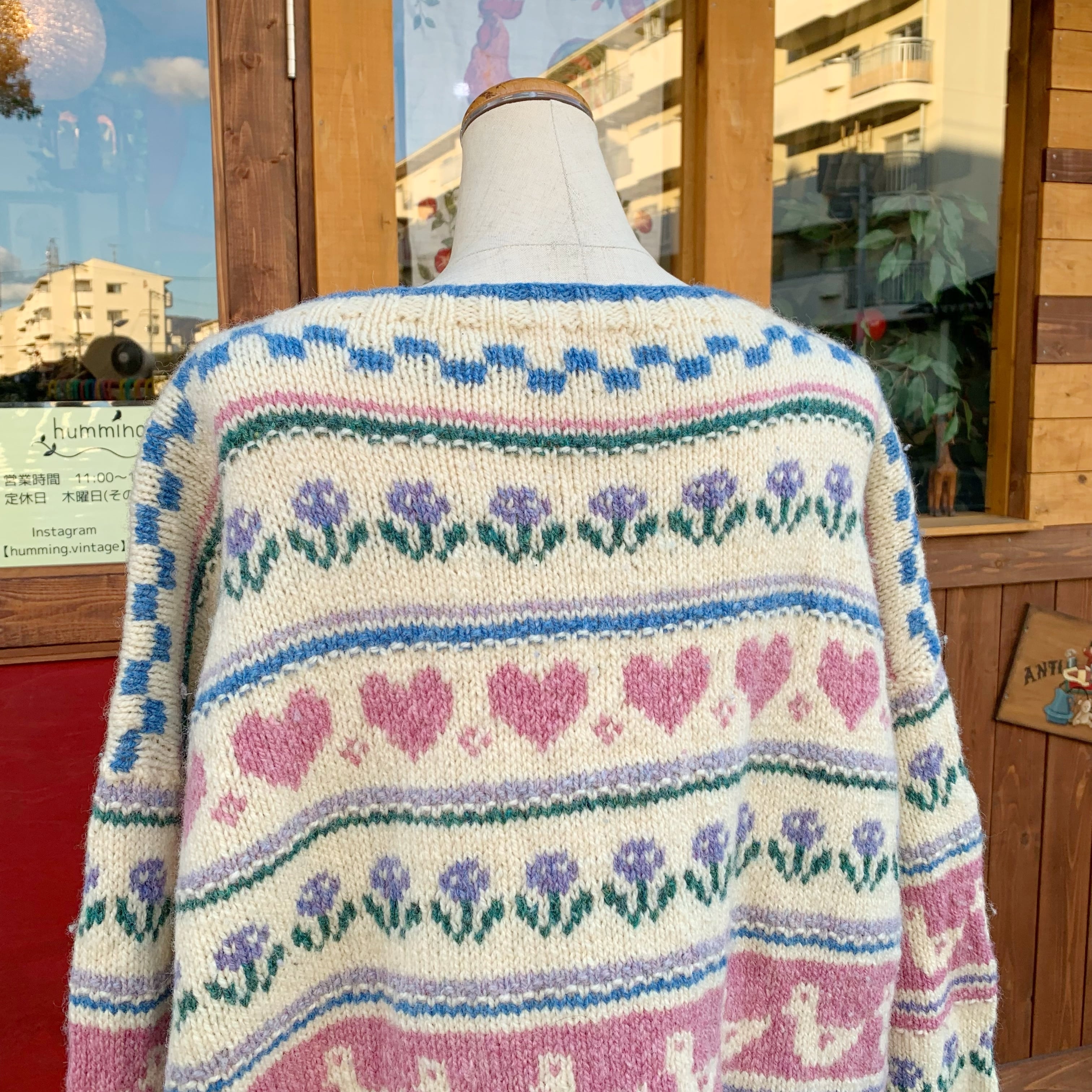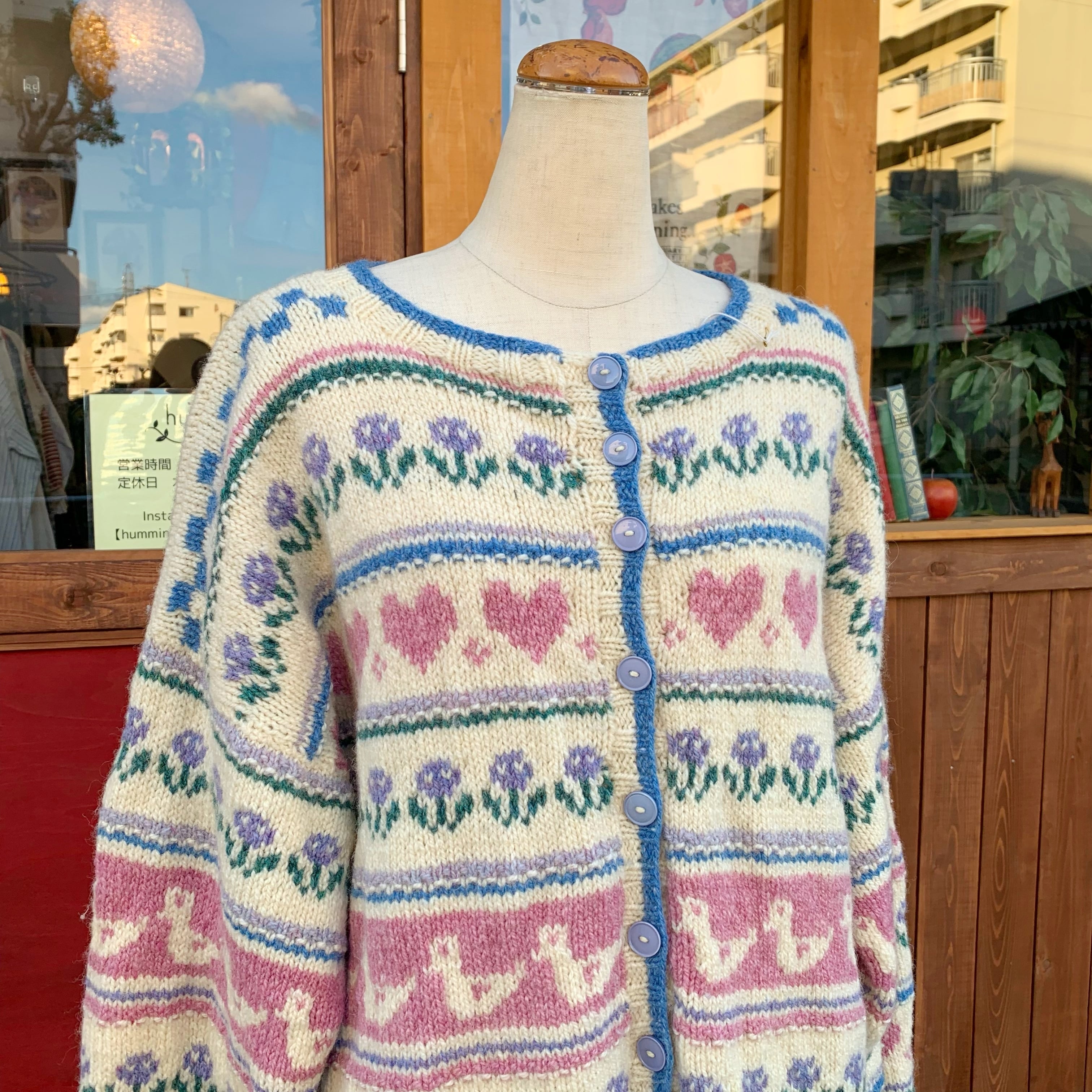 凝ったデザインですが全て手編みとスペシャルなカーディガンです。