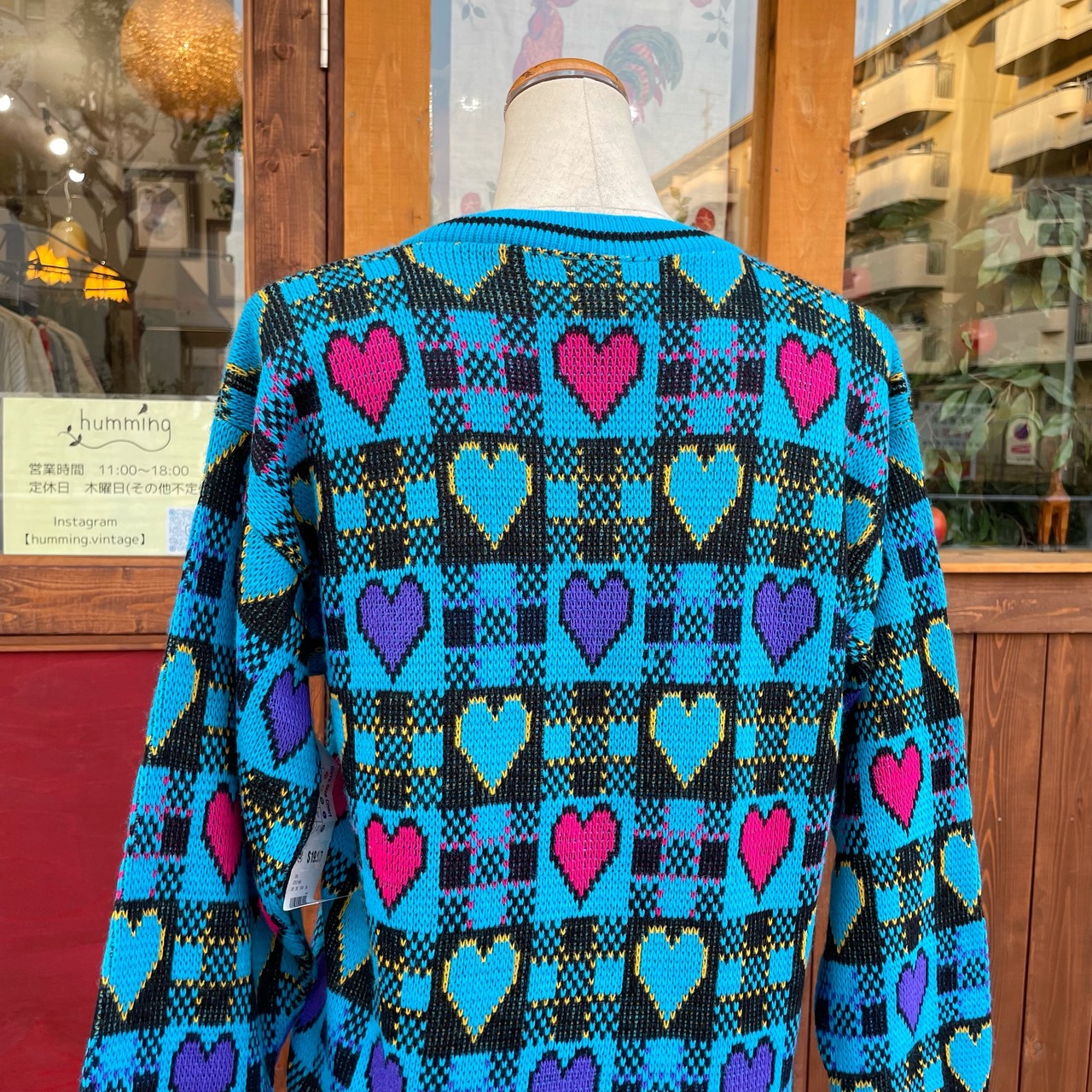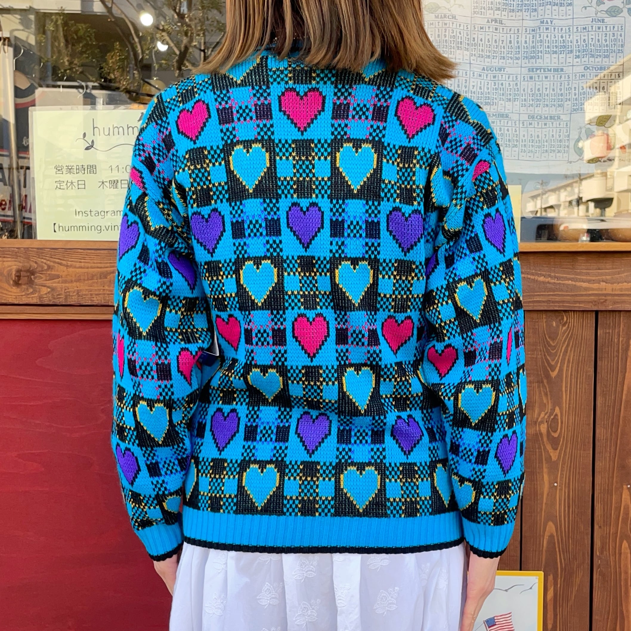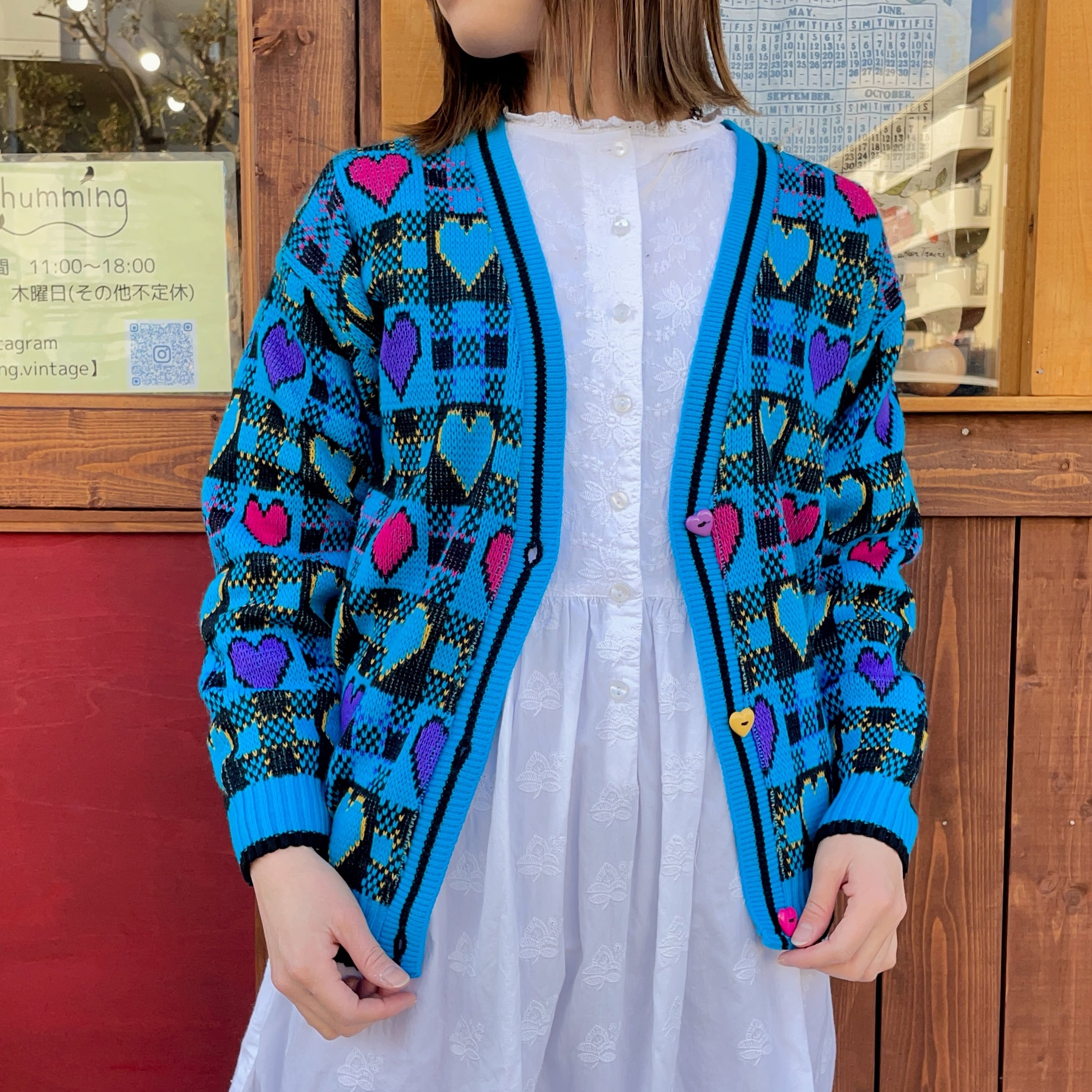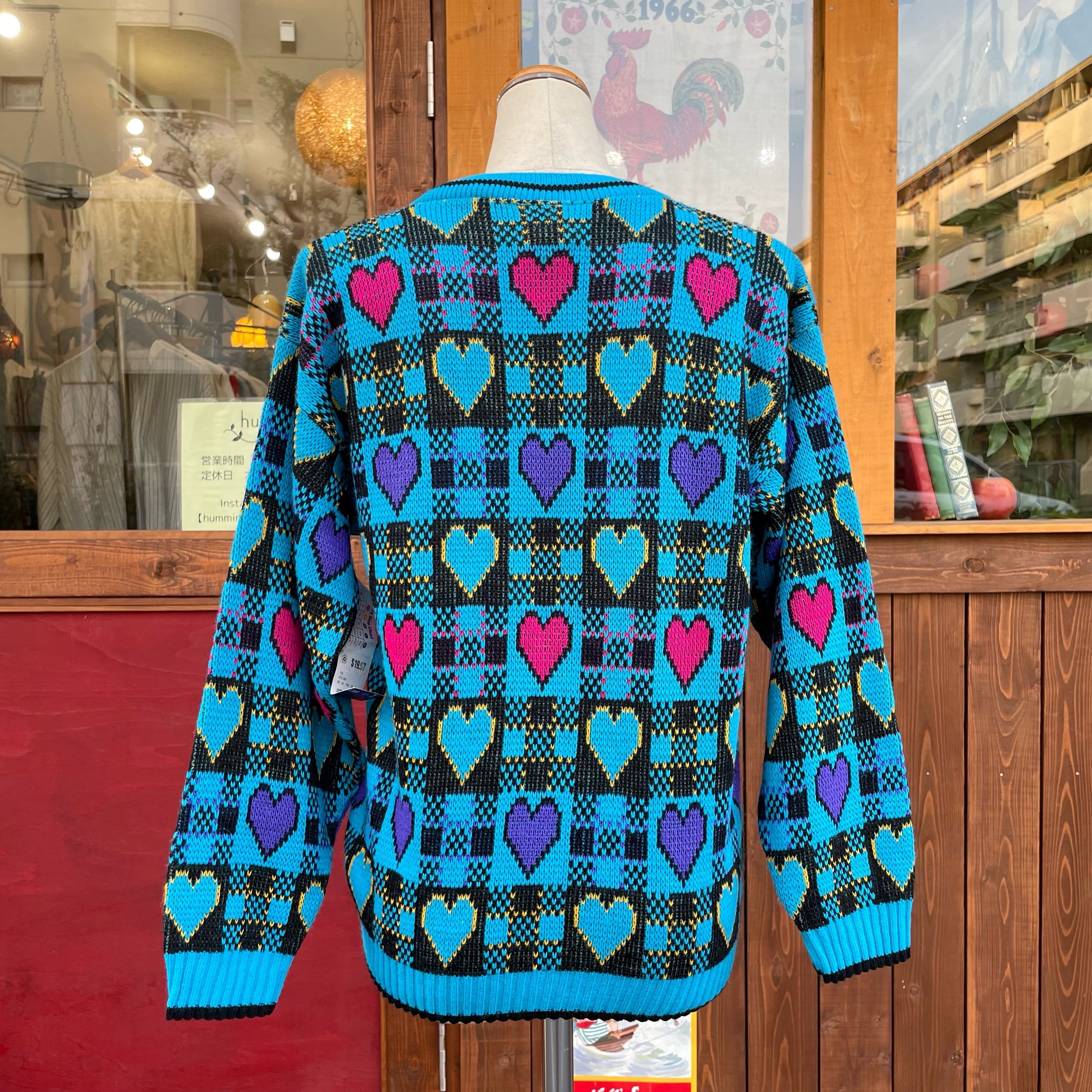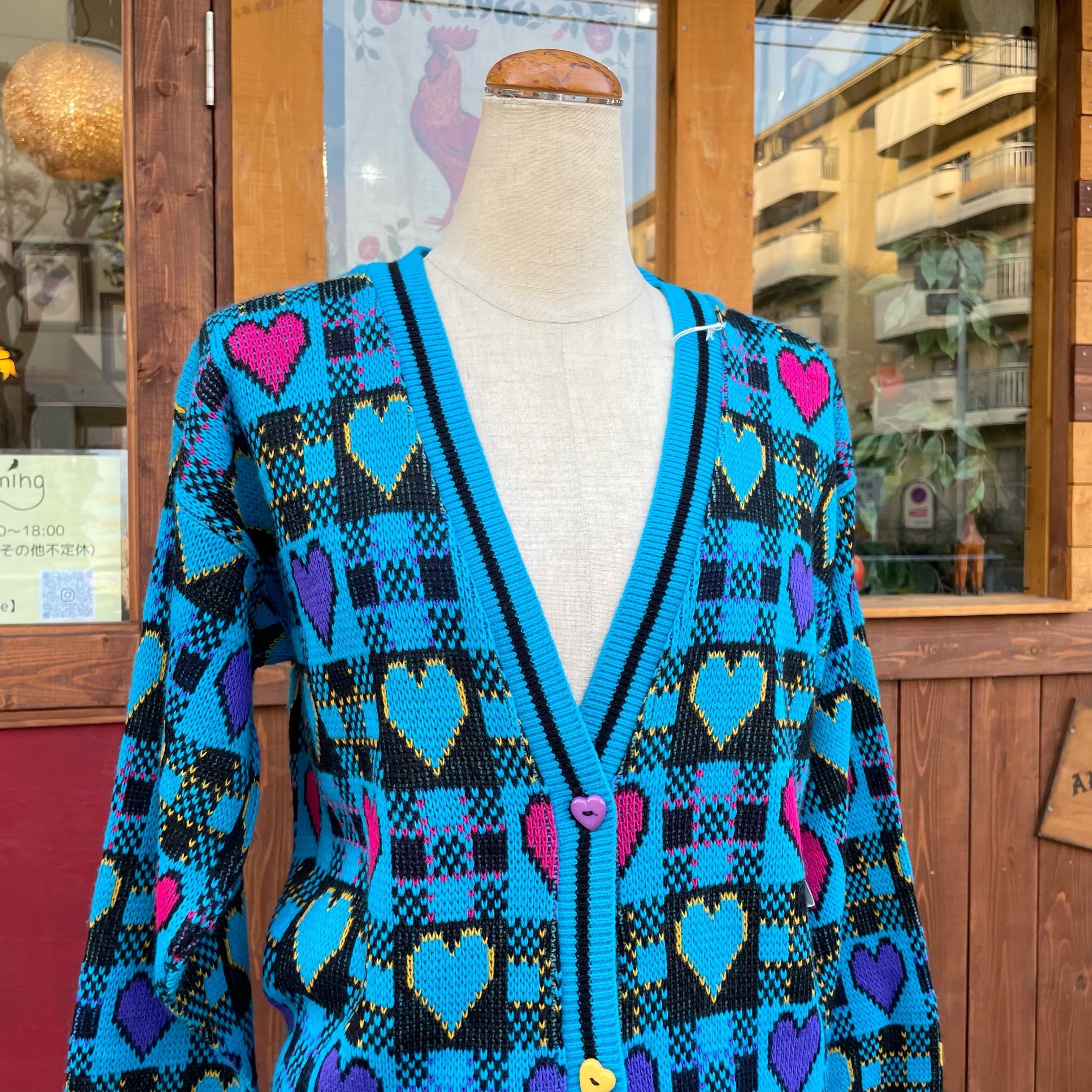 ハートデザインのアクリルニットカーディガンです。