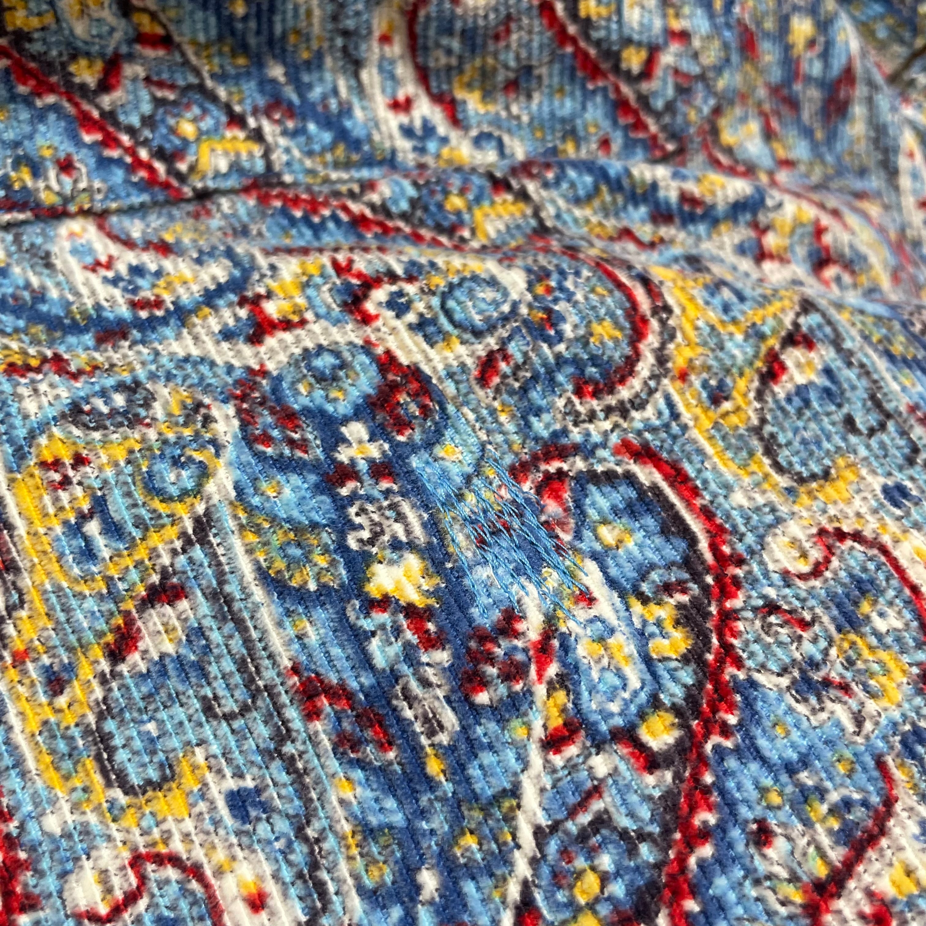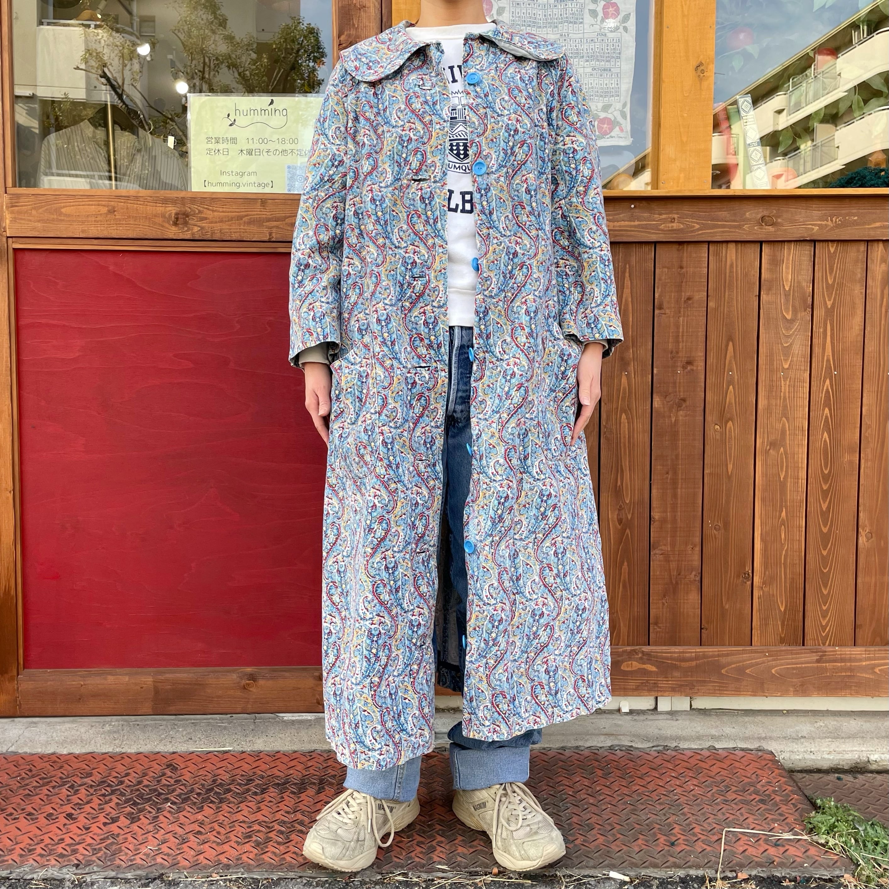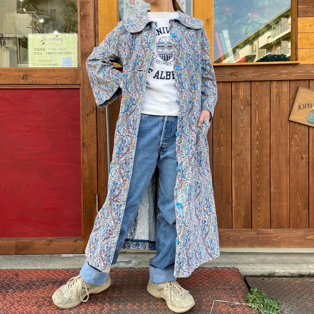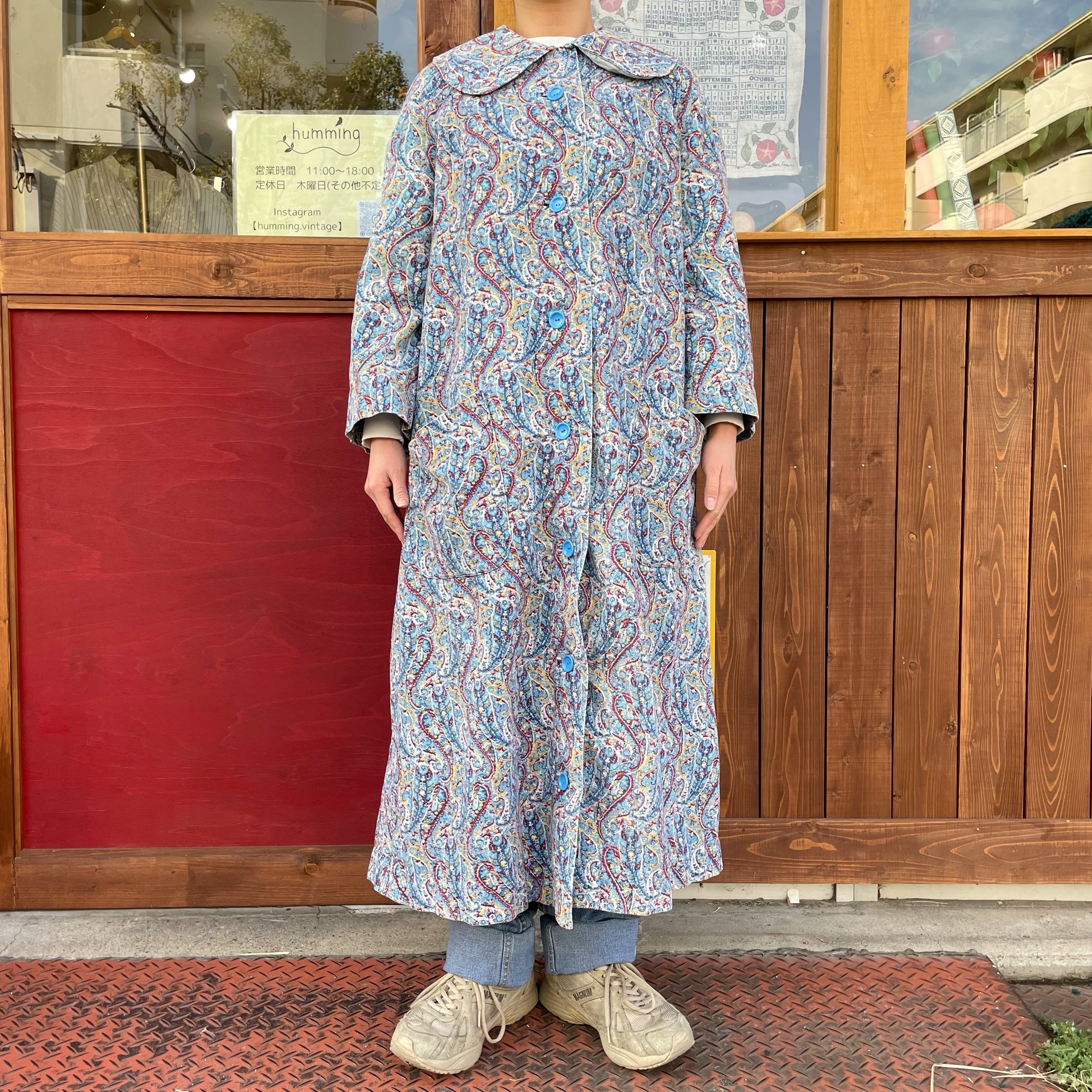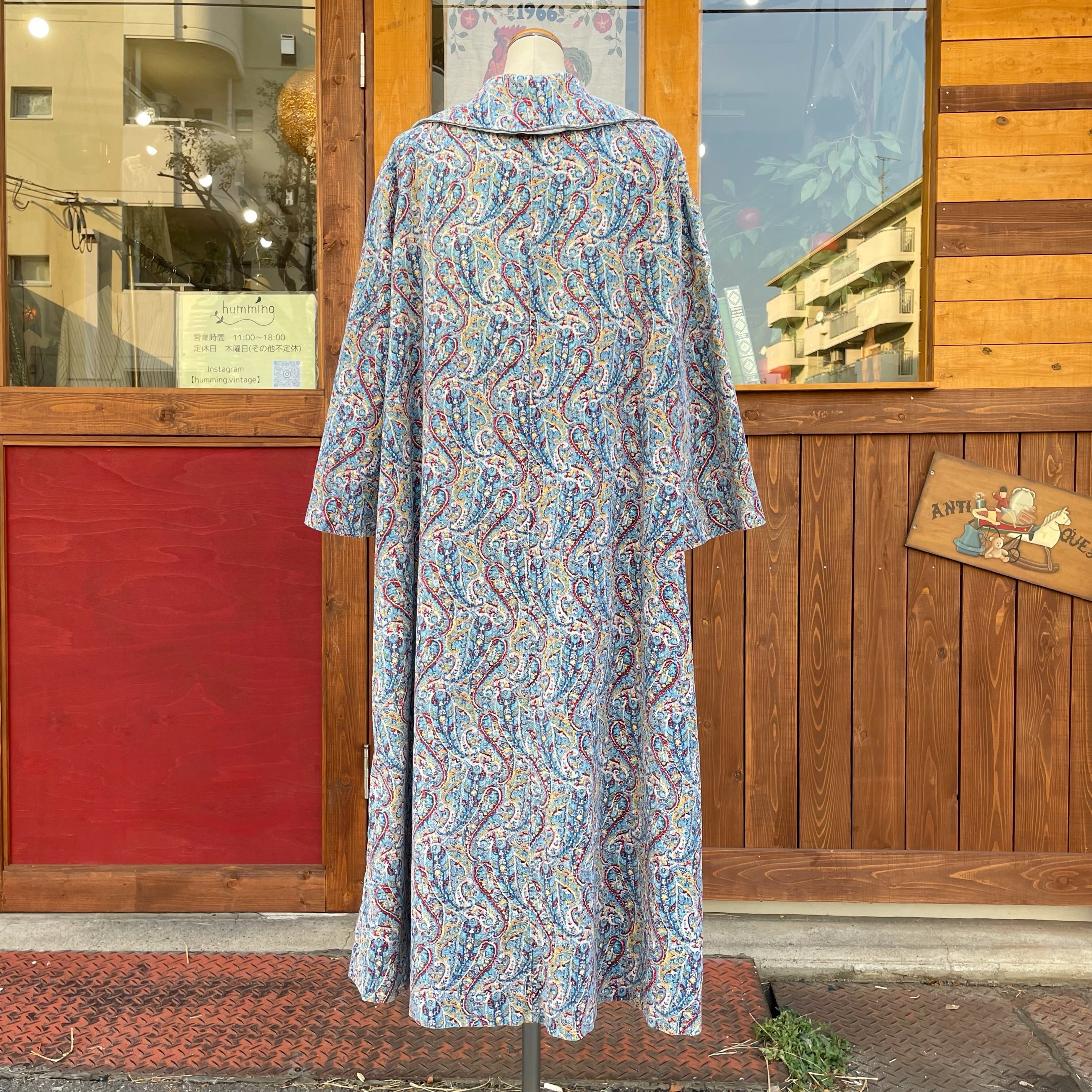 大きな丸襟にペイズリー柄のプリントコーデュロイがインパクトたっぷりな1着。